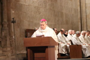 En el ofertorio, se presentó también una concreción pastoral nacida al calor de este Año Jubilar: la próxima puesta en marcha del Centro de Escucha Diocesano, un servicio que quiere ponerse al lado de quienes atraviesan distintas situaciones de pérdida —la muerte de seres queridos, la pérdida de la salud o del trabajo, el duelo migratorio y otros procesos de sufrimiento— para acompañar desde la acogida y la escucha. La colecta de la eucaristía se destinó a impulsar su puesta en marcha, apelando a la implicación y generosidad de la comunidad diocesana.
