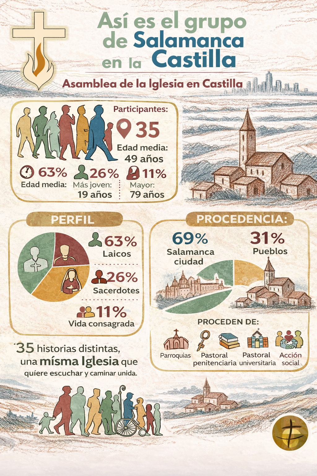 Proceden de parroquias de la ciudad y de pueblos, así como de distintos ámbitos: Pastoral Universitaria y Juvenil, Enseñanza, acción social, cofradías o Pastoral Penitenciaria. Una diversidad que refleja el rostro real de la Iglesia en Salamanca.