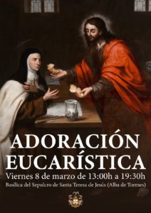 Iglesia de la Anunciación de Nuestra Señora. Monasterio Carmelitas descalzas de Alba de TormesY en el templo sepulcro de Santa Teresa de Jesús, en Alba de Tormes, el viernes, 8 de marzo, la iglesia de las Madres Carmelitas descalzas permanecerá abierta de desde las 13:00 horas hasta las 19:30 h. de la tarde para la adoración eucarística.