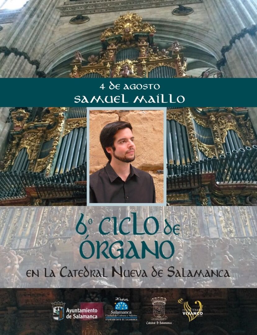 El sexto Ciclo de Órgano que se está celebrando los jueves, a las 20:00 horas, en la Catedral Nueva de Salamanca, llega a su recta final. El próximo 4 de agosto tendrá lugar el penúltimo de los conciertos, que será ofrecido por el organista bejarano Samuel Maíllo, que interpretará obras de Sebastián de Vivanco (maestro de capilla de la Catedral de Salamanca, del que se cumplen 400 años de su muerte), Antonio de Cabezón, Francisco Correa de Arauxo, Sebastián Aguilera de Heredia o Andrés de Sola, en los dos órganos de la Catedral Nueva: el órgano de la Epístola, de Damián Luys (1558?) y el del lado del Evangelio, de Pedro Manuel de Echevarría (1742-1744). La entrada es libre hasta completar aforo.