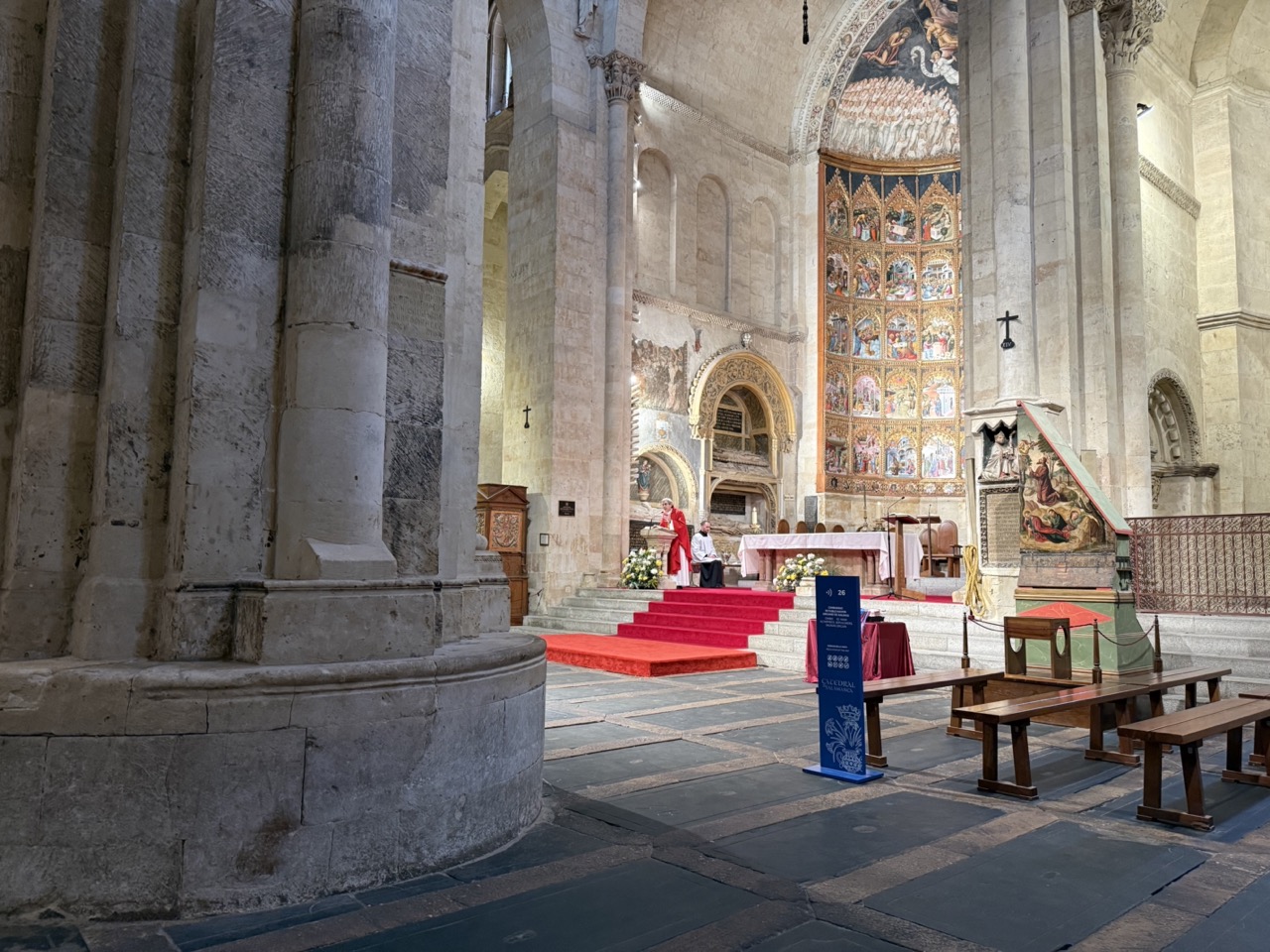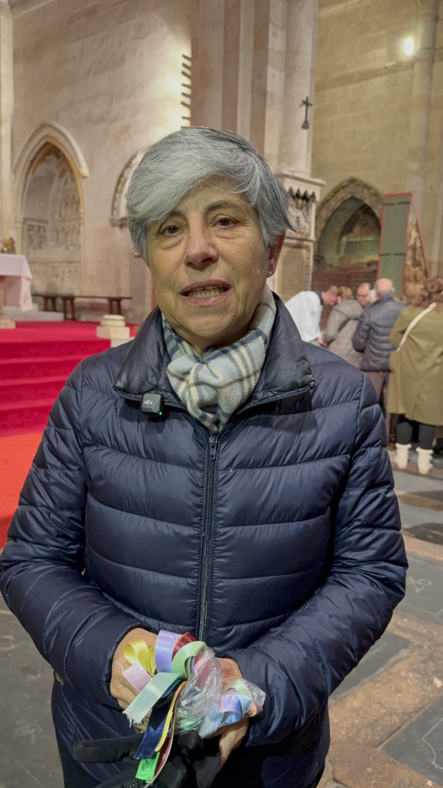 Rosi se acercó a la Catedral junto a su marido porque este año no han podido acercarse a su pueblo, Herguijuela de la Sierra, para bendecir gargantillas para hijos y nietos. Ella conoce bien la historia de San Blas, y la curación de un niño al sacarle una espina de la garganta, que sigue alimentando la fe de generación en generación.