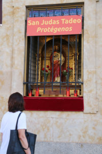 La segunda de las imágenes colocadas para su veneración en la ventana del convento es la de San Judas Tadeo, que como recuerda el padre Matías Tejerina, “desde hace unos años se está cuidando su devoción, muy arraigada en Salamanca, y tenemos todos los últimos miércoles de cada mes seis misas en la iglesia, pero con las obras y el confinamiento, no hemos podido hacer esas misas, y hemos querido sacarlo a la ventana porque la gente lo pedía”, subraya este carmelita.