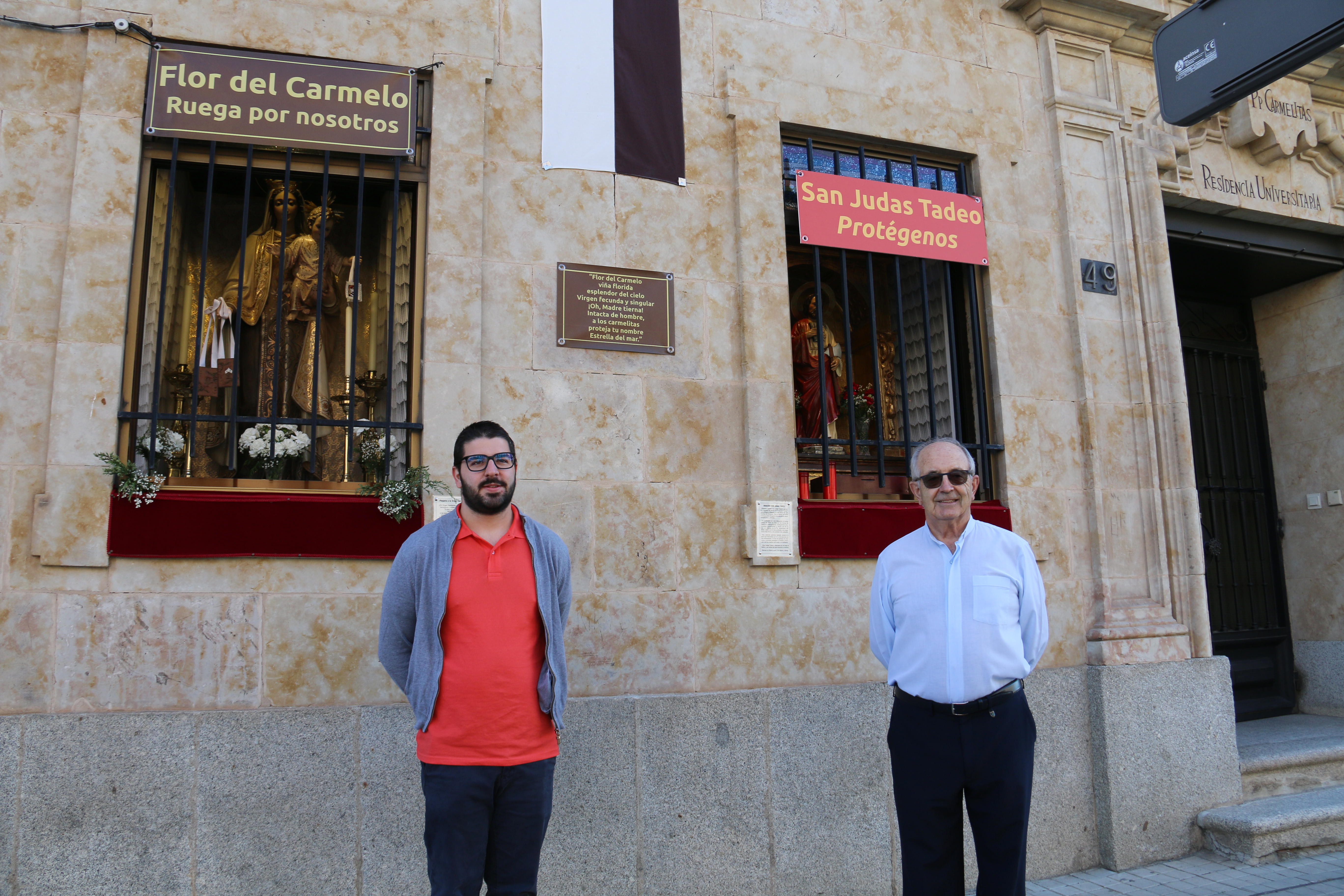 La Virgen del Carmen y San Judas Tadeo están expuestos para su veneración en dos ventanas del Convento de San Andrés, de los padres Carmelitas de Salamanca. Los fieles de estas dos imágenes pueden rezarlos desde la acera, tan solo separados por la verja, y el goteo de personas es constante. El horario se prolonga de forma ininterrumpida desde las ocho de la mañana a las once de la noche, de lunes a domingo.