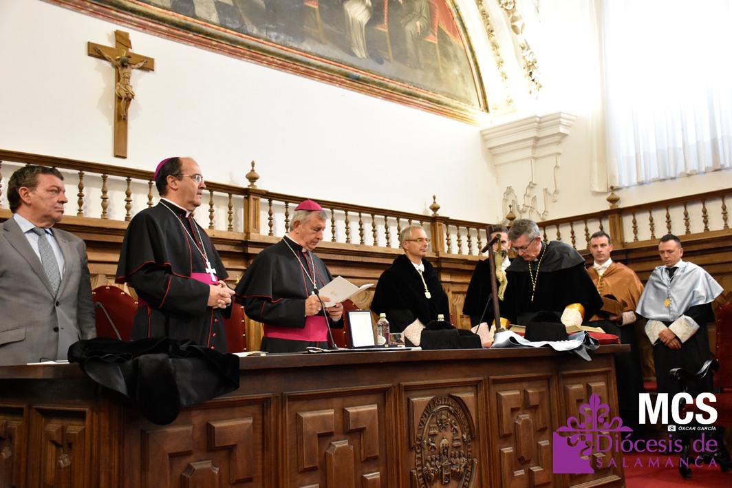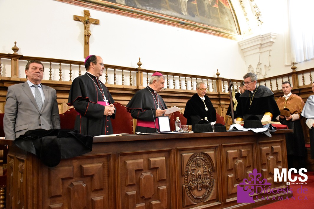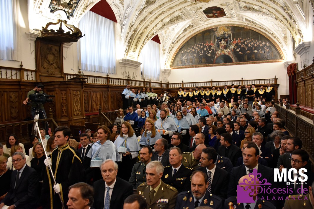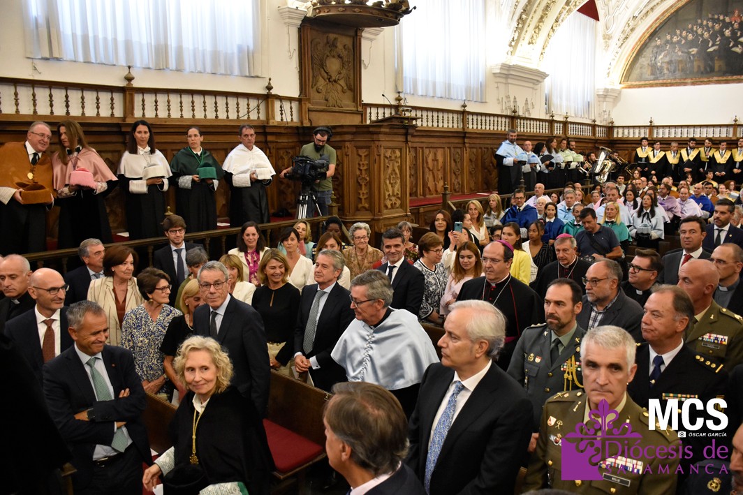 La ceremonia de investidura ha contado con la presencia de numerosas autoridades académicas de la UPSA y eclesiásticas, así como de instituciones civiles y militares, entre las que se encontraba el alcalde de Salamanca, Carlos García Carbayo; el consejero de Presidencia de la Junta de Castilla y León, Luis Miguel González Gago; el vice gran canciller y obispo de Coria-Cáceres, Mons. Jesús Pulido Arriero; el arzobispo de Mérida-Badajoz, Mons. Celso Morga; el obispo de Zamora, Mons. Fernando Valera Sánchez; el obispo de Osma-Soria, Mons. Abilio Martínez Varea; el obispo de Lugo, Mons. Alfonso Carrasco Rouco; el obispo de Calahorra y La Calzada-Logroño, Mons. Santos Montoya Torres; la directora de Universidades e Investigación de la Consejería de Educación de la Junta de Castilla y León, Blanca Ares González; el rector de la Universidad de Salamanca, Ricardo Rivero Ortega; la rectora de la Universidad Católica de Ávila, María Rosario Sáez Yuguero; el rector de la Universidad Europea Miguel de Cervantes, David García López; el vicesecretario de Asuntos Económicos de la Conferencia Episcopal Española, Fernando Giménez Barriocanal; los vicerrectores de las universidades de Valladolid y de León, entre otros.