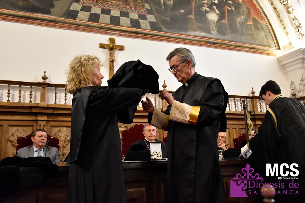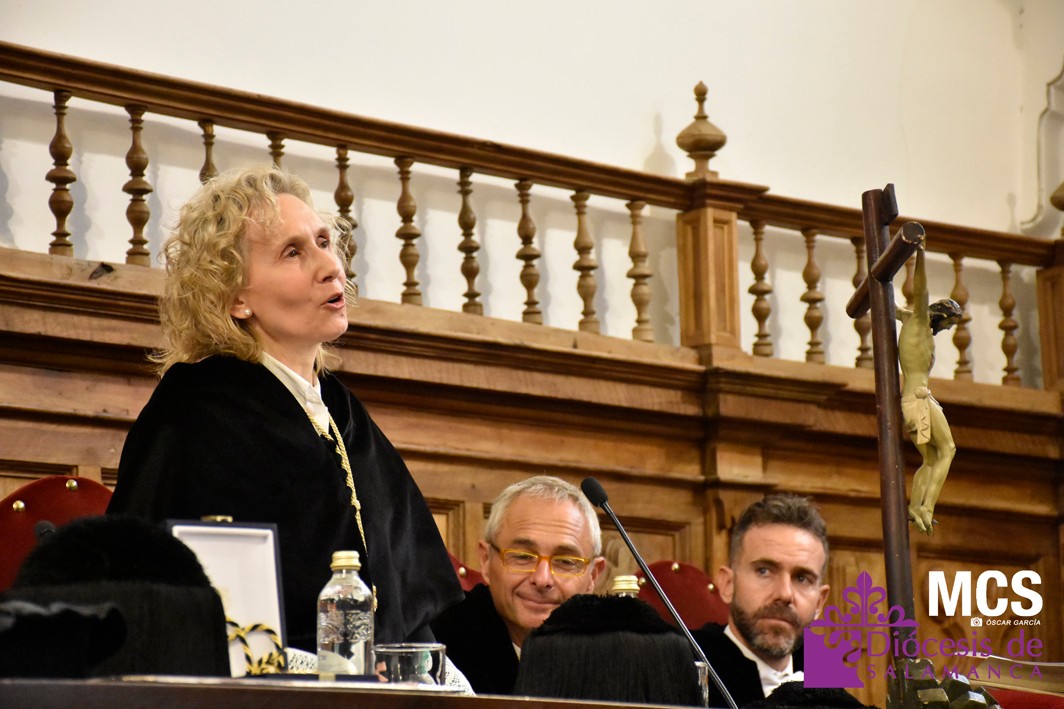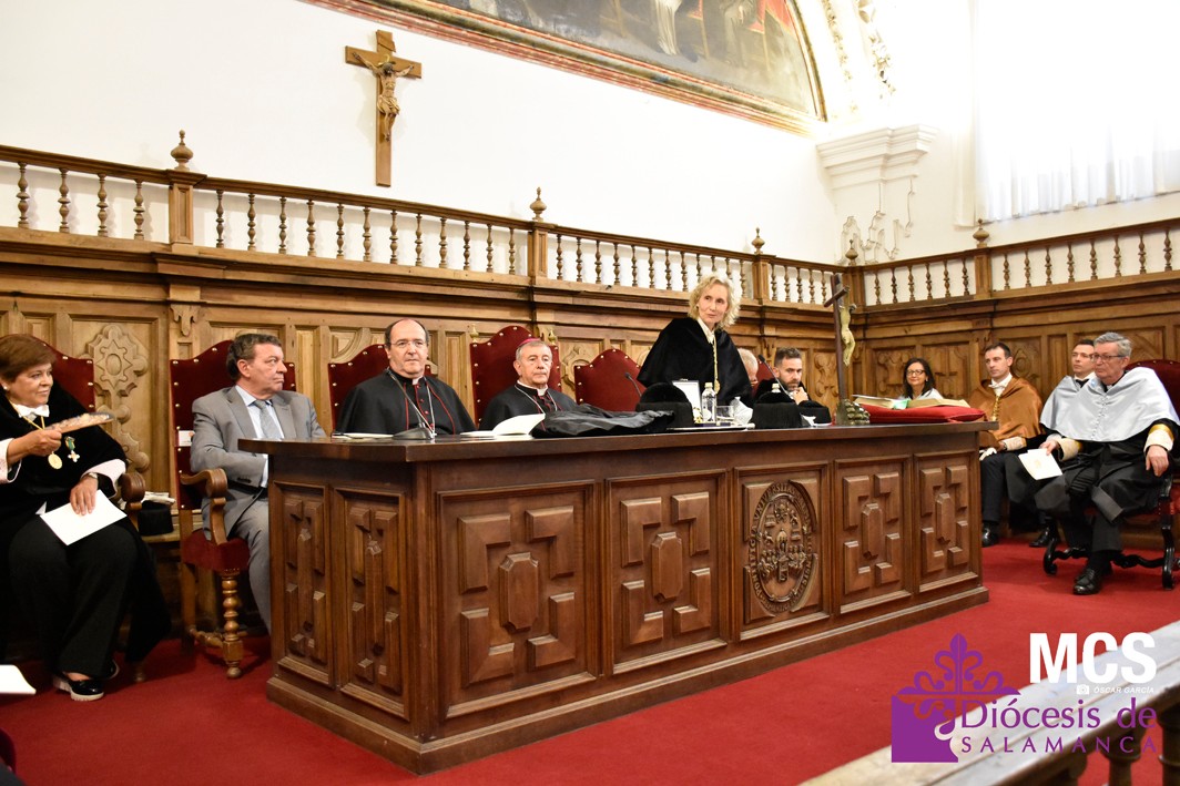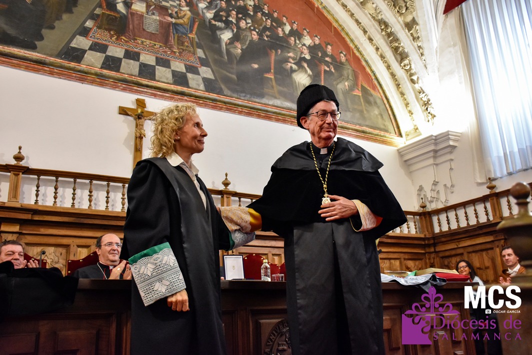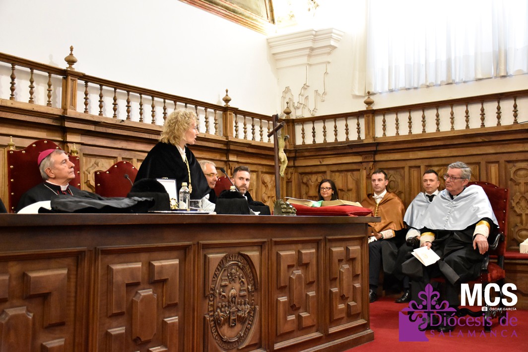 El nuevo rector ha expresado su agradecimiento a su predecesora, Mirian Cortés Diéguez, por sus ocho años de servicio a la Universidad Pontificia de Salamanca, reconociéndola como “el último eslabón de una cadena de rectores que ha marcado para bien el curso de mi estancia en Salamanca”.