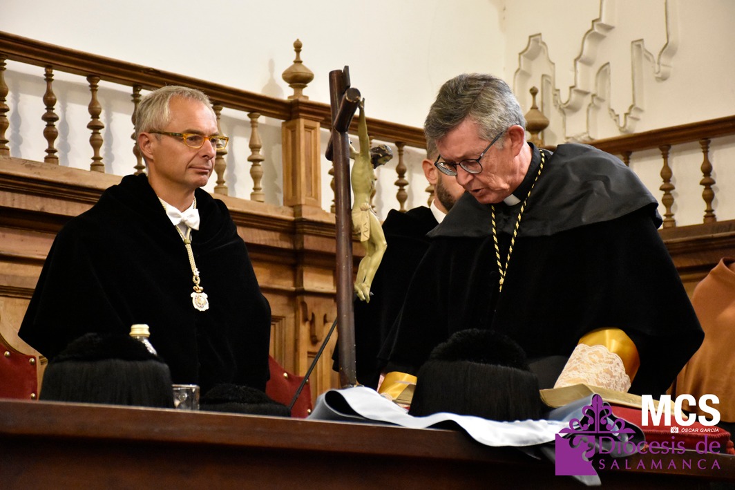Por otro lado, el Gran Canciller de la UPSA y obispo de Salamanca, Mons. José Luis Retana, felicitó al nuevo rector y subrayó la importancia de que esta universidad mantenga altos estándares de calidad y una identidad distintiva. “No hay calidad sin identidad”, ha afirmado, subrayando el papel crucial de la Universidad en la formación de profesionales cristianos y su compromiso con la evangelización en el campo de la educación y de la cultura. Además, se ha referido a la necesaria unidad y colaboración que debe existir entre la comunidad universitaria y la Iglesia diocesana.