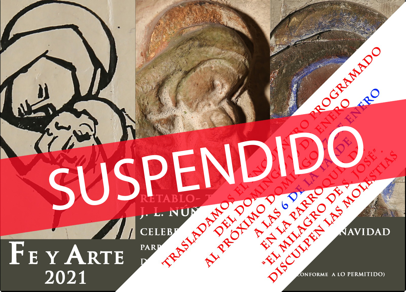 Los responsables del grupo diocesano Fe y Arte, los sacerdotes Tomás Gil y Juan Andrés Martín, han decidido suspender el encuentro sobre el misterio de la Navidad que se iba a celebrar este domingo domingo, 17 de enero, en la parroquia El Milagro de San José, en Salamanca, a las 18.00 horas. Una decisión que han adoptado ante las nuevas restricciones anunciadas por el Gobierno autonómico. “Asumimos la responsabilidad que nos sugieren las autoridades sanitarias frente al peligro y el aumento del coronavirus“, indica Tomás, al tiempo que adelanta que cuando la situación “vaya a mejor” se informará oportunamente de la celebración del encuentro.