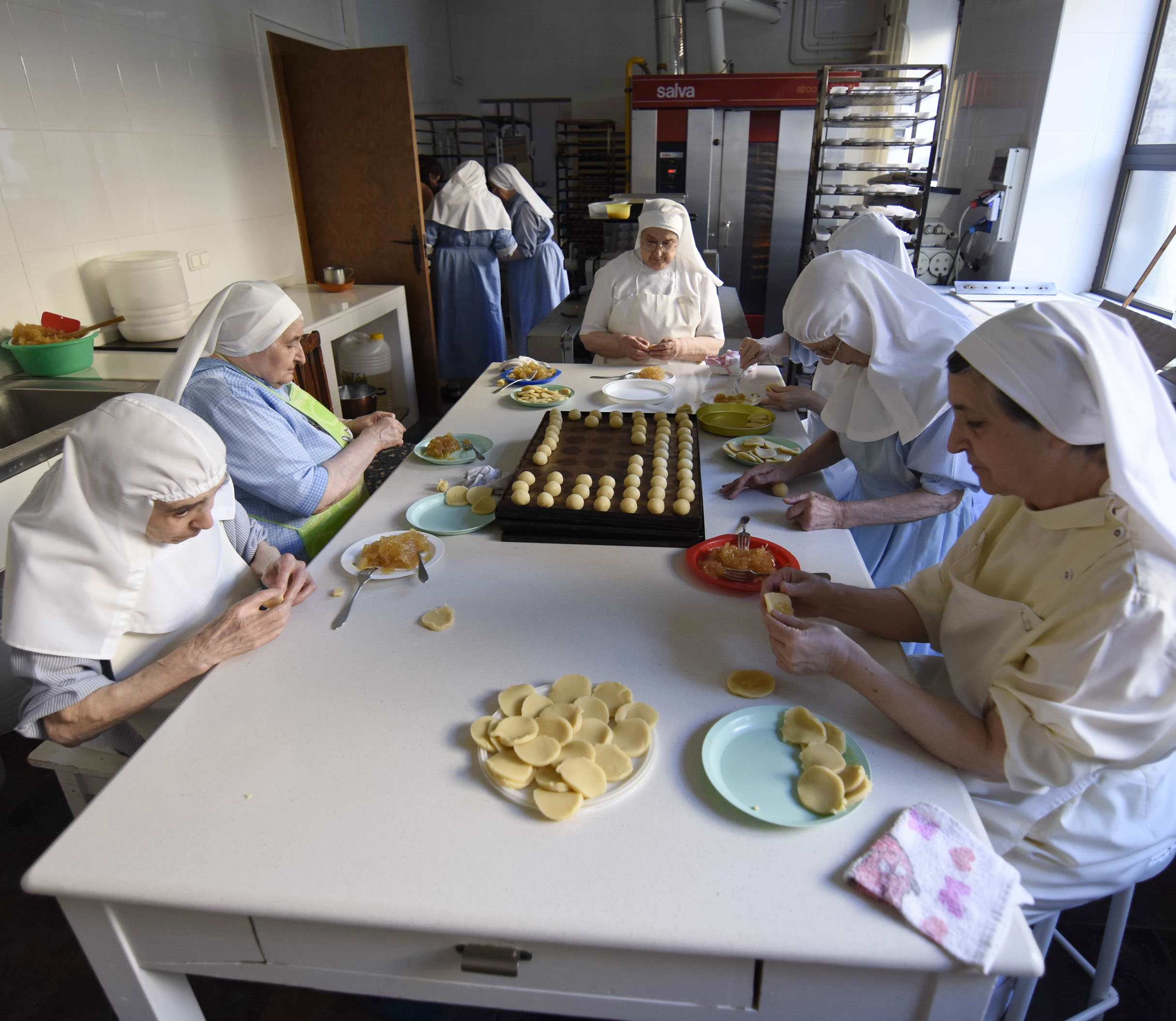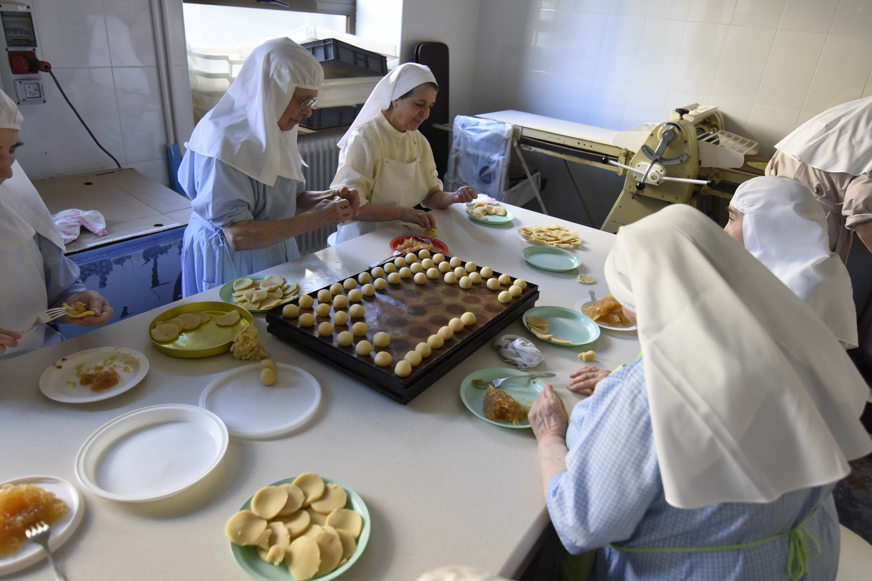 Y a la vida contemplativa de esta comunidad de dominicas se sumó en 1981 la de la labor, para obtener ingresos que les permitieran afrontar sus gastos. Como enumera Sor María Eugenia Maeso, han elaborado vestidos de niña para una fábrica de Pamplona, o cortinas, pero finalmente optaron por crear su propio obrador donde elaboran dulces. “El obrador es pequeño, con una mesa larga y máquinas para amasar la masa, otra para laminar y recortar las pastas, pero algunos productos se hacen todo a mano”, precisa.