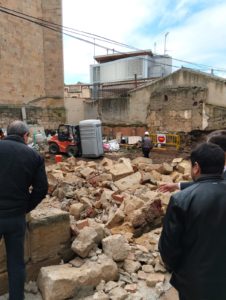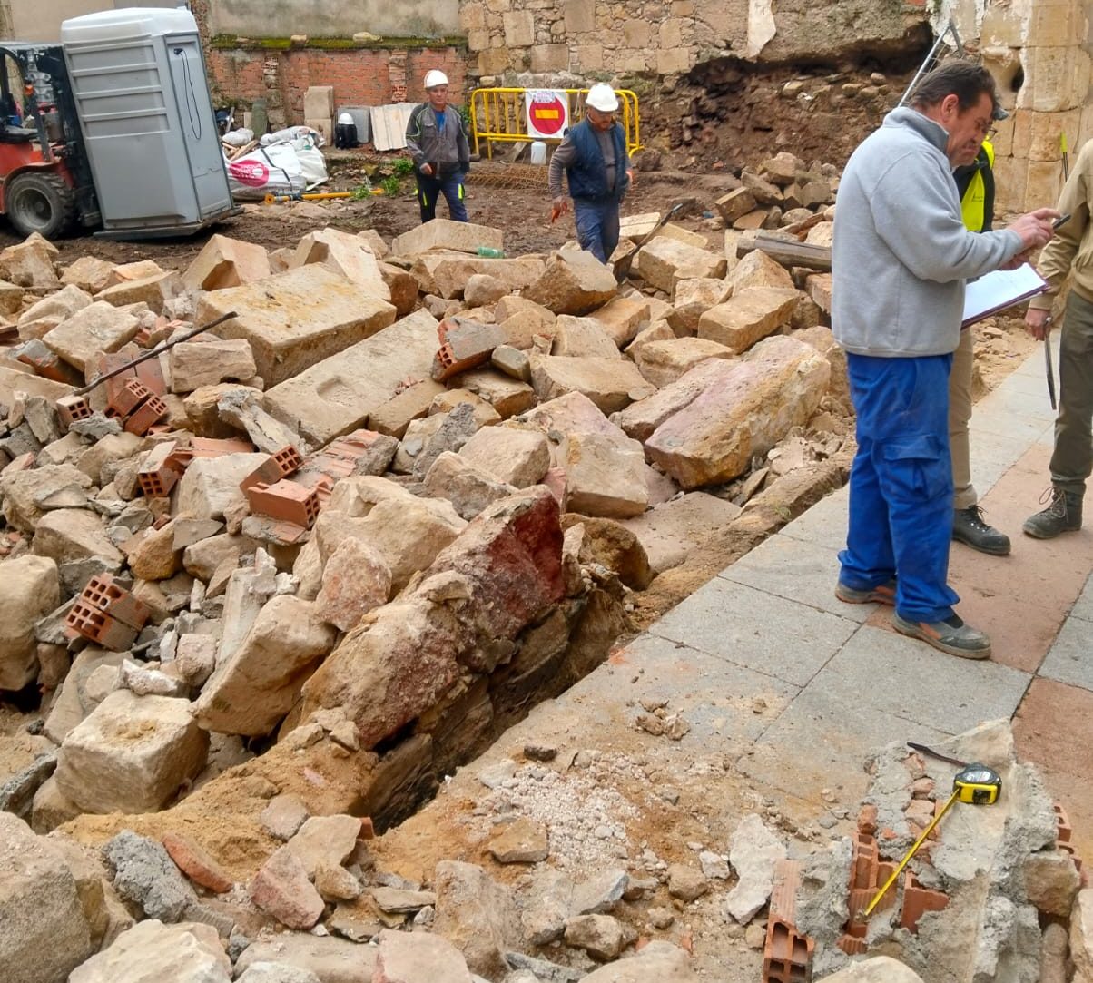 Esta mañana, en torno a las 9:00 horas, se ha producido el derrumbe de un muro, de 10 metros de largo y 3,80 de alto, ubicado en el solar anexo a la Catedral de Salamanca, con salida a la calle Tentenecio. En ese momento, varios operarios trabajaban en el interior del recinto en labores de acondicionamiento del terreno, unas actuaciones que se vienen desarrollando desde hace unas semanas con todos los permisos y licencias pertinentes.