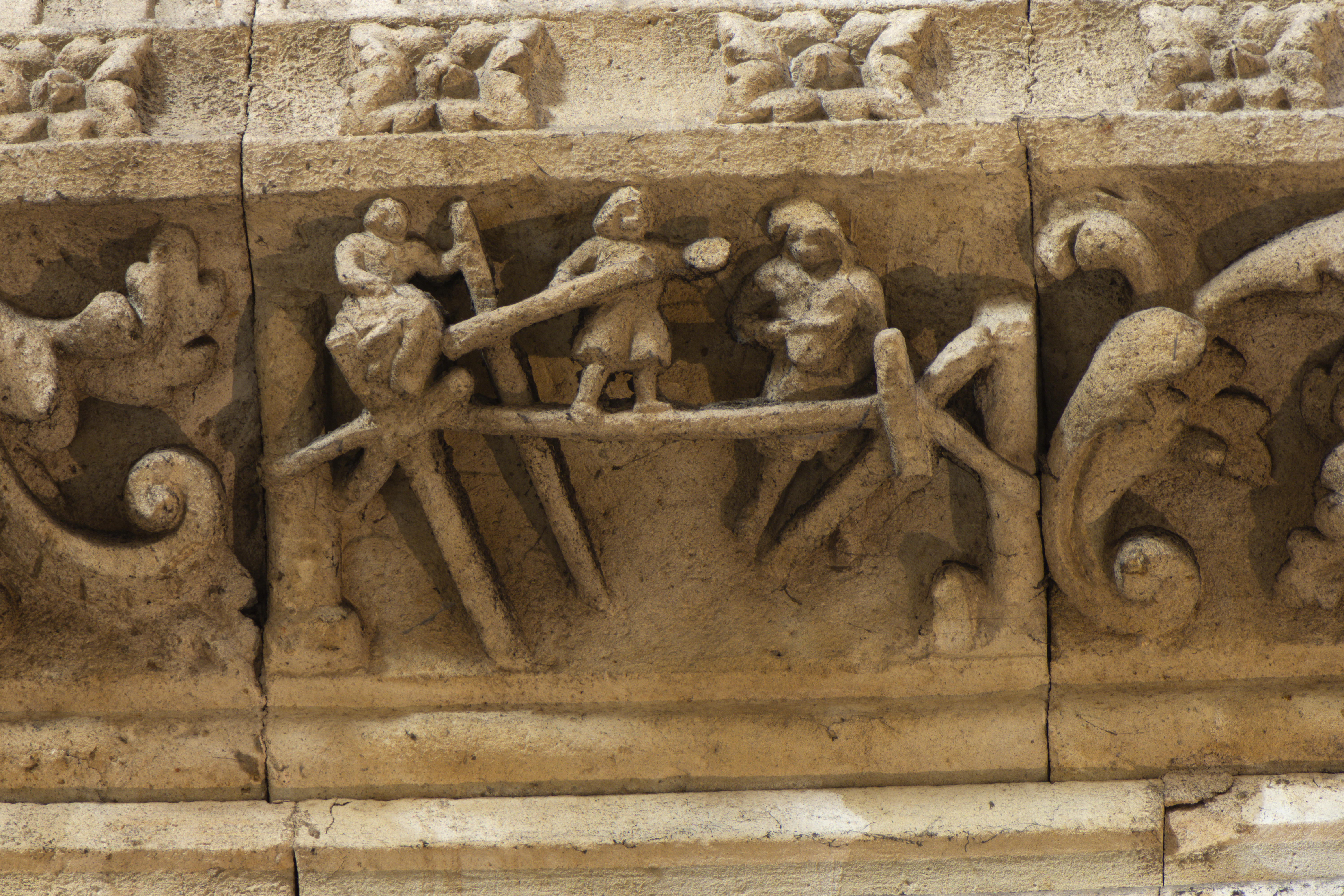 Esta parte del patrimonio de la Catedral suele pasar desapercibida, “porque están a una altura de más de 20 metros, y hay que levantar bastante la vista”, subraya Benito. Al respecto, recuerda que todos conocen el astronauta de la Puerta de Ramos de la Catedral, de 1992, “pero desde la construcción del templo ya existen unas escenas pintorescas y originales que lo que hacían decorar, y que no eran propias de la decoración de la Catedral”.