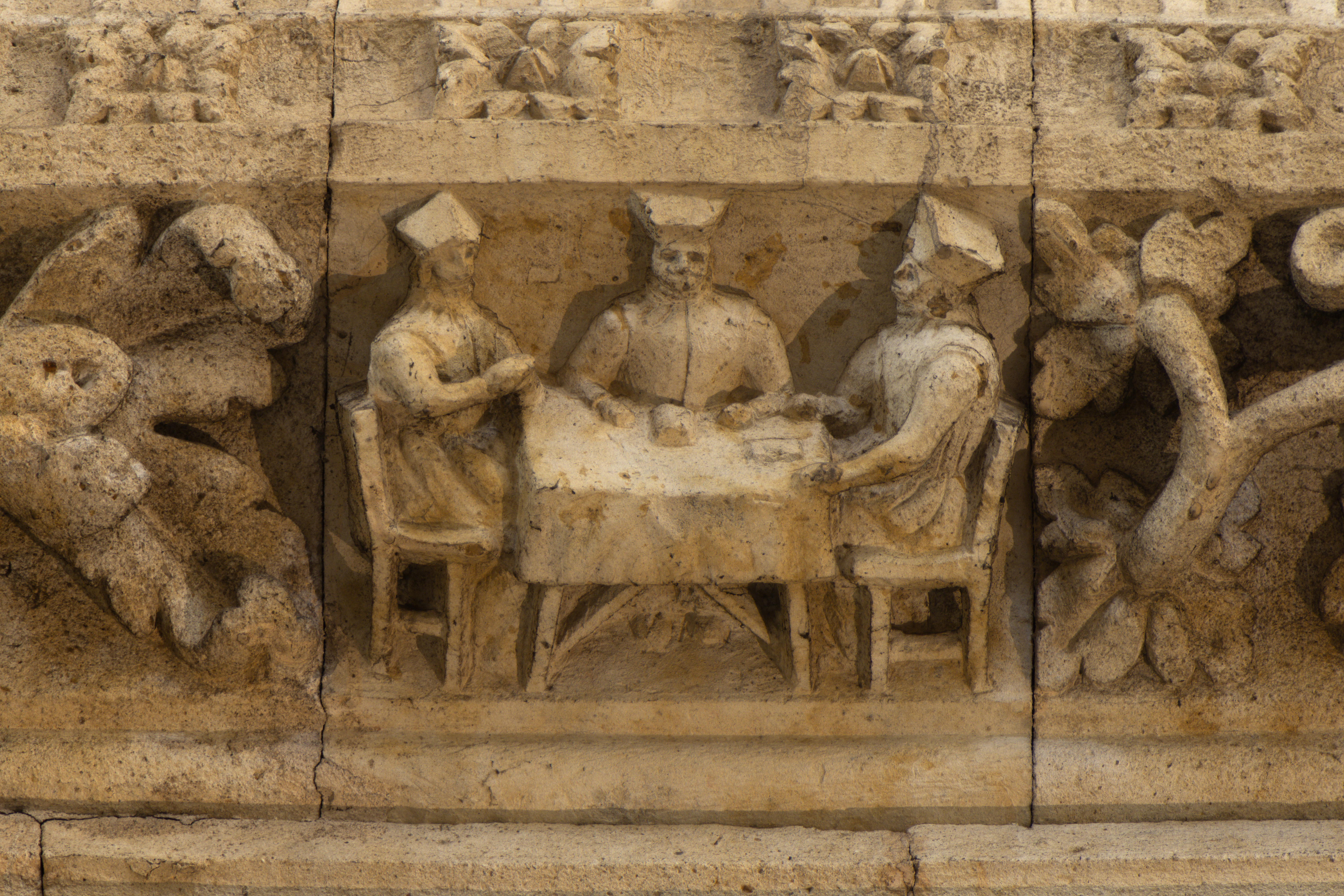 A 20 metros sobre el suelo de la Catedral Nueva se encuentran escenas de la vida cotidiana en la ciudad, del siglo XVI, momento de su construcción. Entre ellas, tamborileros, labradores en el campo, o un grupo de canónigos sentados en torno a una mesa, entre otras. Junto al historiador del Arte y técnico del templo, Raúl Benito, conocemos más a fondo algunas de ellas.