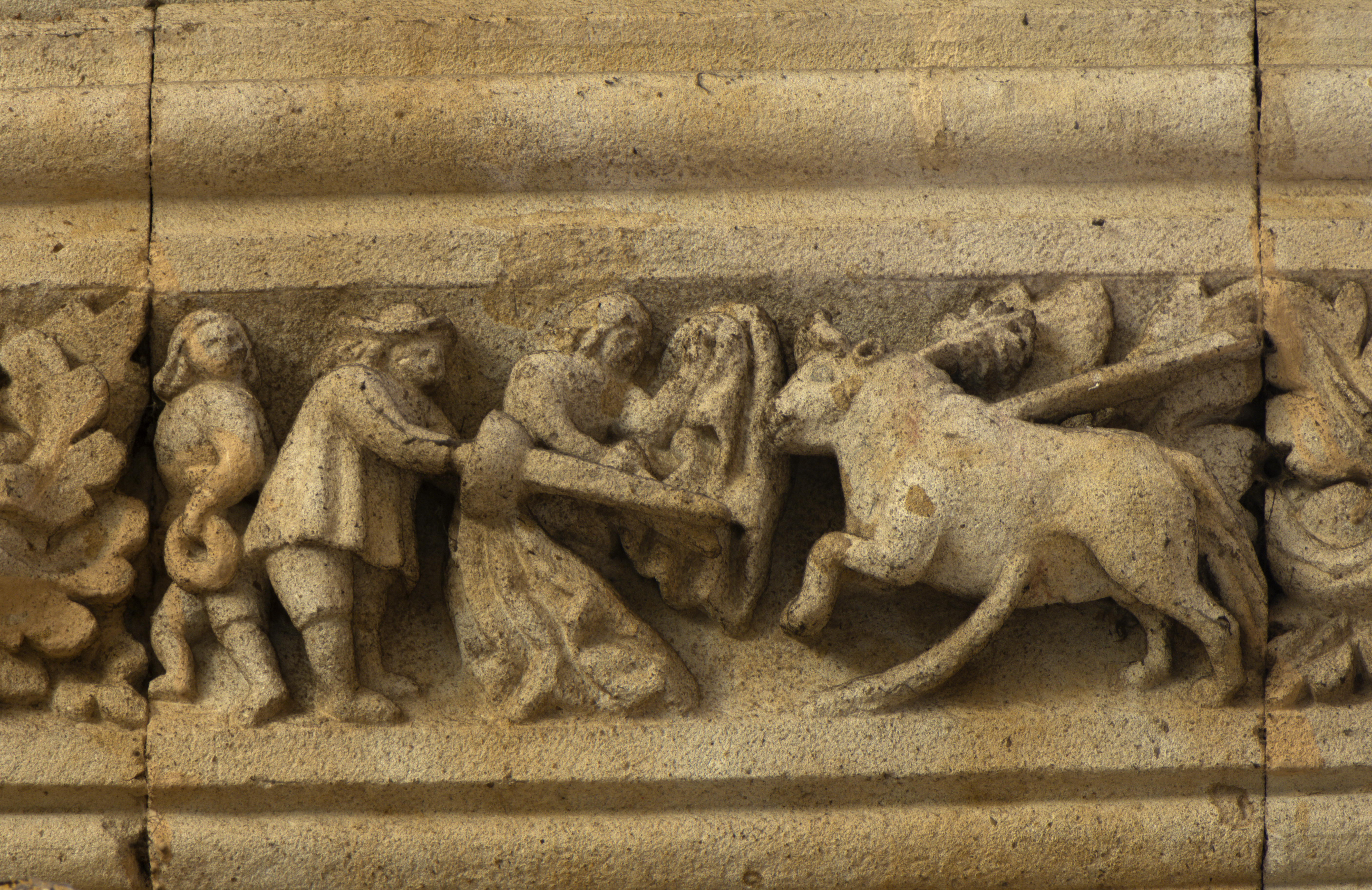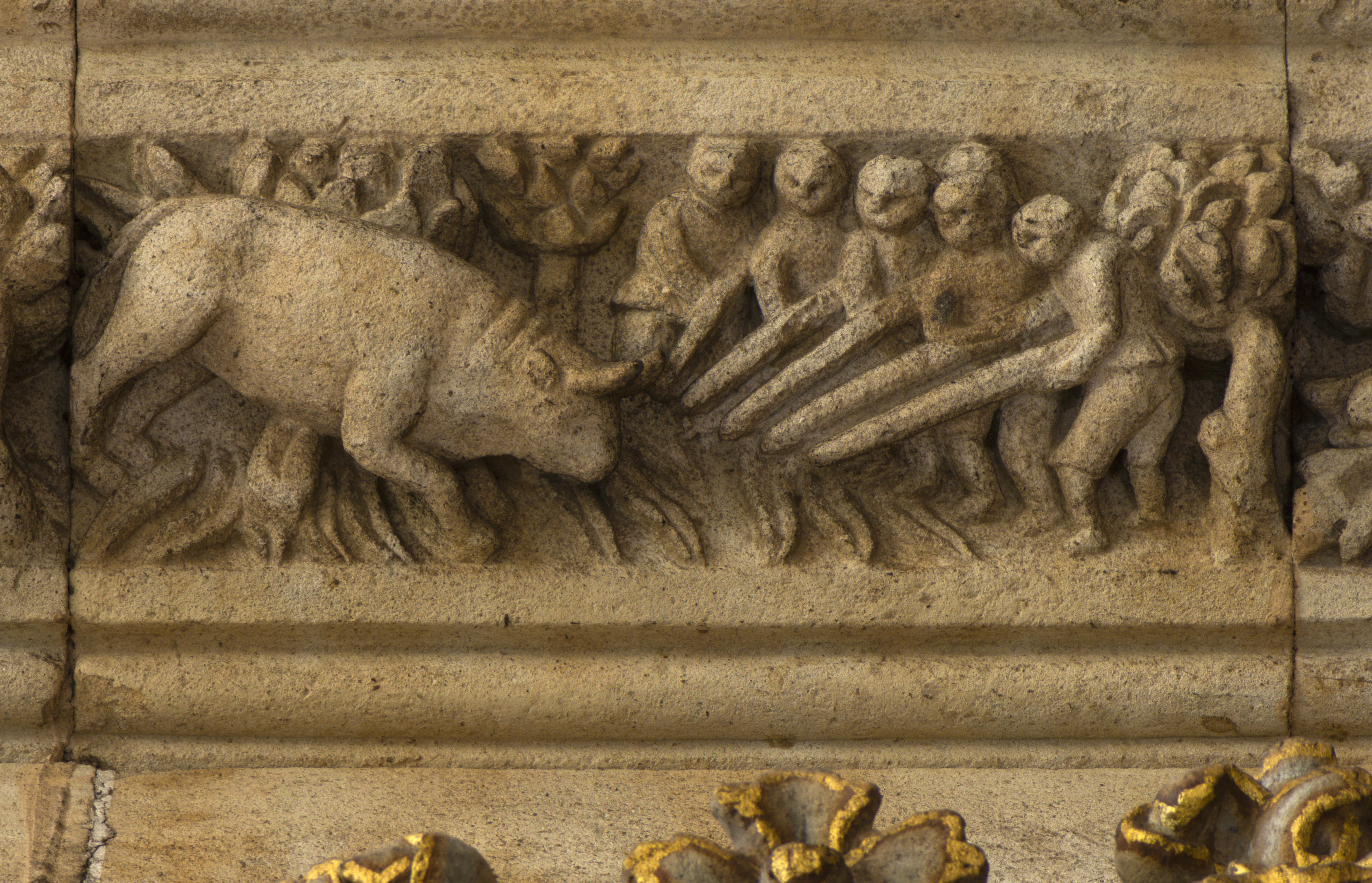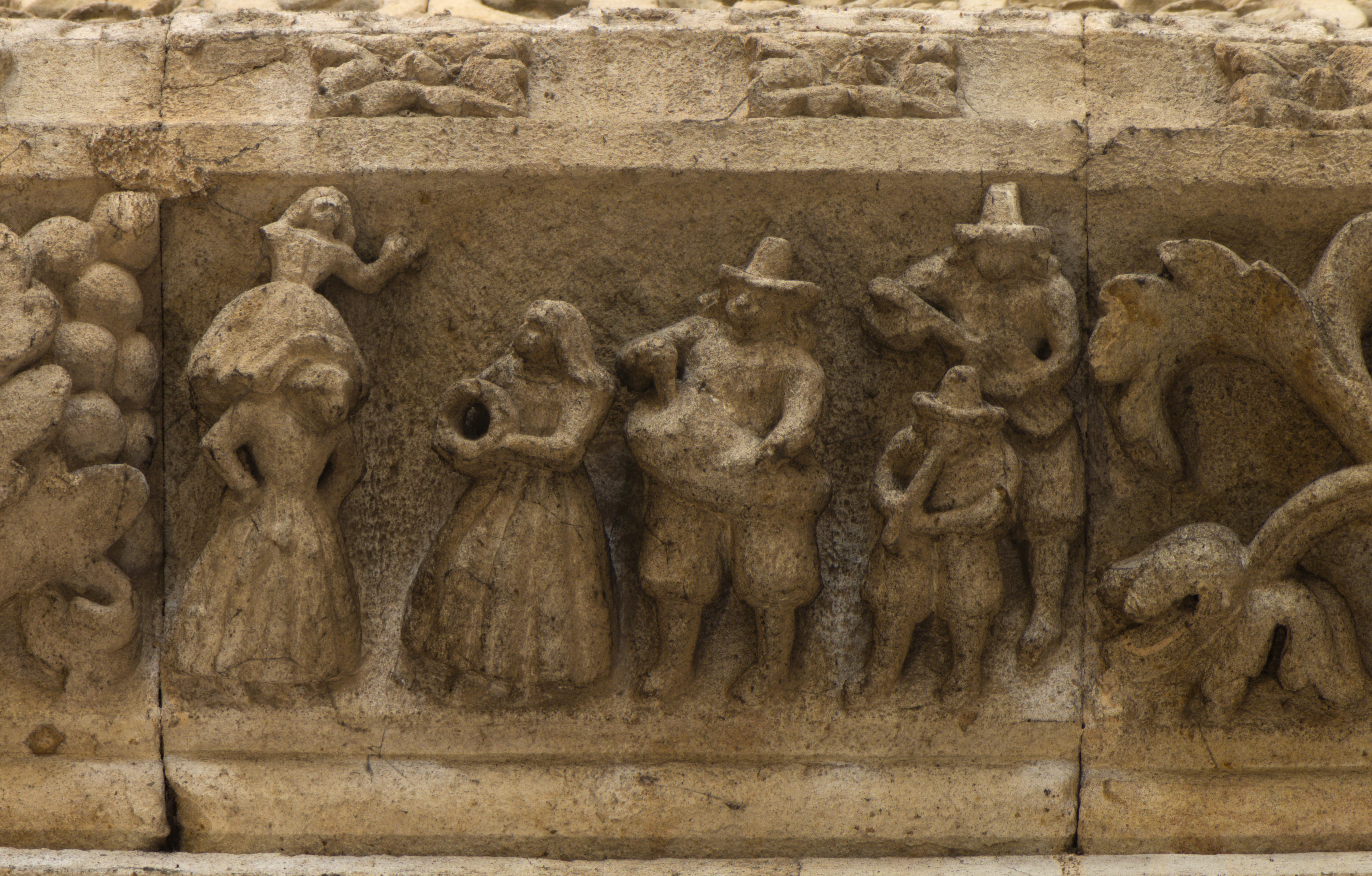 Entre los cientos de escenas que adornan todo el corredor de la Catedral, a través de sus diferentes naves, hay escenas donde se representa a un tamborilero con un grupo de gente que está bailando, del siglo XVI, “u otra que aparece una señora con un pandero cuadrado propio del pueblo de Peñaparda, en la provincia de Salamanca”. Tampoco faltan escenas como corridas de toros, “muy propias en la dehesa salmantina”, o en otra donde hay una mesa en la que están representados unos canónigos, “que parece que están en una sobremesa, como si estuvieran jugando a las cartas… son escenas graciosas y curiosas que reflejan elementos de la vida cotidiana”.