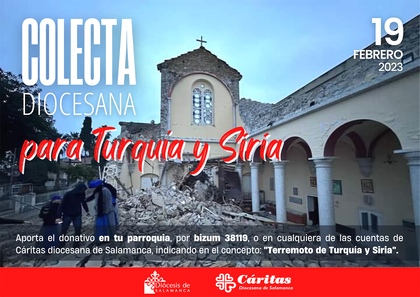 Este domingo, 19 de febrero, la Diócesis de Salamanca celebra una colecta especial en todas sus parroquias para los afectados del terremoto de Turquía y Siria. Según los últimos datos oficiales, en esta tragedia han muerto 35.000 personas entre ambos países y 85.000 han resultado heridas. Los expertos han apuntado que ha sido el peor terremoto en los últimos 80 años en dicha zona.