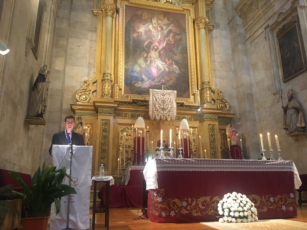 Tomás González Blázquez, médico y cofrade de la Vera Cruz, fue el encargado de pronunciar el Pregón del Corpus Christi 2018 en un acto organizado por el Cabildo Catedral de Salamanca que se celebró el jueves 31 de mayo en la parroquia de San Sebastián. Tomás dedicó el Pregón a las Esclavas del Santísimo y de la Inmaculada “por su inmensa contribución a la devoción eucarística en Salamanca”.