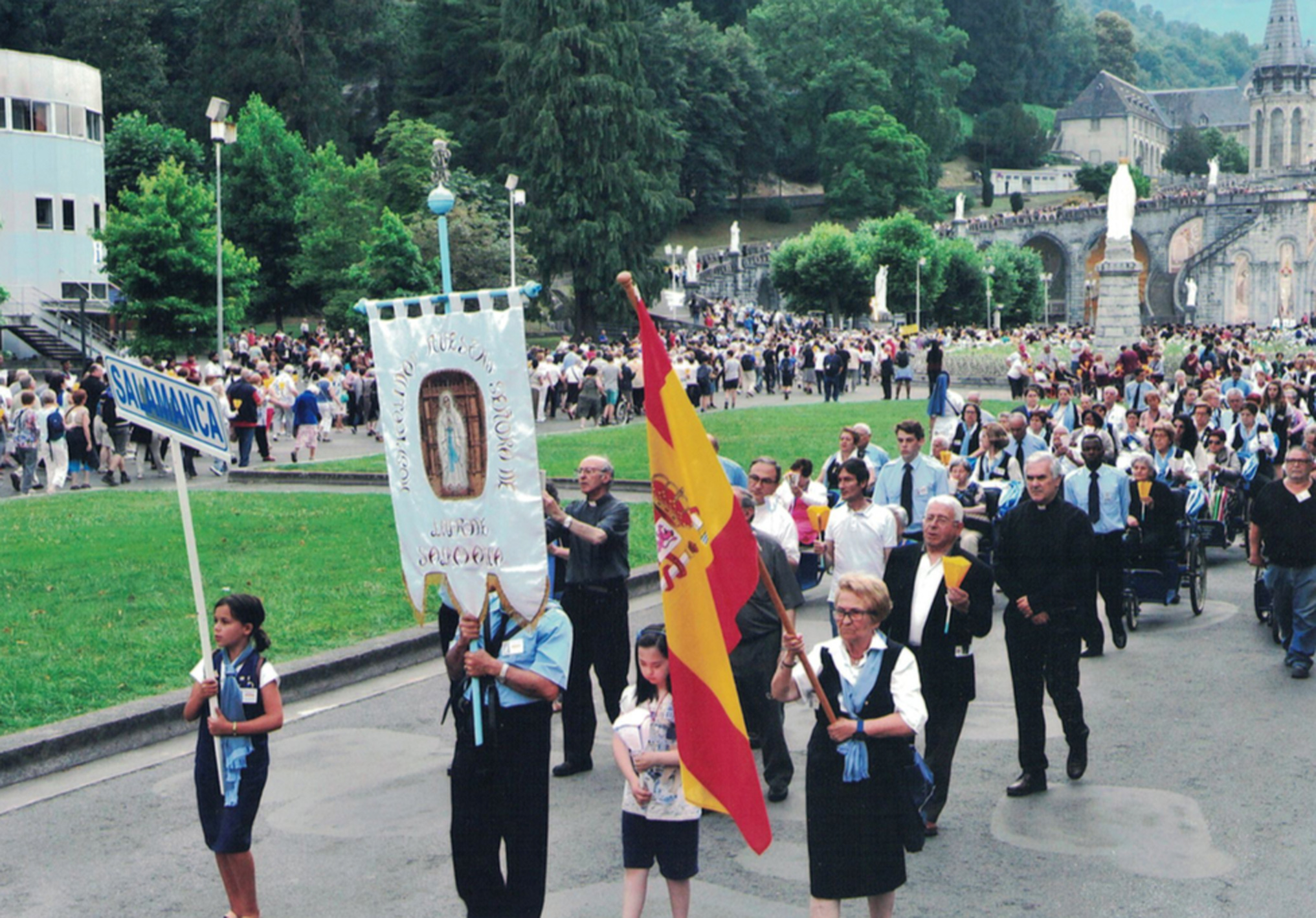 Ángel Gómez es presidente de la Hospitalidad de Lourdes en Salamanca desde hace ocho años, aunque lleva 30 participando en esta peregrinación. “Primero fue mi hija, yo llegué a la quinta edición, y ella fue la que me dijo que me encantaría, y así fue”, confiesa. Aquel primer viaje en tren en 1989 fue “muy emocionante”. Reconoce que en más de una ocasión se le humedecieron los ojos. “La cantidad de enfermos que ves, en sillas de ruedas, en camillas, y yo no me imaginaba tanta gente en esas condiciones”, admite Gómez. Tras dos años de peregrinar como camillero pasó a ser el responsable de los mismos, “he estado en ese cargo hasta hace ocho años que pasé a presidente”.