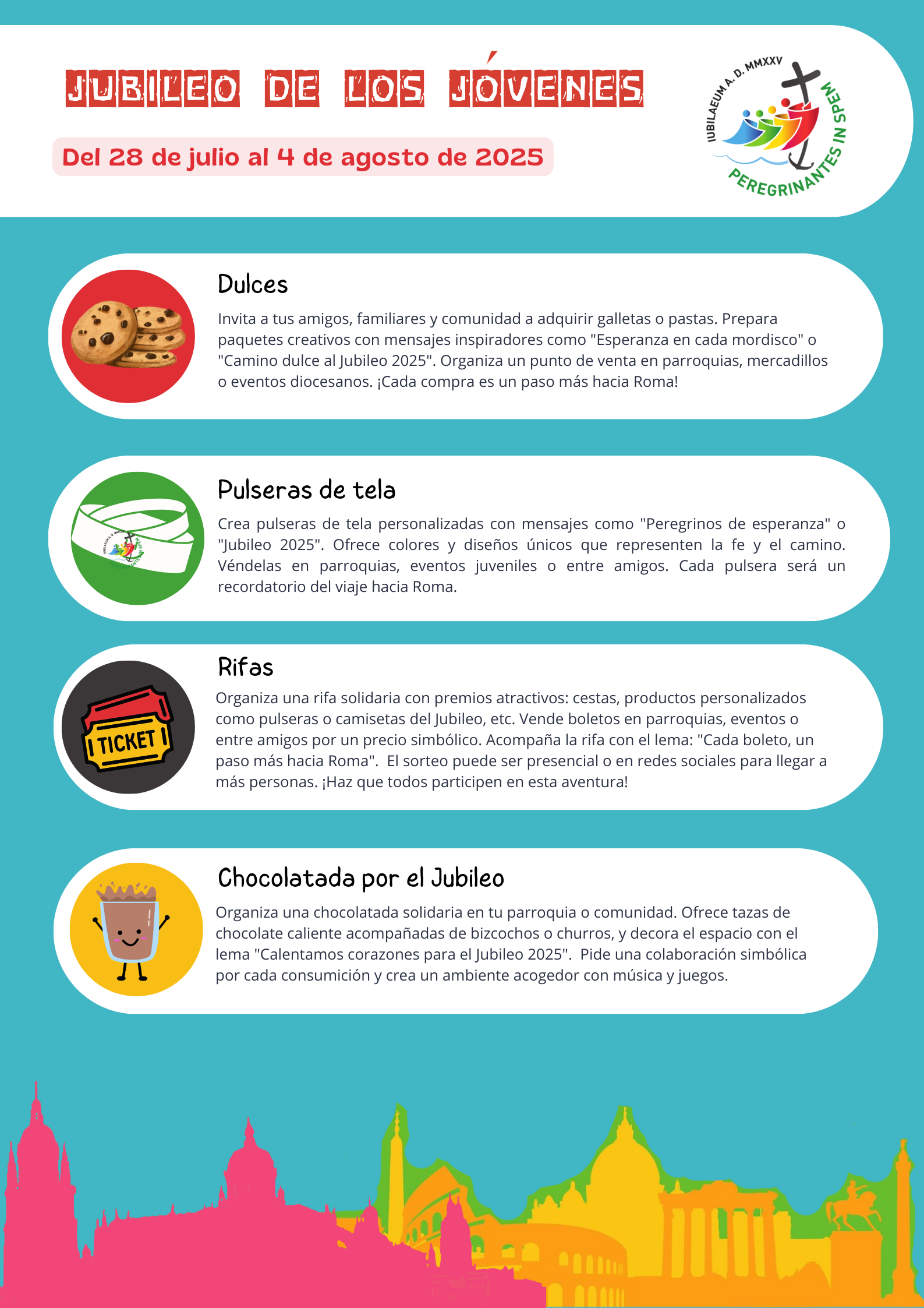 Desde la Delegación de Pastoral Juvenil han compartido unas ideas que ayuden a los jóvenes a financiar su peregrinación a Roma y siempre pueden contar con la ayuda de sus párrocos, que les orienten en este proceso.