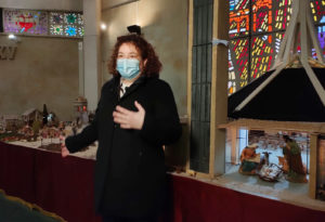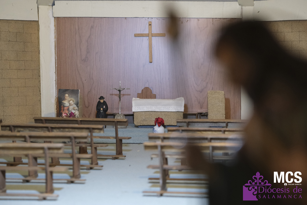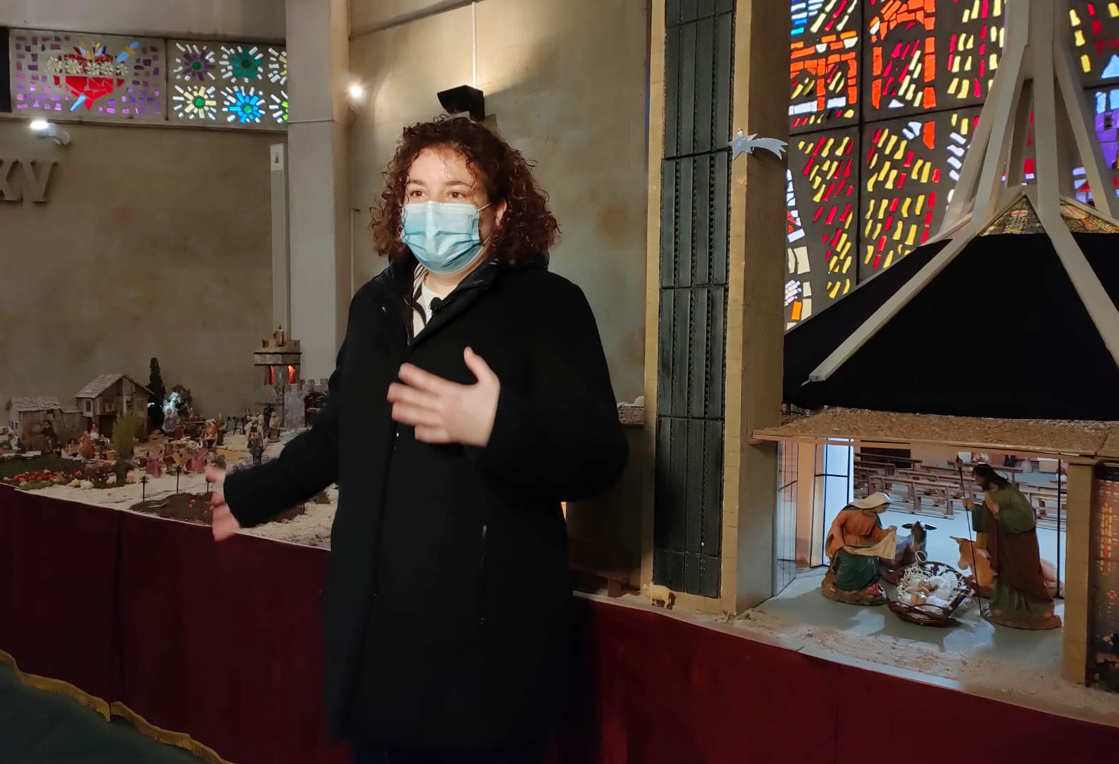 A los tres años de iniciar este belén, este grupo se embarcó en otro reto para ampliar el nacimiento: crear una maqueta de la iglesia que se convertiría en pesebre. Así lo detalla Fátima, porque lograron recrear el templo con el más mínimo detalle, tanto en el mobiliario como con sus llamativas vidrieras: “Hay una miniatura dentro que representa a nuestro párroco, Matías Prieto”.