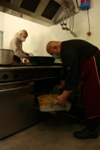 Suele llegar al centro sobre las doce del mediodía, “a veces pongo las mesas, barro el patio, y subo a la primera planta, donde están los baños, y llamo a la gente que se va a duchar, a los que les facilitamos el champú, el gel, las toallas o las maquinillas de afeitar”. Sobre las dos bajan al comedor y también colabora en lo que haga falta.