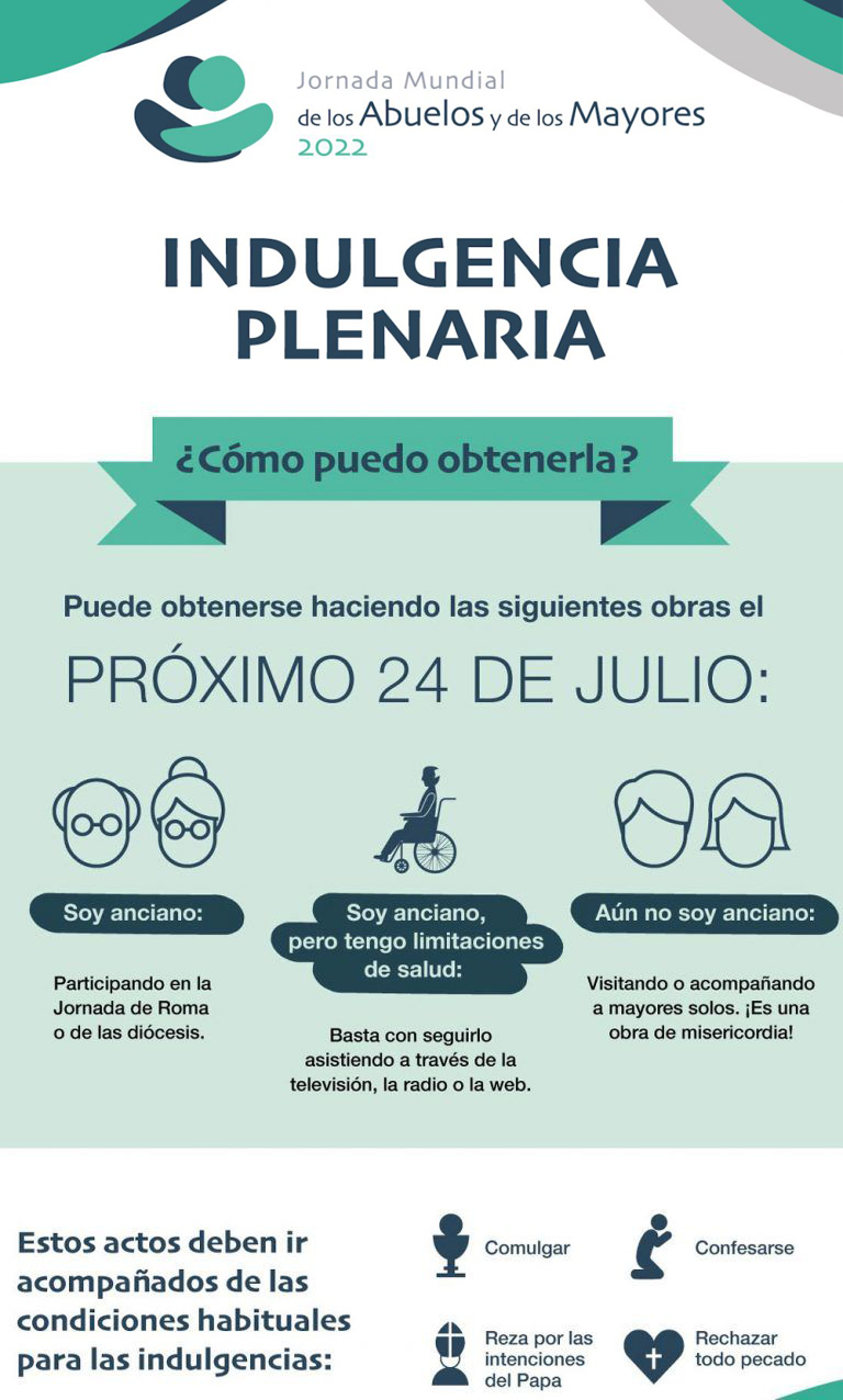 La Penitenciaría Apostólica de la Santa Sede ha concedido la Indulgencia Plenaria a todos los ancianos que participen en las liturgias celebradas con motivo de la Jornada Mundial de los Abuelos y de los Mayores. También se concede a todos aquellos que en los días inmediatamente anteriores o posteriores a esta segunda jornada mundial visiten a un anciano que esté solo. La visita, de hecho, escribe el Francisco en su mensaje para esta jornada, “¡es una obra de misericordia de nuestro tiempo!”