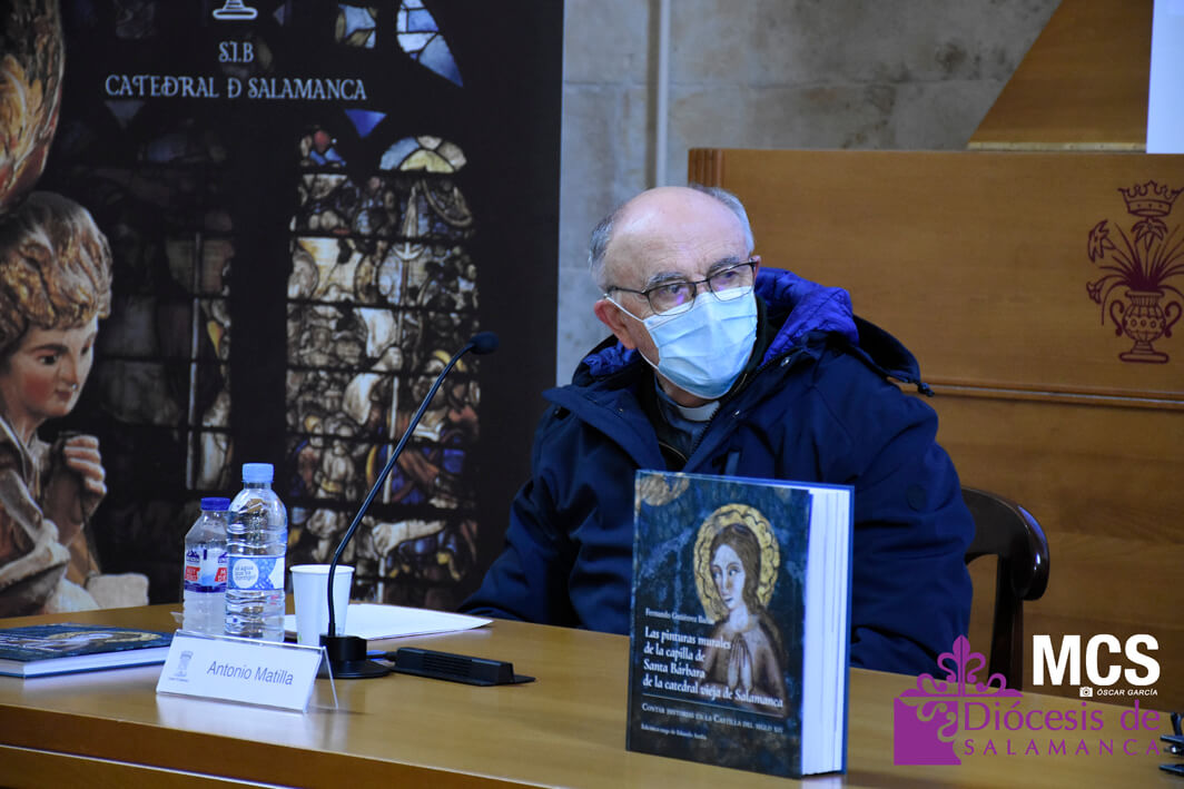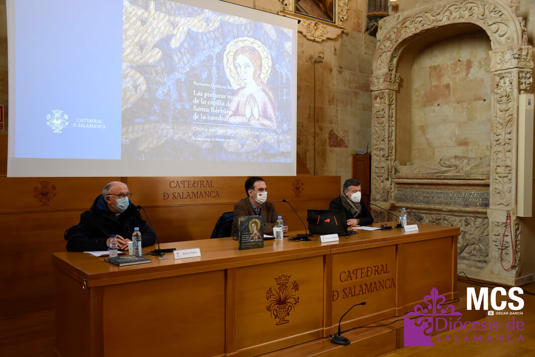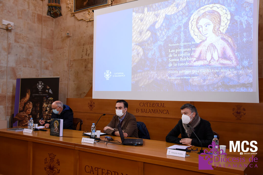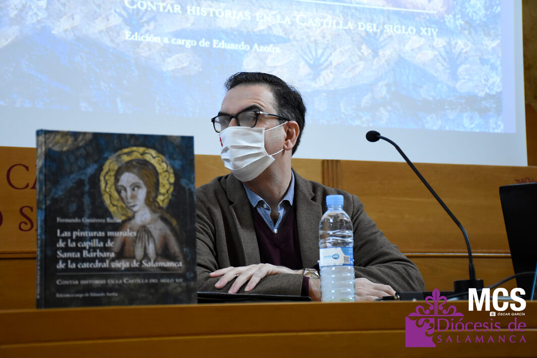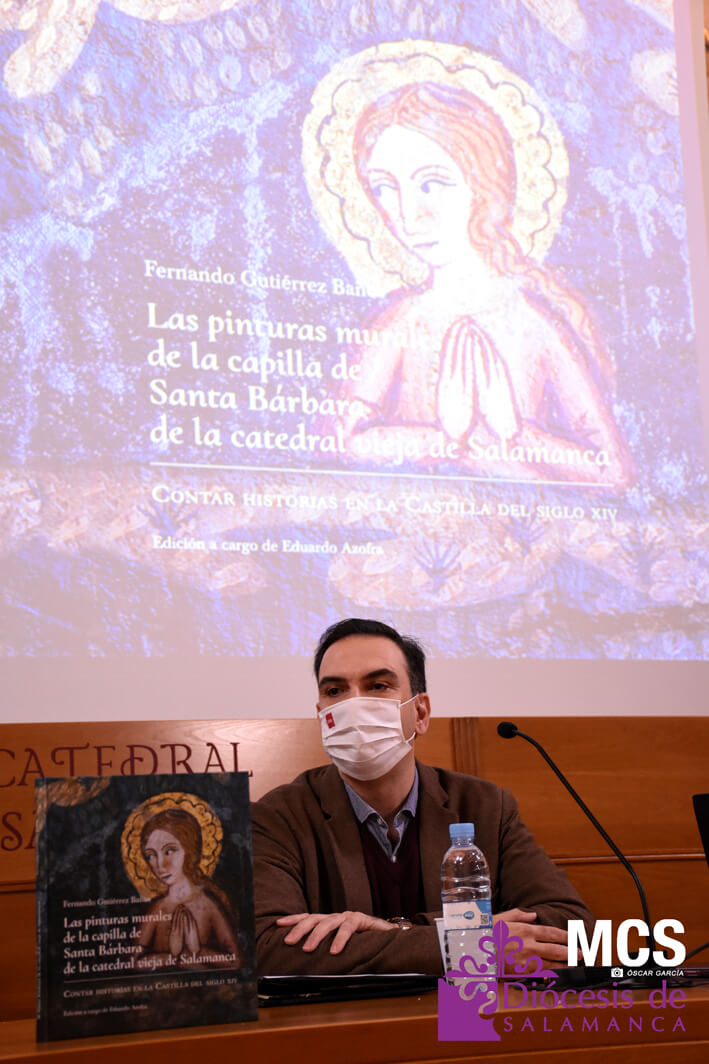 En el día que la iglesia recuerda la memoria de Santa Bárbara, 4 de diciembre, se ha presentado en la seo salmantina el libro: “Las pinturas murales de la capilla de Santa Bárbara de la Catedral vieja de Salamanca. Contar historias en la Castilla del siglo XIV”. Una obra del historiador Fernando Gutiérrez Baños, experto en Historia del Arte Medieval, que es fruto del estudio e investigación que ha llevado a cabo sobre el conjunto de pinturas murales góticas descubiertas tras el retablo del siglo XVI de la capilla de Santa Bárbara.