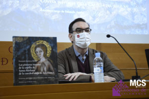 El libro trata de poner en valor todas las circunstancias excepcionales que tiene este conjunto de pinturales murales de la capilla de Santa Bárbara, en el que a través 15 compartimentos con 10 escenas, se representa “la tradición más antigua de la vida de Santa Bárbara, y por eso en ellas hay escenas únicas”, aclara. “Especialmente hay una escena que es muy llamativa, la segunda, que es el autobautismo de Santa Bárbara. Una escena que no he llegado a encontrar en ningún otro lugar”, ha manifestado el historiador quien anima a disfrutar de la singularidad de esta capilla contemplando “el retablo que sustituyó a estas pinturas murales en el siglo XVI, gracias al sistema concebido con motivo de la restauración”, y que permite “comparar cómo se veía a Santa Bárbara en el siglo XVI y cómo se la veía en el XIV”, un “contraste no solo de época y de estilo, sino de cómo se va racionalizando la religiosidad a medida que avanza el tiempo”.