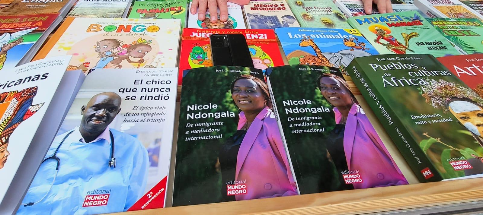 Entre las publicaciones que presenta en esta feria, destaca los libros de testimonios de africanos, con algunas novedades, como el de “Nicole Landongala. De inmigrante a mediadora internacional”. Cuenta la historia de una joven de El Congo que con 20 años emigró a Madrid, “y hoy en día es la directora de un centro de acogida de inmigrantes africanos y mediadora internacional”.