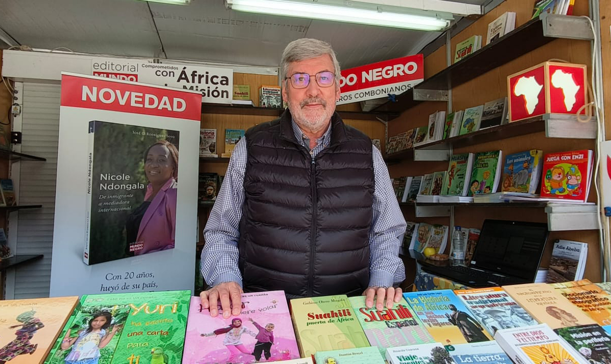 Jaime Calvera llega a la Feria del Libro de Salamanca con las últimas novedades de su editorial, Mundo Negro, de los Misioneros Combonianos. Después de 16 años como misionero en Sudáfrica, conoce bien este continente y narra con pasión cada libro expuesto para el público de Salamanca.