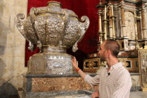 Así lo relata el historiador y técnico de la Catedral, Raúl Benito, quien recuerda las inscripciones de dicha urna, “se nos señala la fecha en la que se hizo la urna, y en la que se restaura, además de explicar lo que contiene en su interior”. Y para poder ser cerrada necesita las tres llaves.
