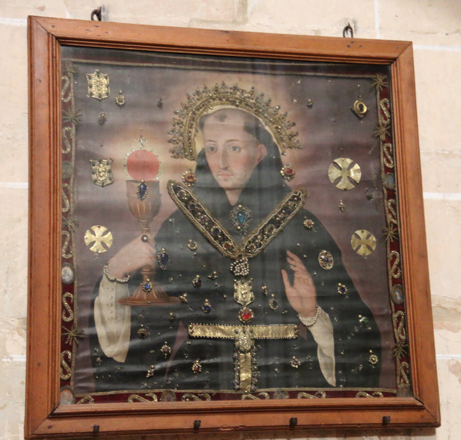 Otra imagen es un óleo sobre lienzo el que se han ido aplicando pequeñas joyas, “que lo que hacen es adornar el cuadro y enriquecerlo”. Como detalla este historiador del Arte, “es un cuadro del siglo XVII”. El santo agustino también está retratado en otro lienzo ubicado en la capilla de San José, que refleja el milagro del pozo amarillo.