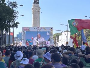 El jueves, 3 de agosto, el grupo se desplazó hasta Lisboa para participar en la ceremonia de acogida con el papa Francisco, en el parque de Eduardo VII, después de acudir por la mañana a la catequesis del obispo de Toledo, Mons. Francisco Cerro, en Cascais. En ese encuentro, el Santo Padre pronunció uno de los mensajes que más ha marcado a los jóvenes en la JMJ: “En la Iglesia, hay espacio para todos. Para todos. En la Iglesia, ninguno sobra. Ninguno está de más. Hay espacio para todos. Así como somos. Todos. Y eso Jesús lo dice claramente. ¡Todos, todos, todos!”.