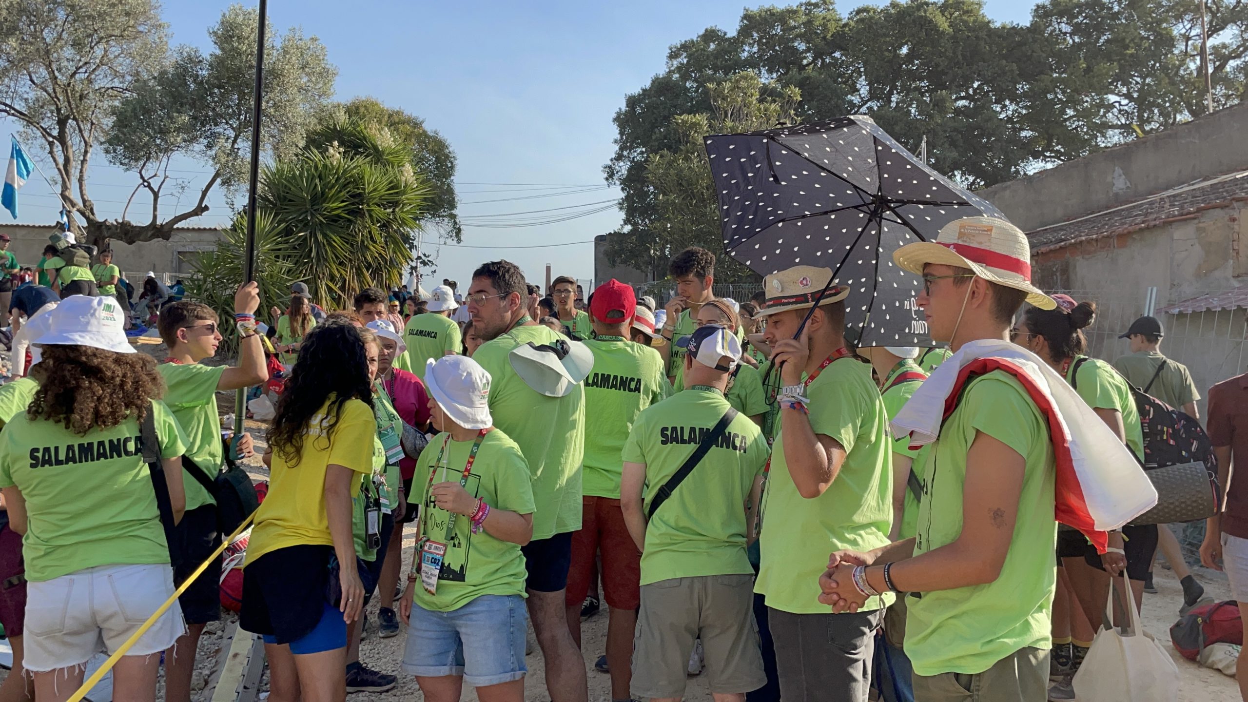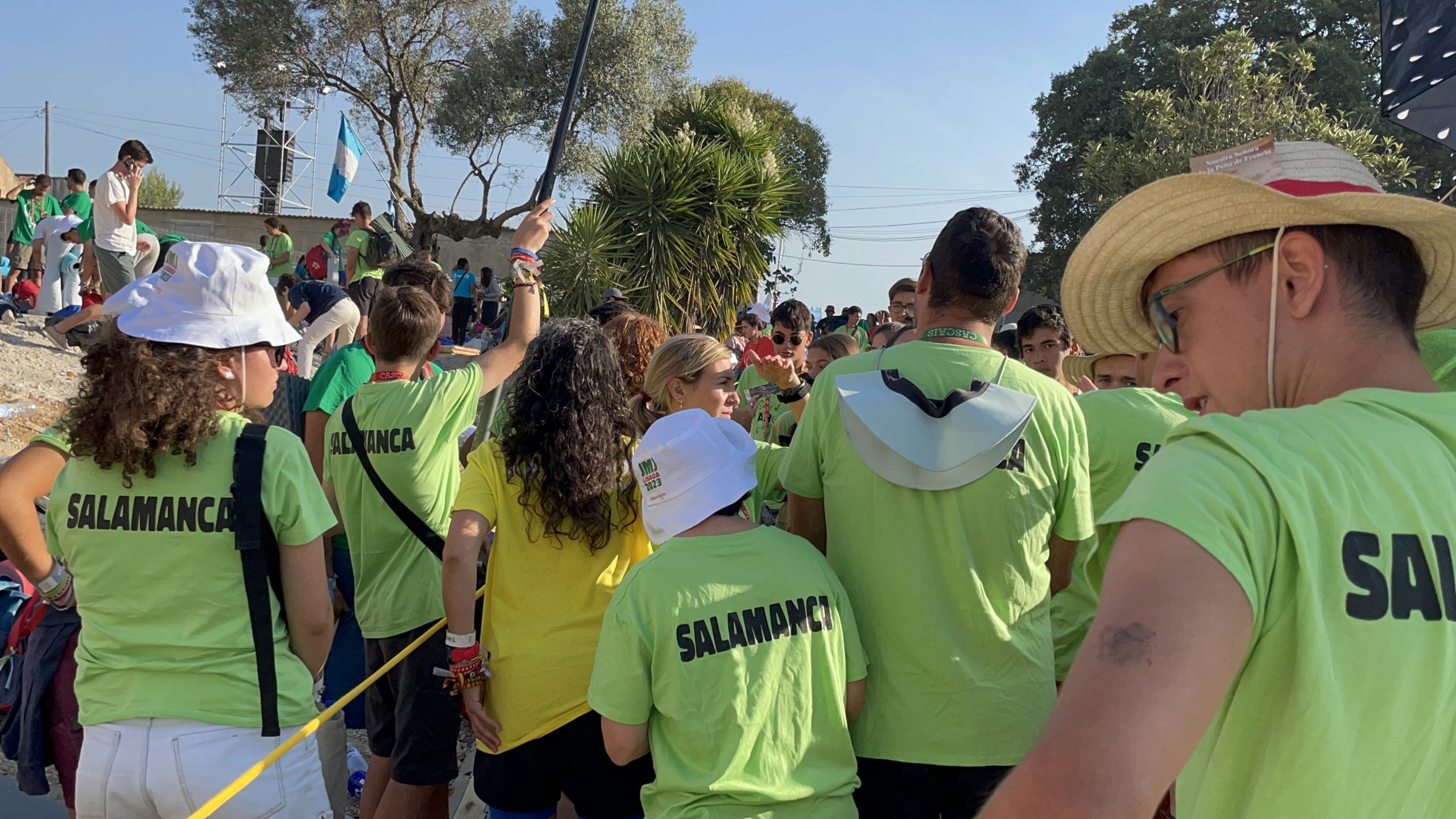 Dentro del grupo de jóvenes estaban representadas las cofradías de Salamanca, con cuatro peregrinos de la Cofradía del Cristo Yacente. Entre ellos, Sara Seguín, que para ella, esta JMJ era muy especial: “Porque he ido a varias, y todas las he compartido con una persona que ya no está con nosotros, y venía un poco con el corazón cerrado, a ver qué me encontraba o qué sentía, con muchas dudas”. Y una vez vivida la experiencia, esta joven cofrade asegura que ha encontrado muchas respuestas a todas las preguntas que tenía, “me voy con el corazón más lleno“.