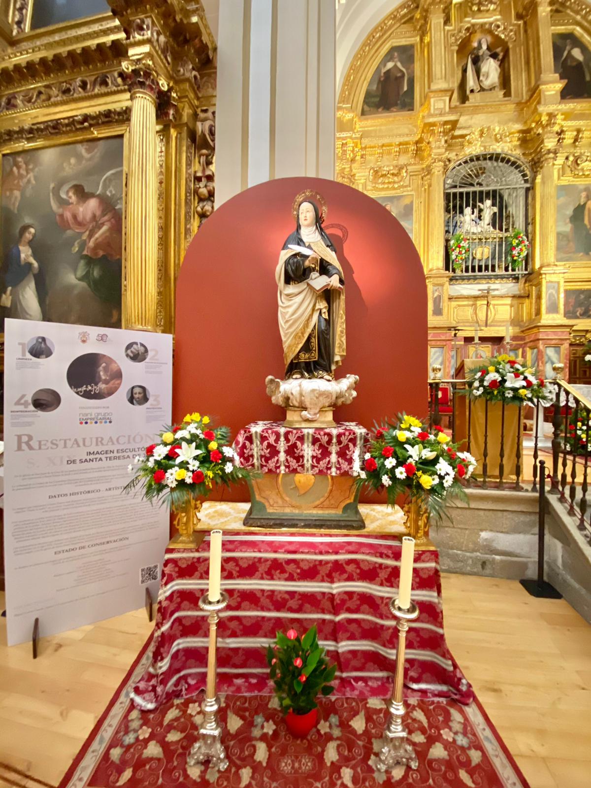 Coincidiendo con las fiestas patronales de Alba de Tormes, los Padres Carmelitas Descalzos muestran en el templo sepulcro de Santa Teresa de Jesús la imagen de la Santa recién restaurada por RestNova Soluciones Artísticas y que ha sido financiada por el grupo empresarial Nani.