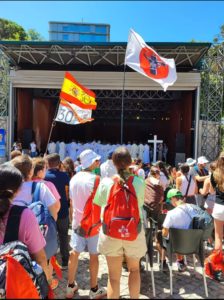Acudimos cinco amigos como cofradía, como la Real Cofradía Penitencial de Cristo Yacente de la Misericordia y de la Agonía Redentora. Por primera vez participábamos juntos en una JMJ y eso le dio un significado completamente nuevo. Yo, que ya había vivido otras veces estos encuentros siendo más niña, ahora lo vivía con una madurez adquirida, con una mirada distinta. Pero lo más emocionante fue ver cómo mis amigos lo estaban viviendo por primera vez.