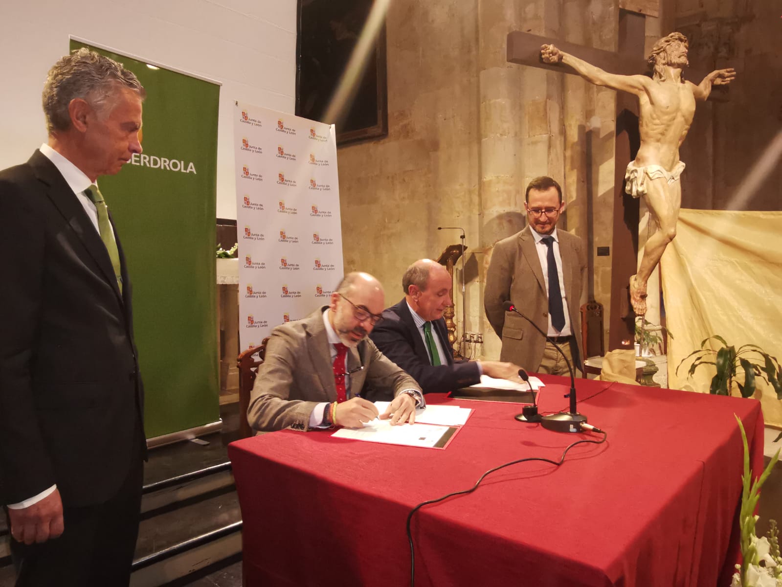 Durante la presentación de las jornadas técnicas se firmó el protocolo de colaboración entre la Junta de Castilla y León, a través de su consejero de Cultura y Turismo, Javier Ortega, y el director general de la Fundación Iberdrola España, Ramón Castresana, para dar continuidad al Plan Románico Atlántico durante los próximos cuatro años (2020-2023).