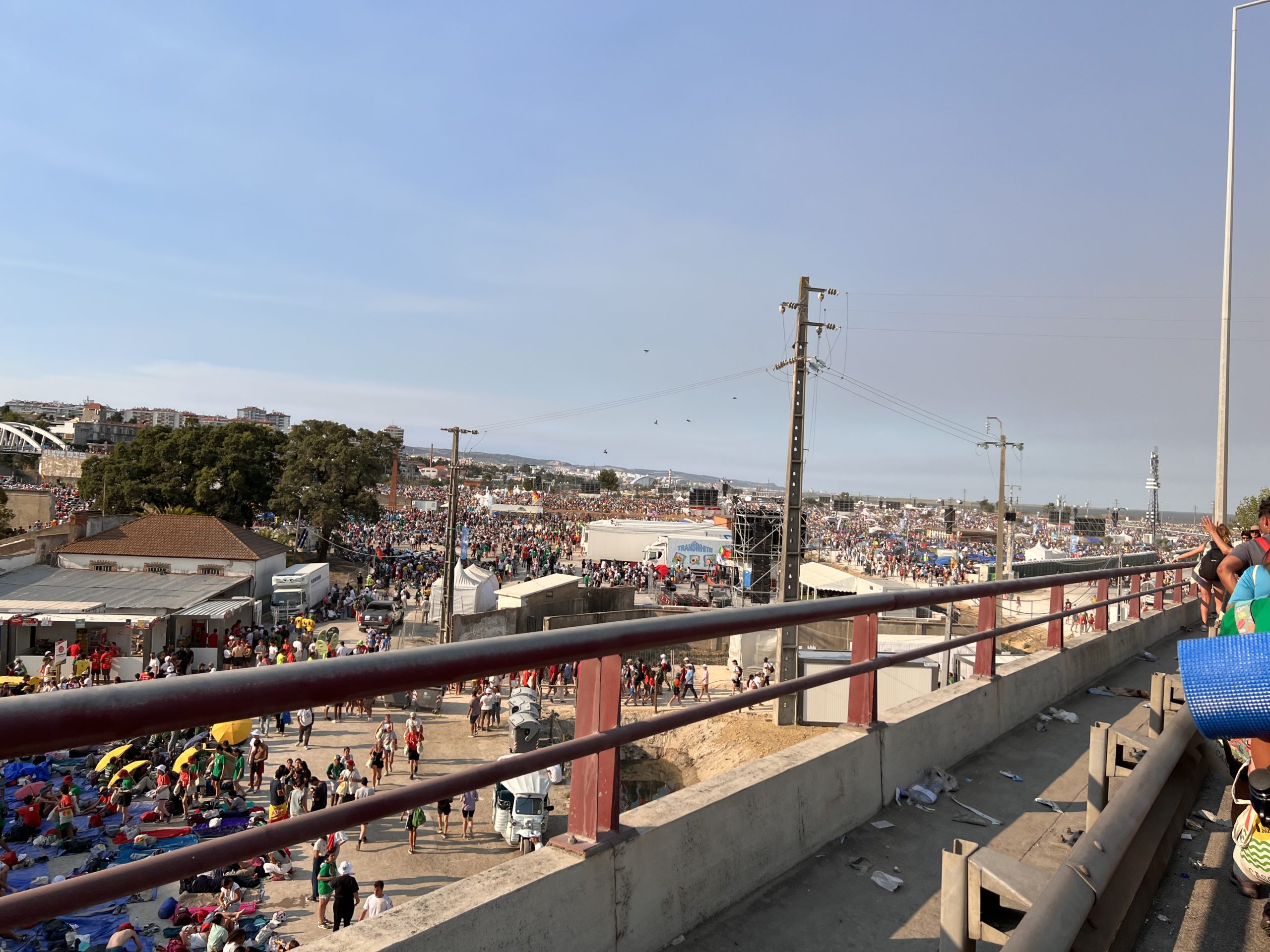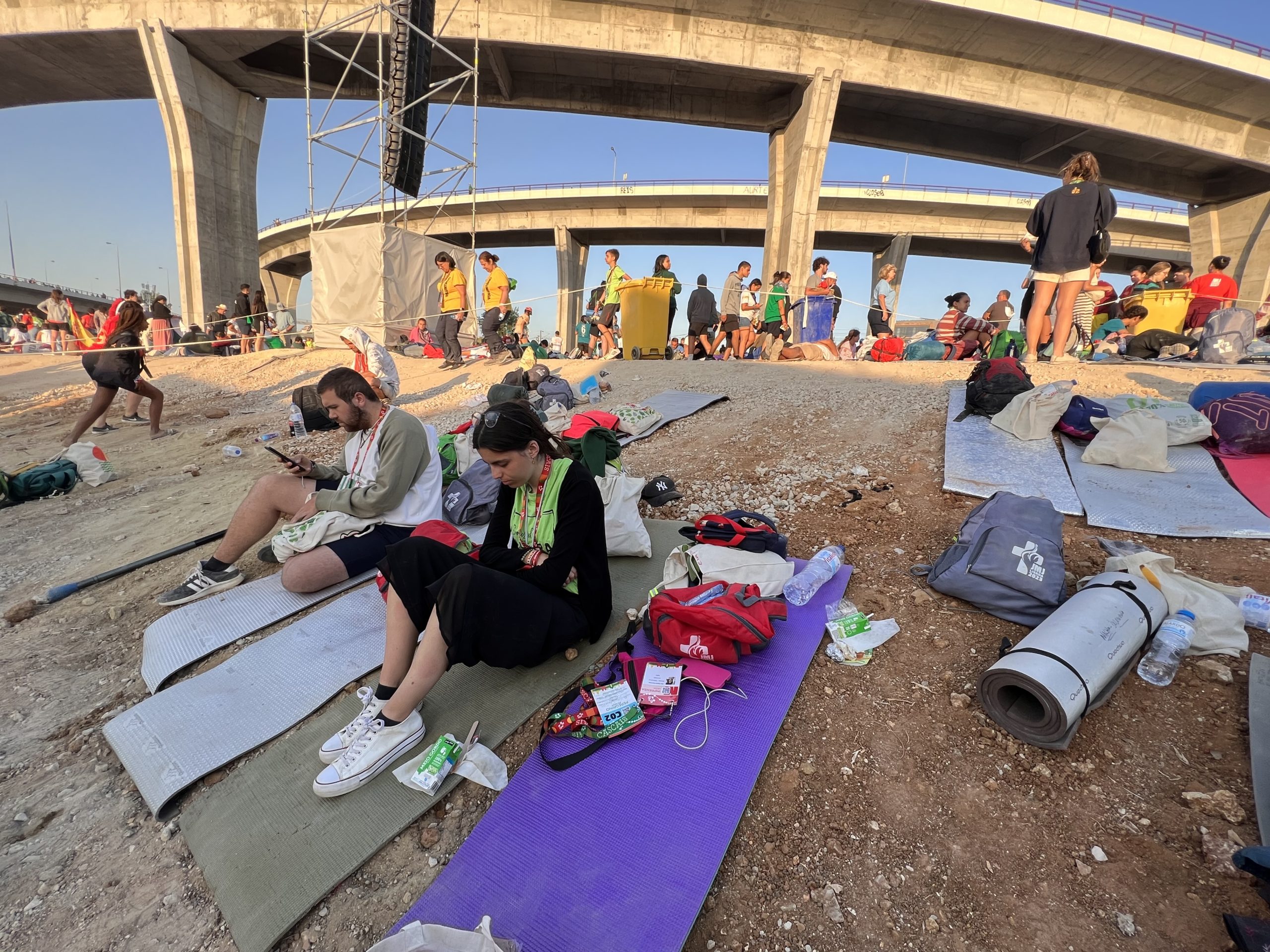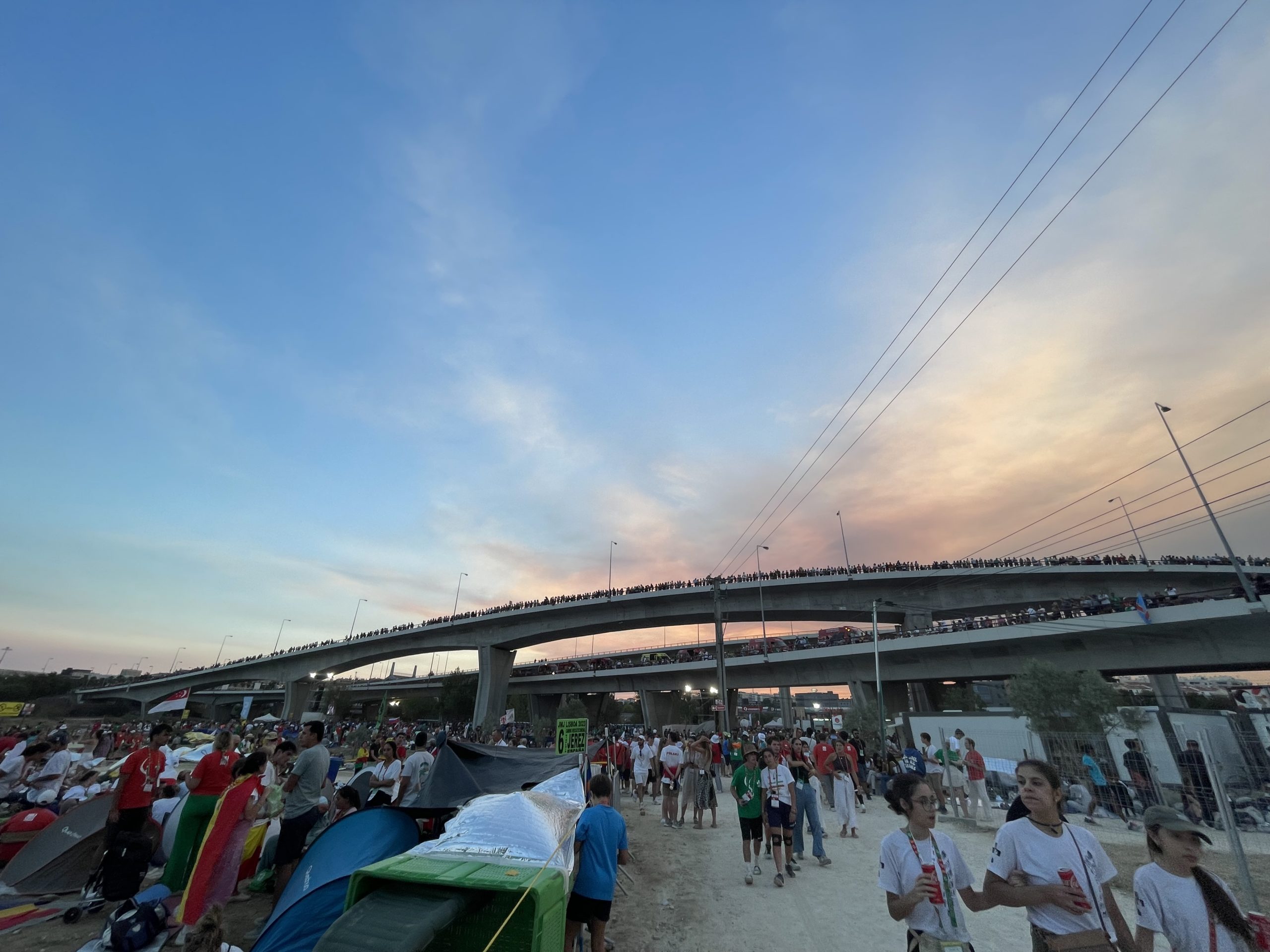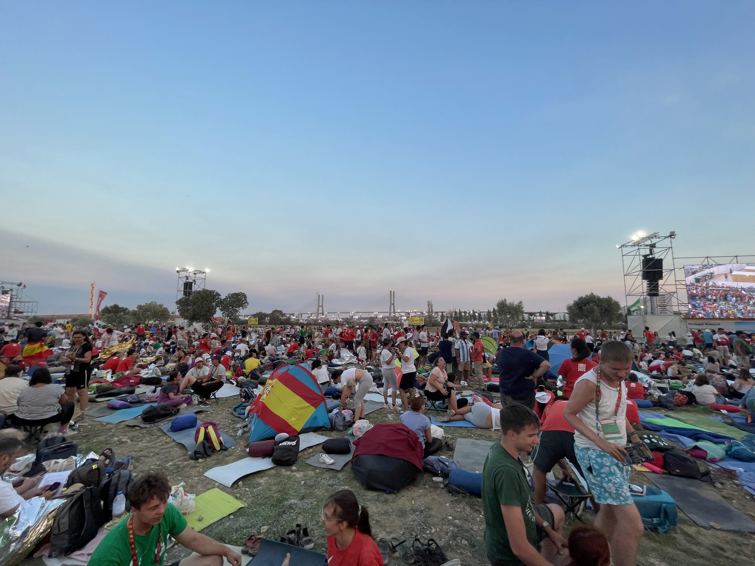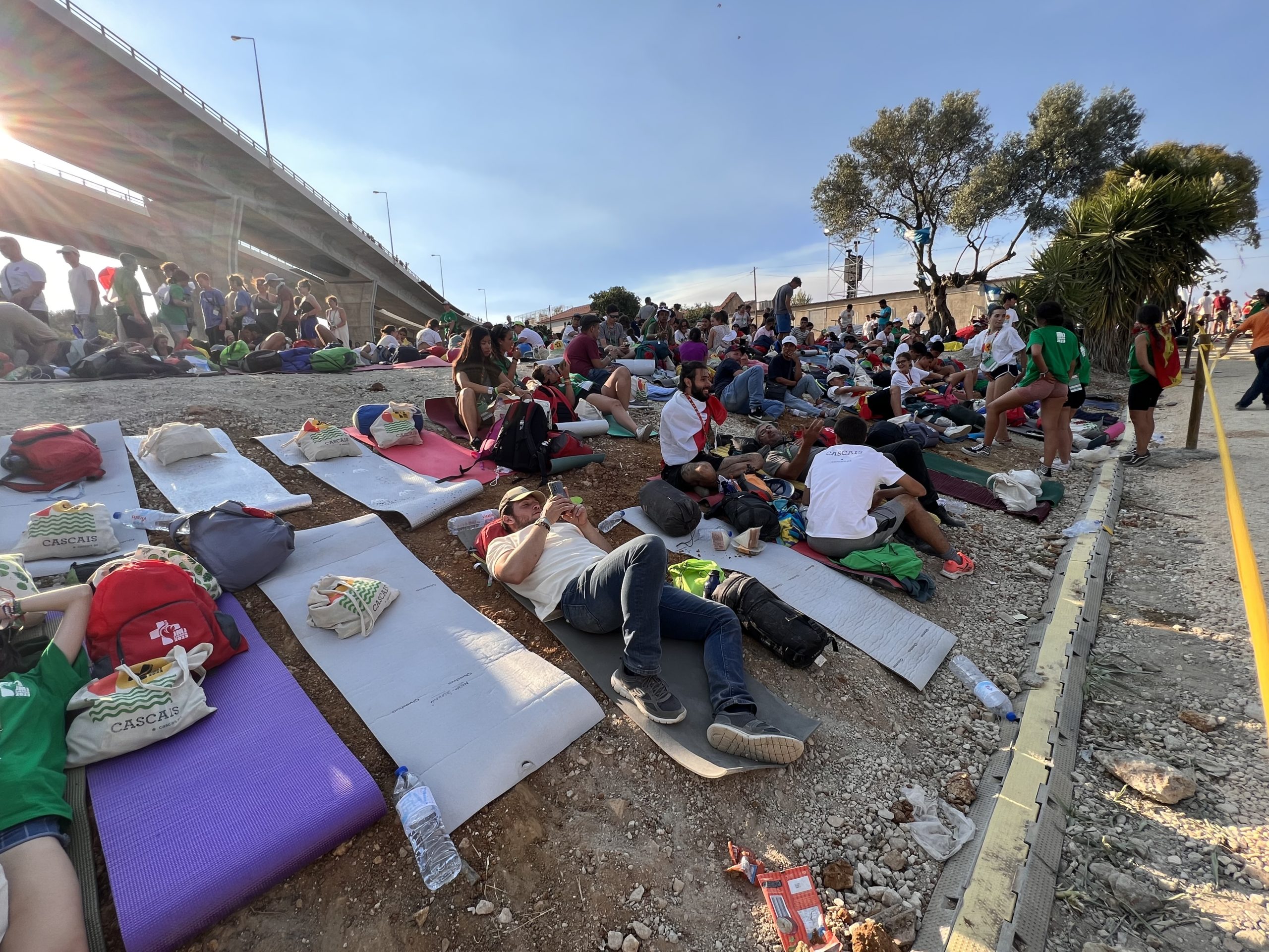 Para los jóvenes de Salamanca, la antesala del final de la Jornada Mundial de la Juventud, que tendría lugar el domingo con la misa de envío, fue en una de las zonas más humildes del parque do Tejo (Campo de Graça), en el sector C02, muy lejos del altar, a un par de kilómetro de él, o quizás más. Rodeados de tierra, y polvo, debajo de los puentes de una gran autovía, en las periferias que tanto nombra el papa, y donde deben de acudir los cristianos.