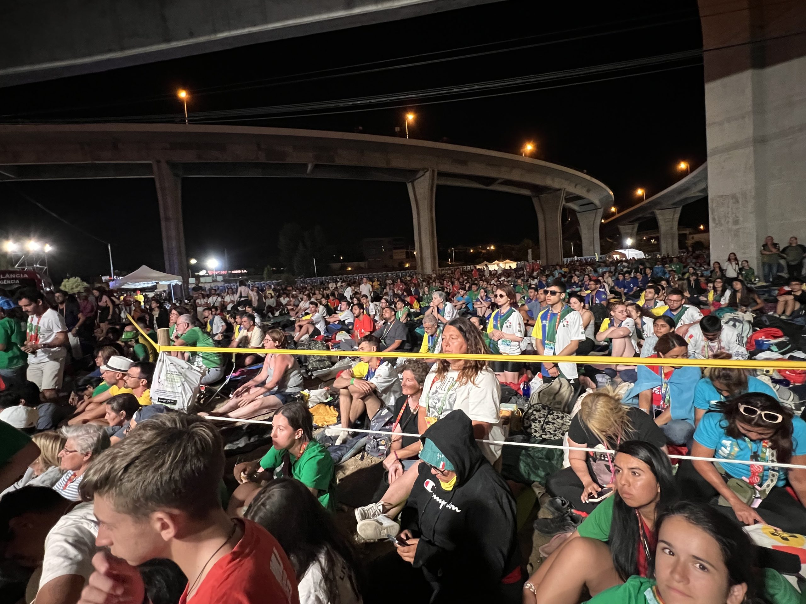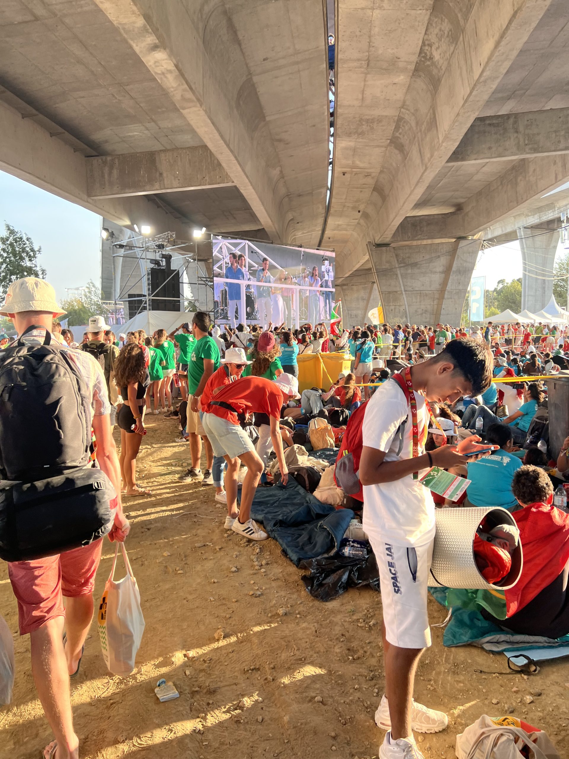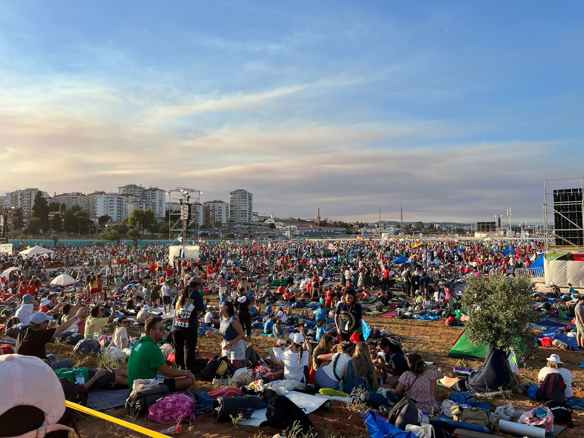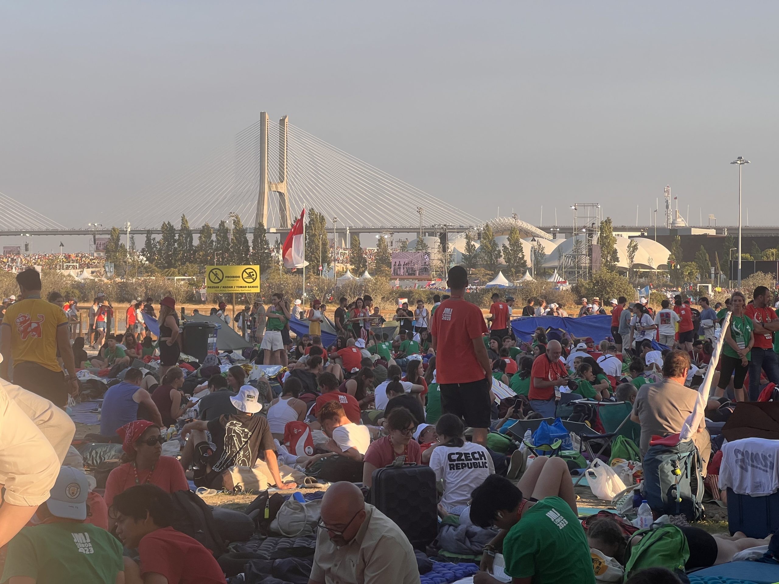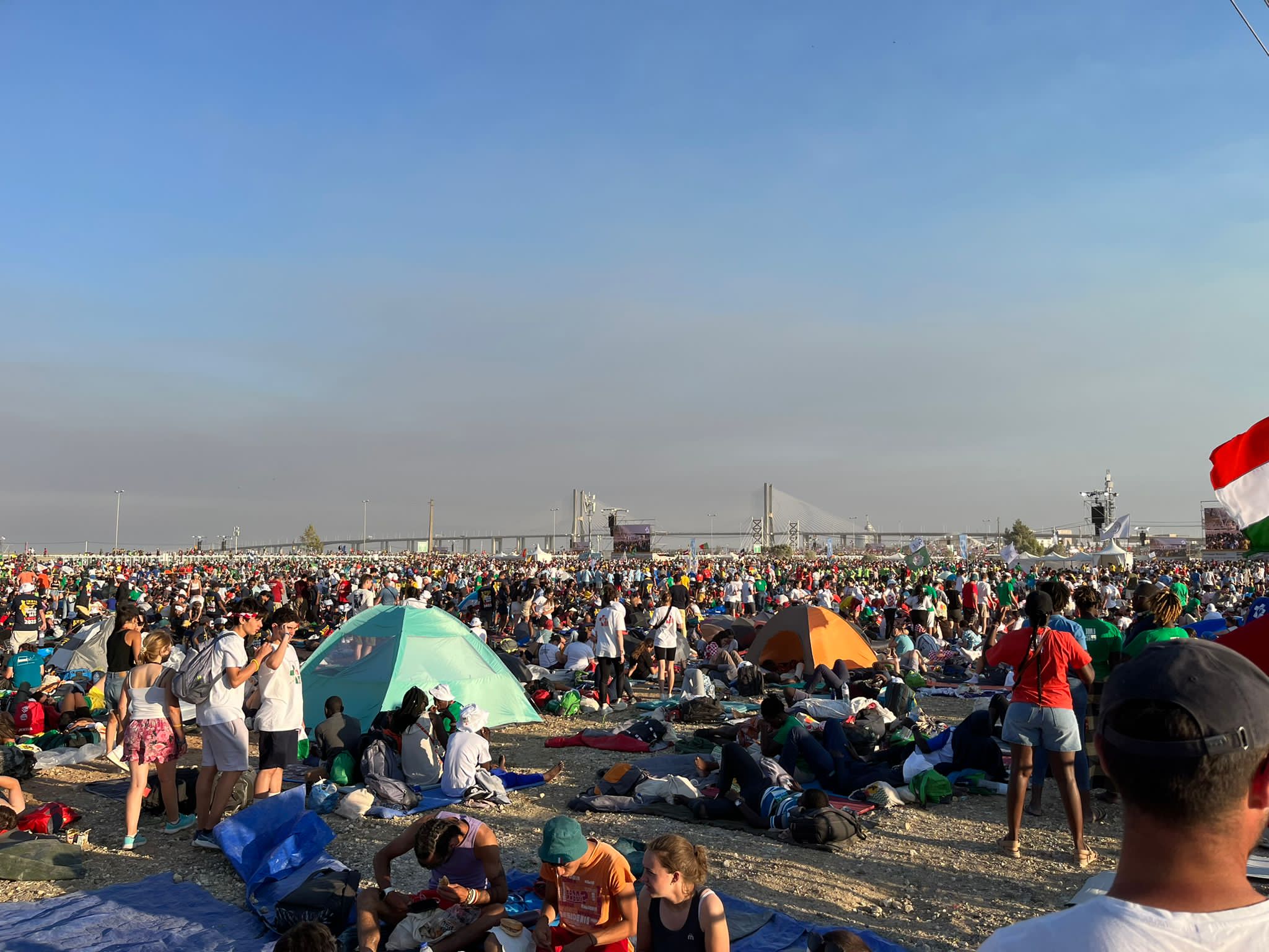 Para los jóvenes de Salamanca, la antesala del final de la Jornada Mundial de la Juventud, que tendría lugar el domingo con la misa de envío, fue en una de las zonas más humildes del parque do Tejo (Campo de Graça), en el sector C02, muy lejos del altar, a un par de kilómetro de él, o quizás más. Rodeados de tierra, y polvo, debajo de los puentes de una gran autovía, en las periferias que tanto nombra el papa, y donde deben de acudir los cristianos.