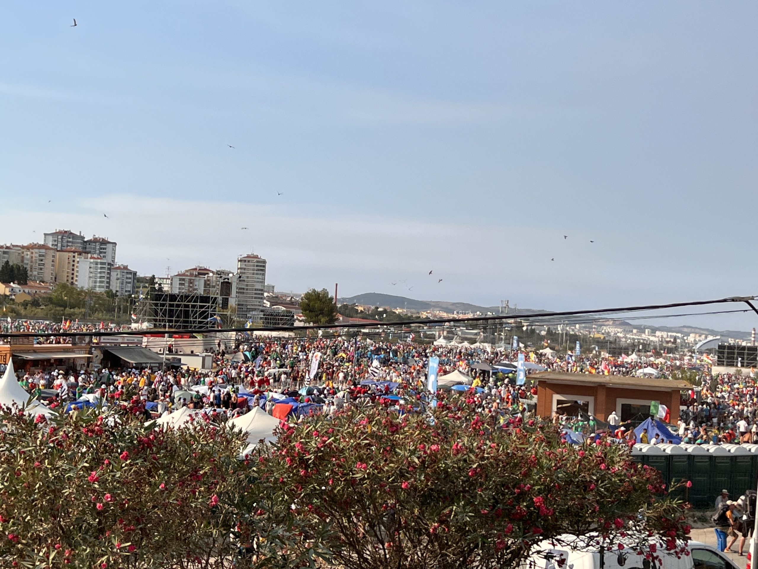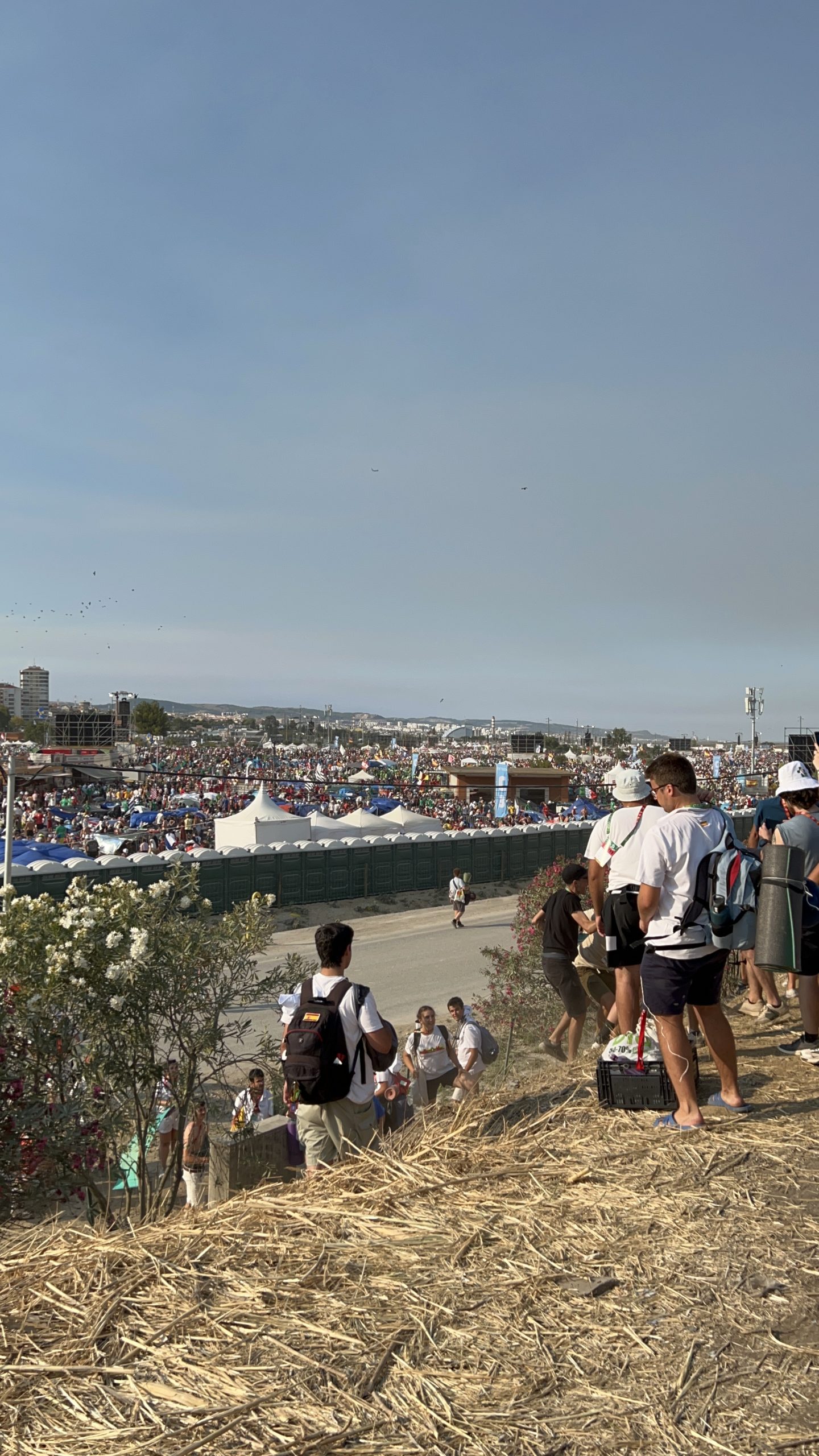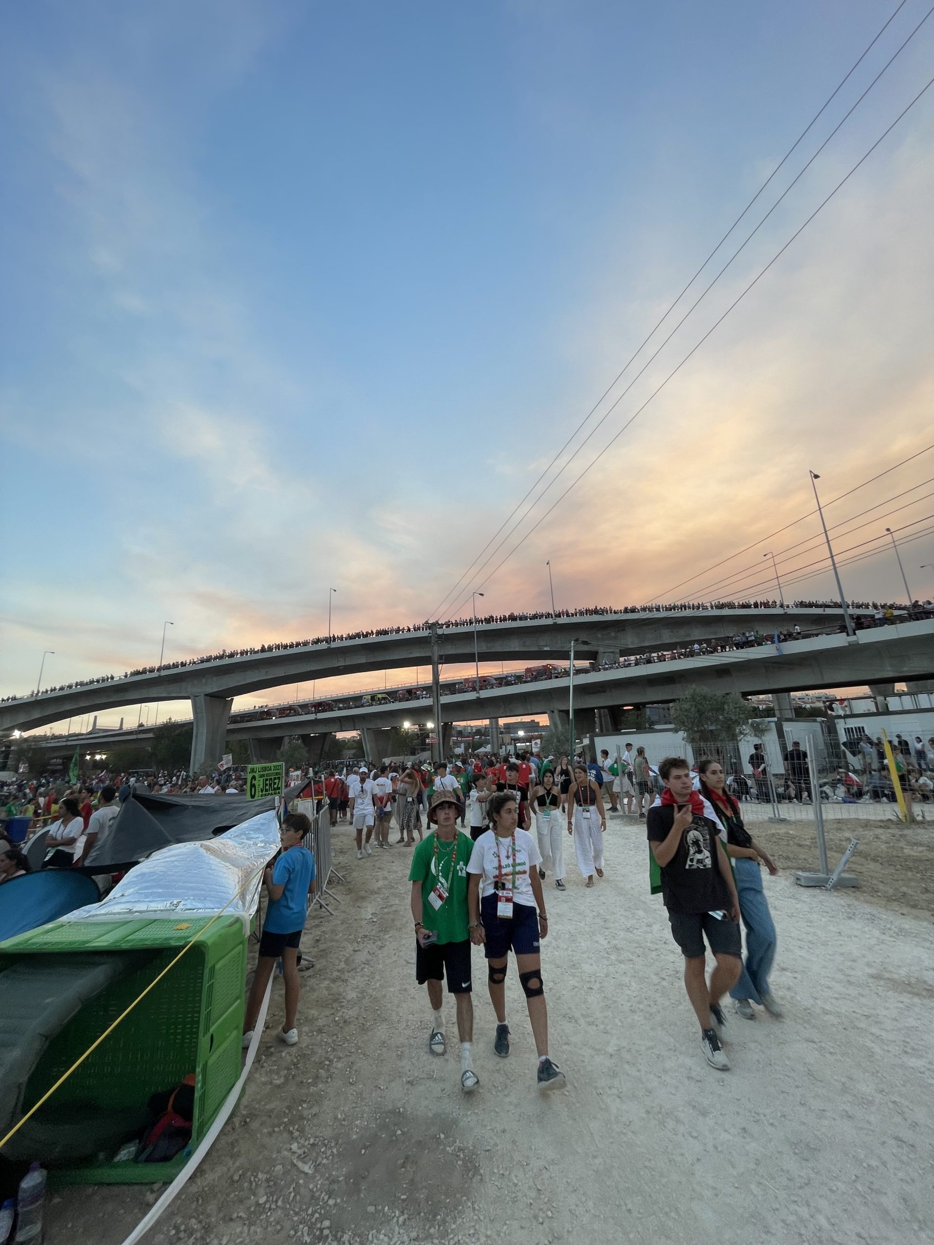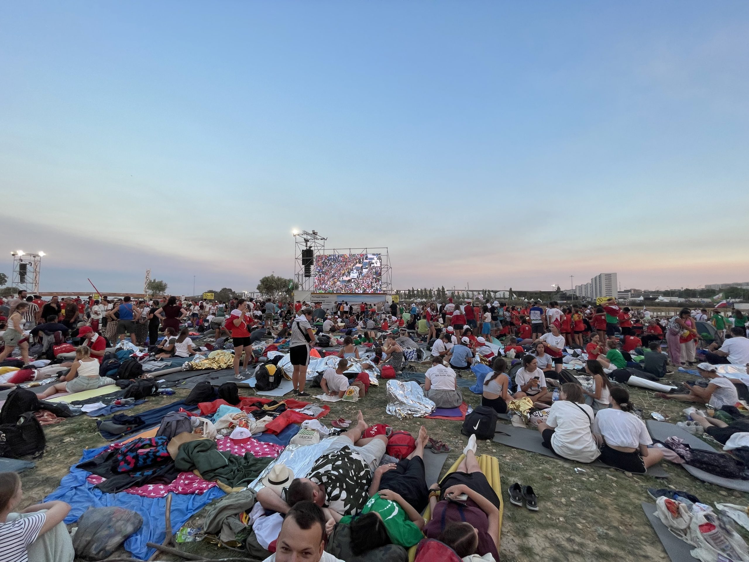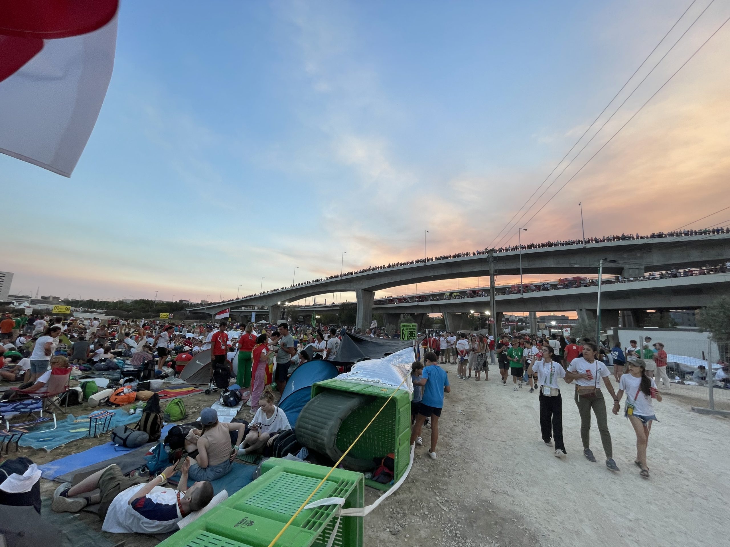 Para los jóvenes de Salamanca, la antesala del final de la Jornada Mundial de la Juventud, que tendría lugar el domingo con la misa de envío, fue en una de las zonas más humildes del parque do Tejo (Campo de Graça), en el sector C02, muy lejos del altar, a un par de kilómetro de él, o quizás más. Rodeados de tierra, y polvo, debajo de los puentes de una gran autovía, en las periferias que tanto nombra el papa, y donde deben de acudir los cristianos.
