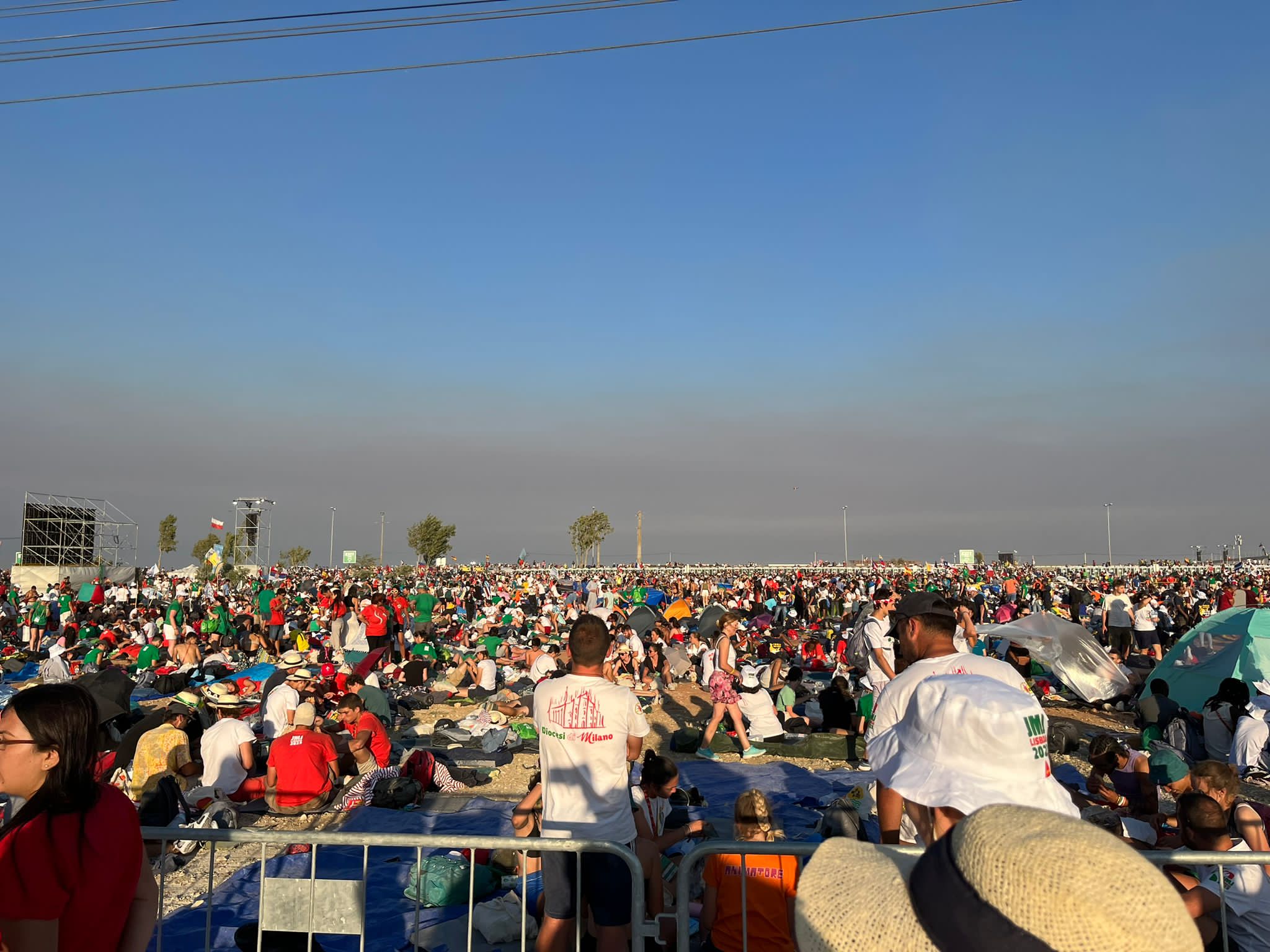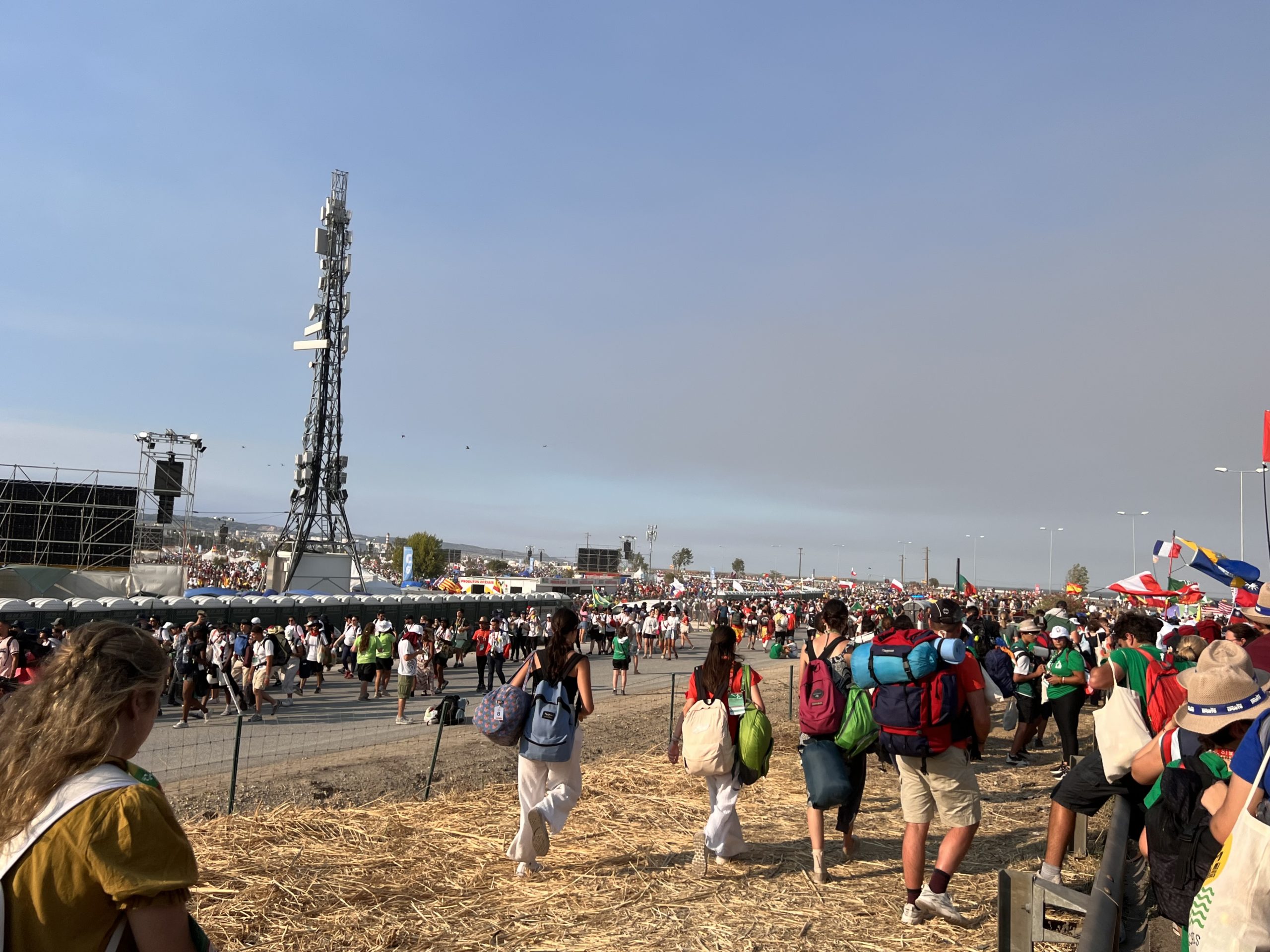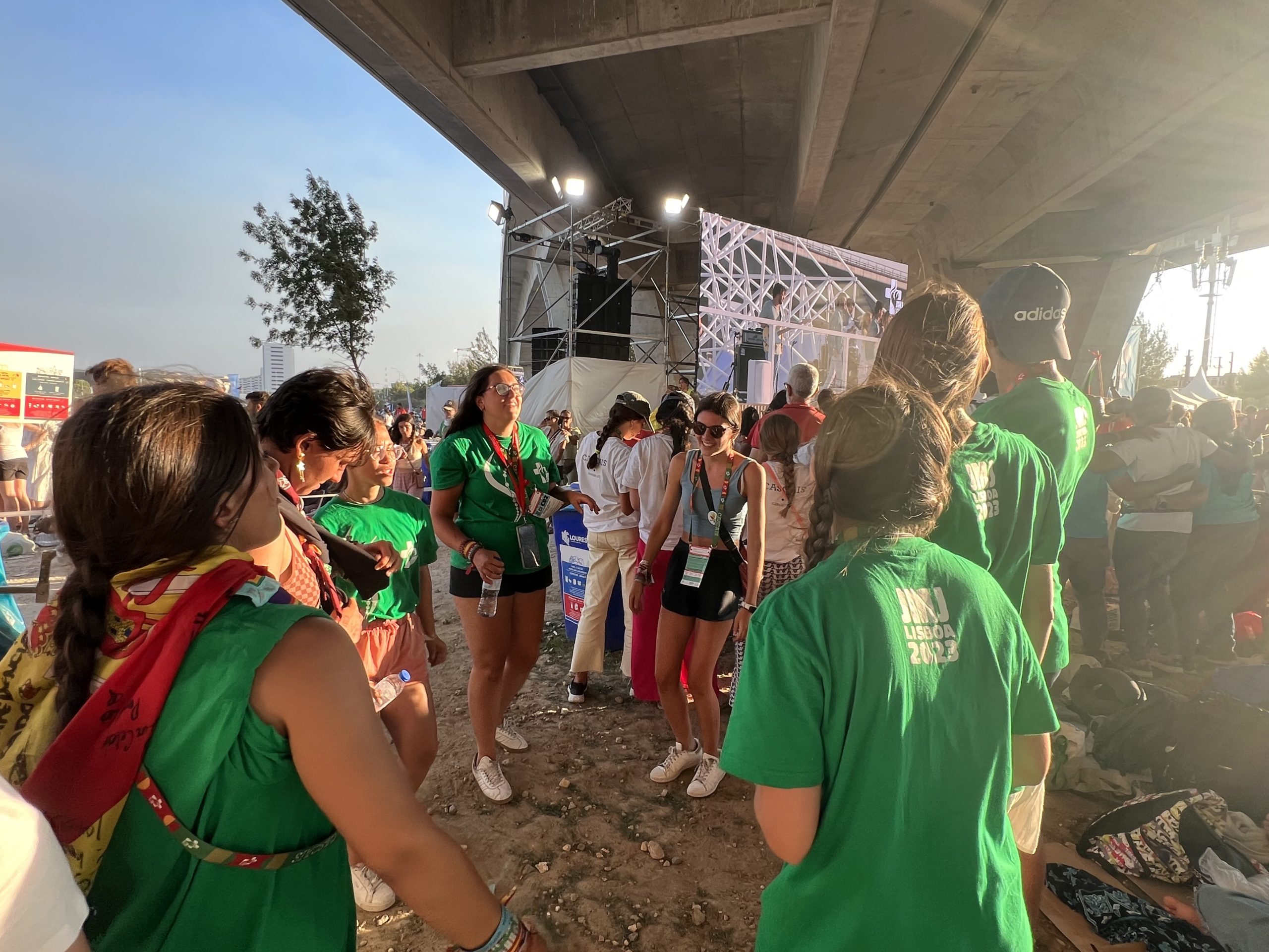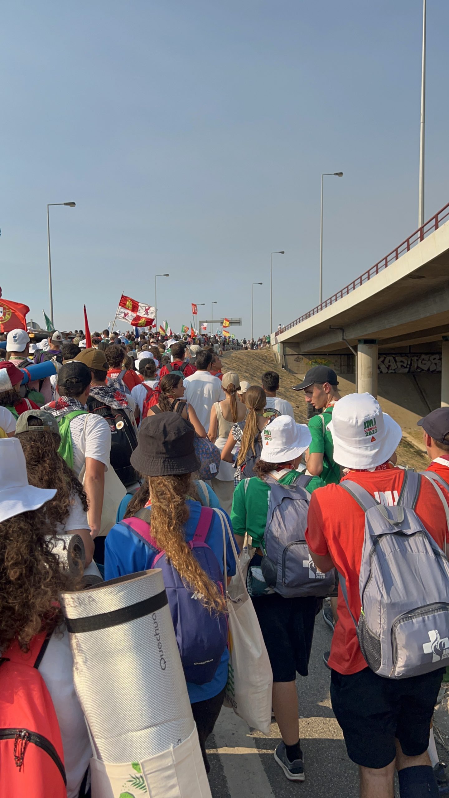 Para los jóvenes de Salamanca, la antesala del final de la Jornada Mundial de la Juventud, que tendría lugar el domingo con la misa de envío, fue en una de las zonas más humildes del parque do Tejo (Campo de Graça), en el sector C02, muy lejos del altar, a un par de kilómetro de él, o quizás más. Rodeados de tierra, y polvo, debajo de los puentes de una gran autovía, en las periferias que tanto nombra el papa, y donde deben de acudir los cristianos.