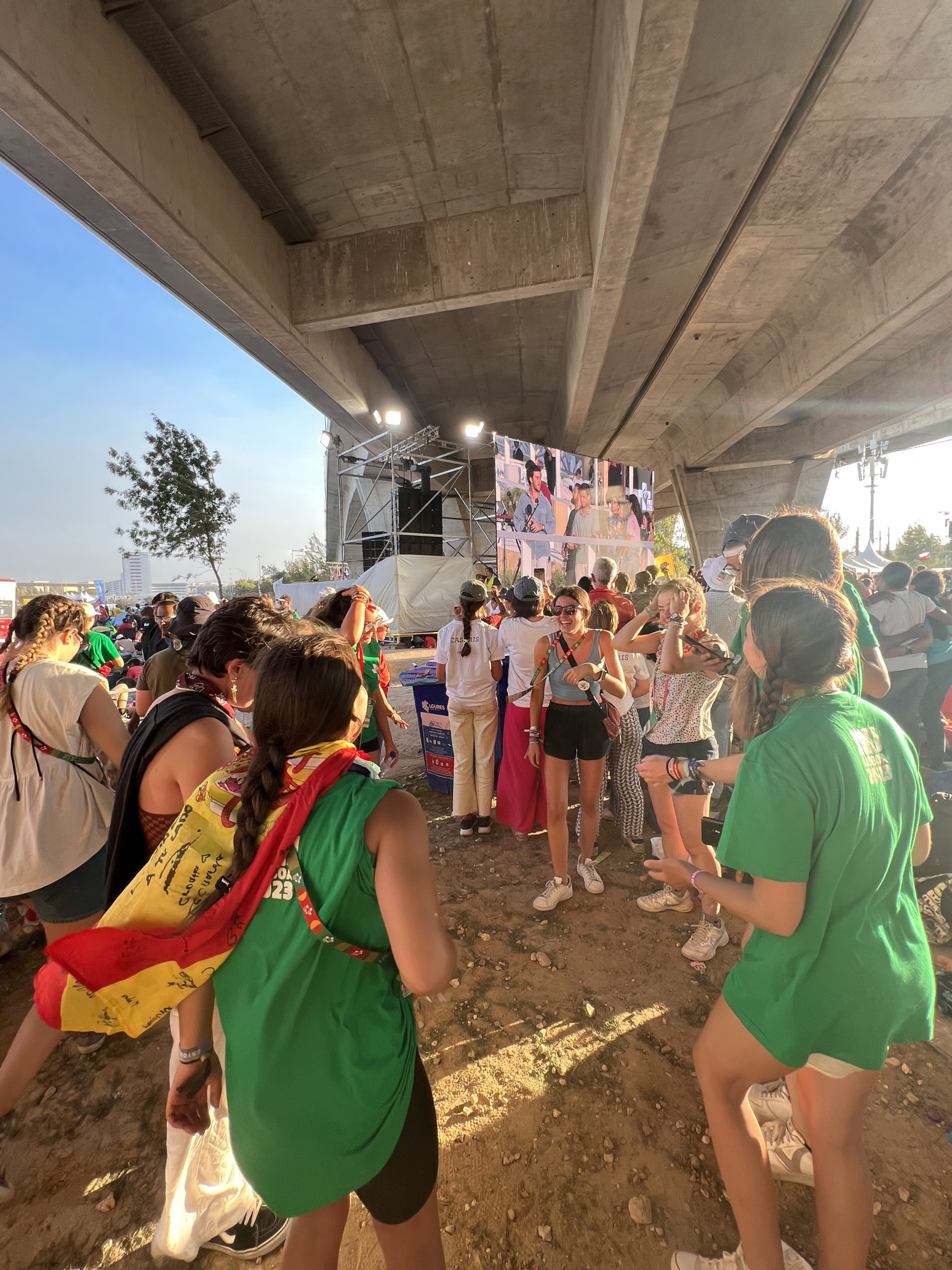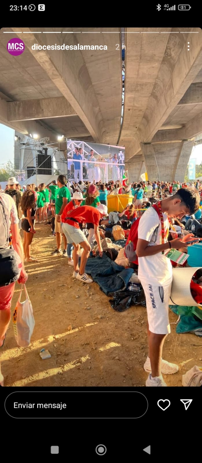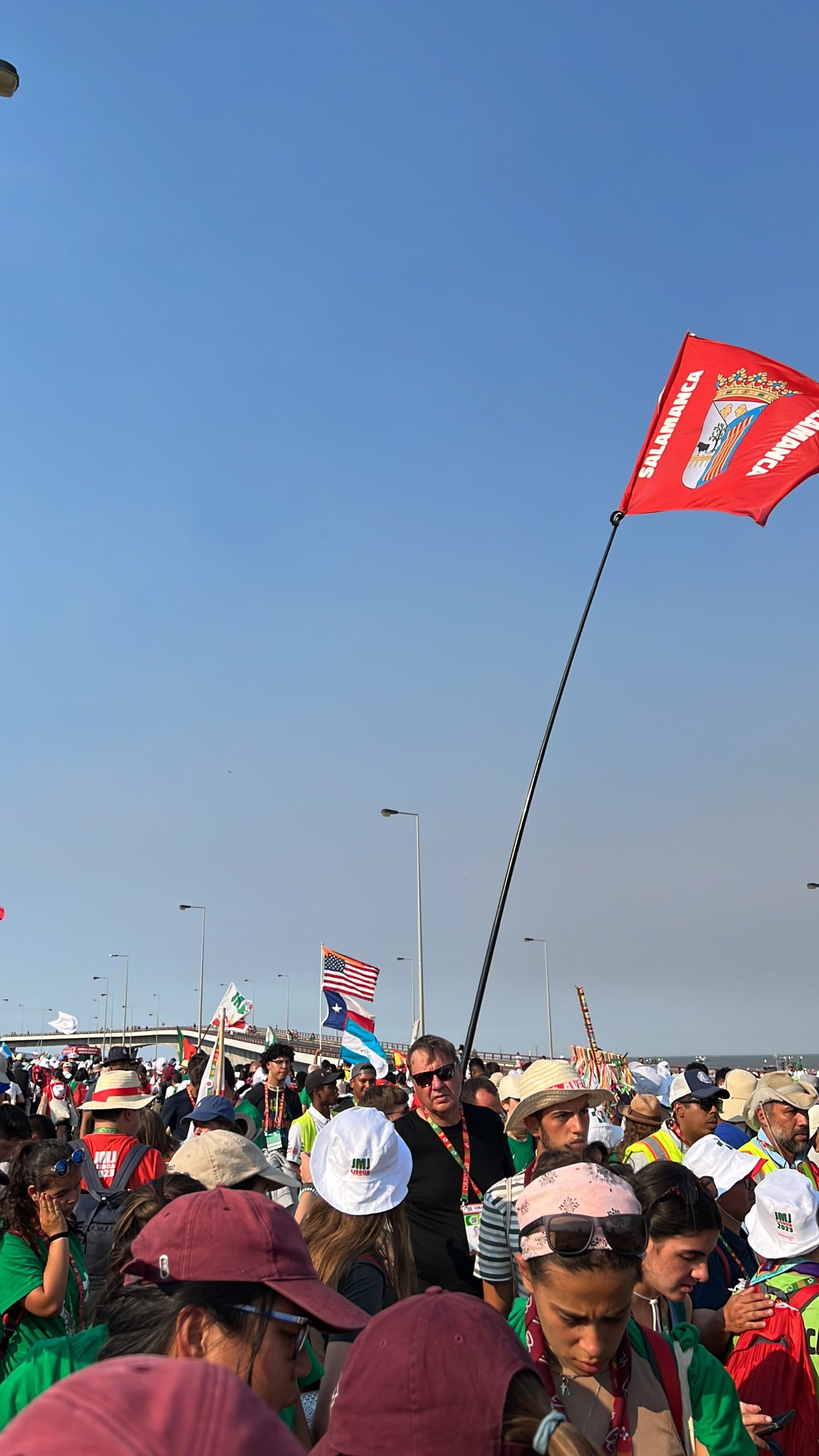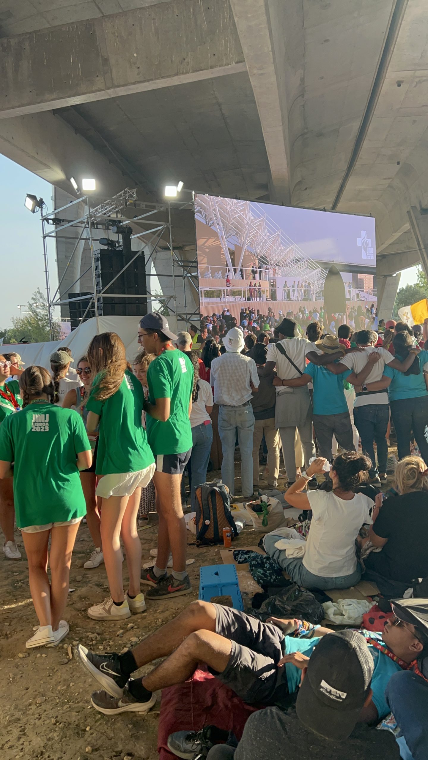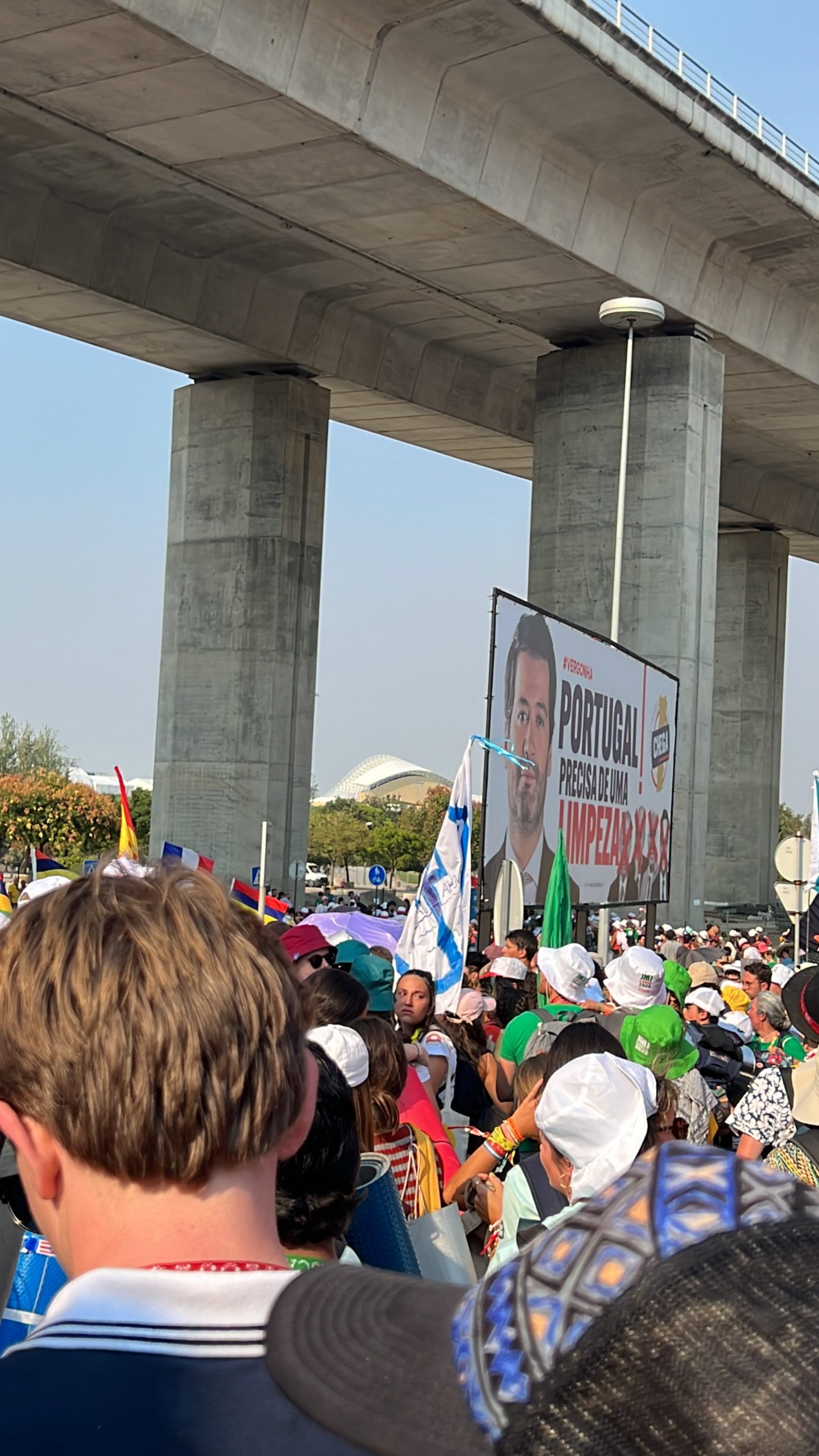 Para los jóvenes de Salamanca, la antesala del final de la Jornada Mundial de la Juventud, que tendría lugar el domingo con la misa de envío, fue en una de las zonas más humildes del parque do Tejo (Campo de Graça), en el sector C02, muy lejos del altar, a un par de kilómetro de él, o quizás más. Rodeados de tierra, y polvo, debajo de los puentes de una gran autovía, en las periferias que tanto nombra el papa, y donde deben de acudir los cristianos.