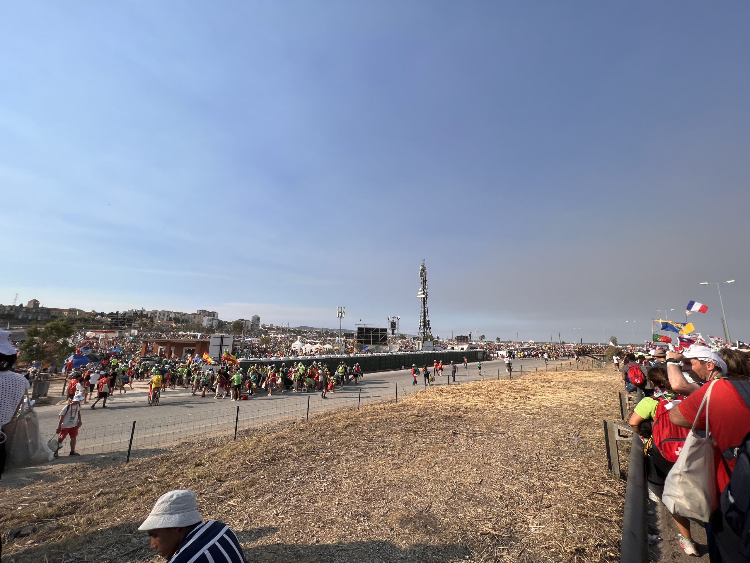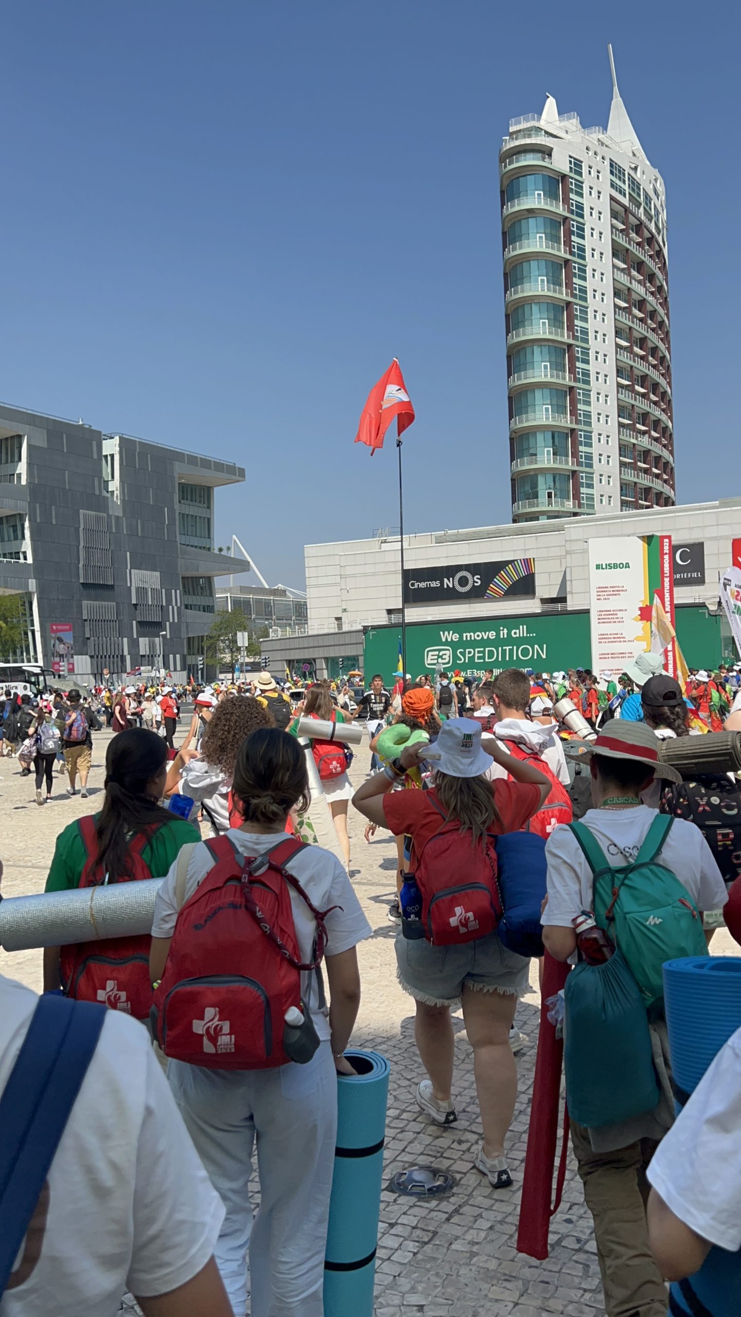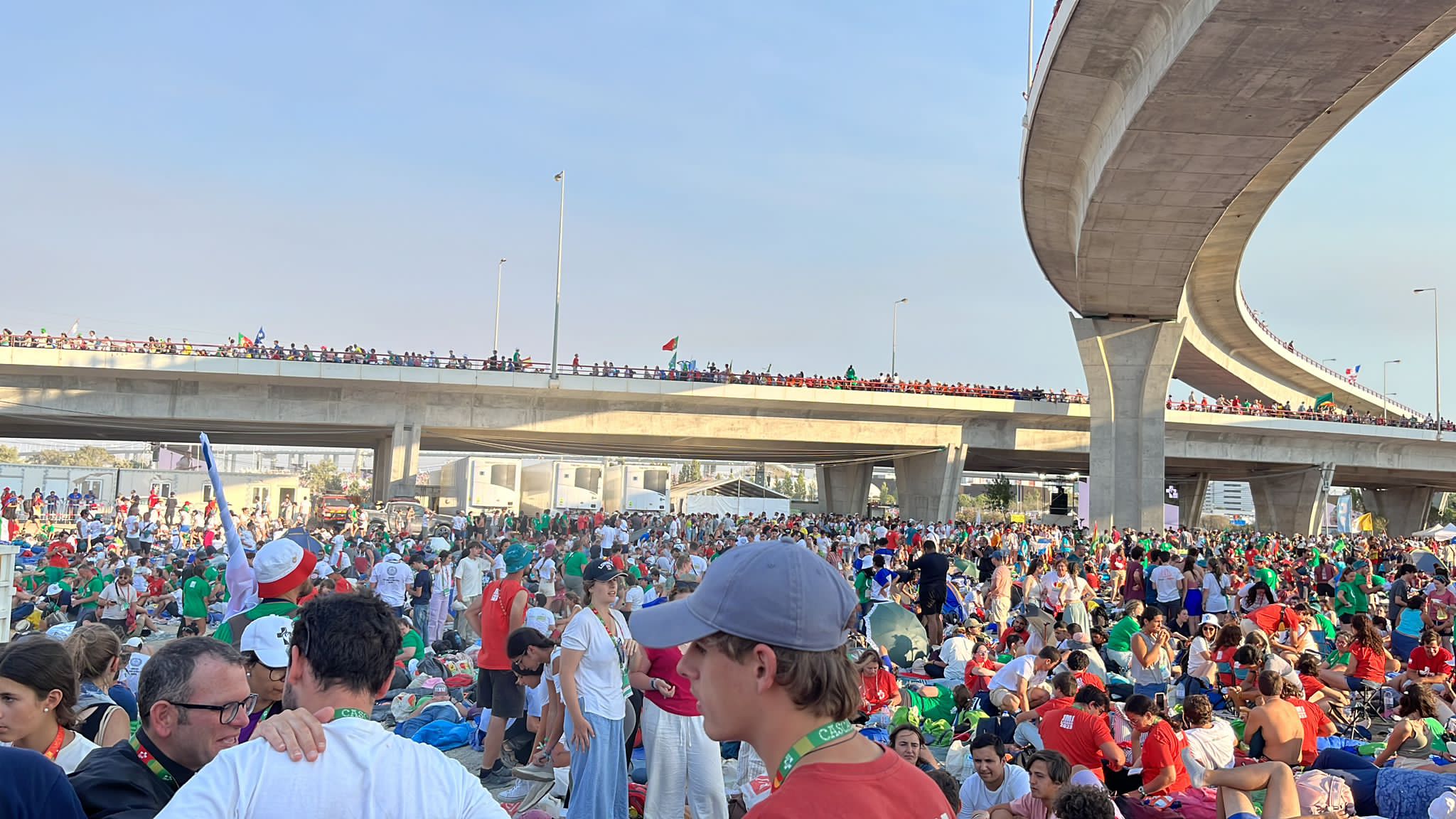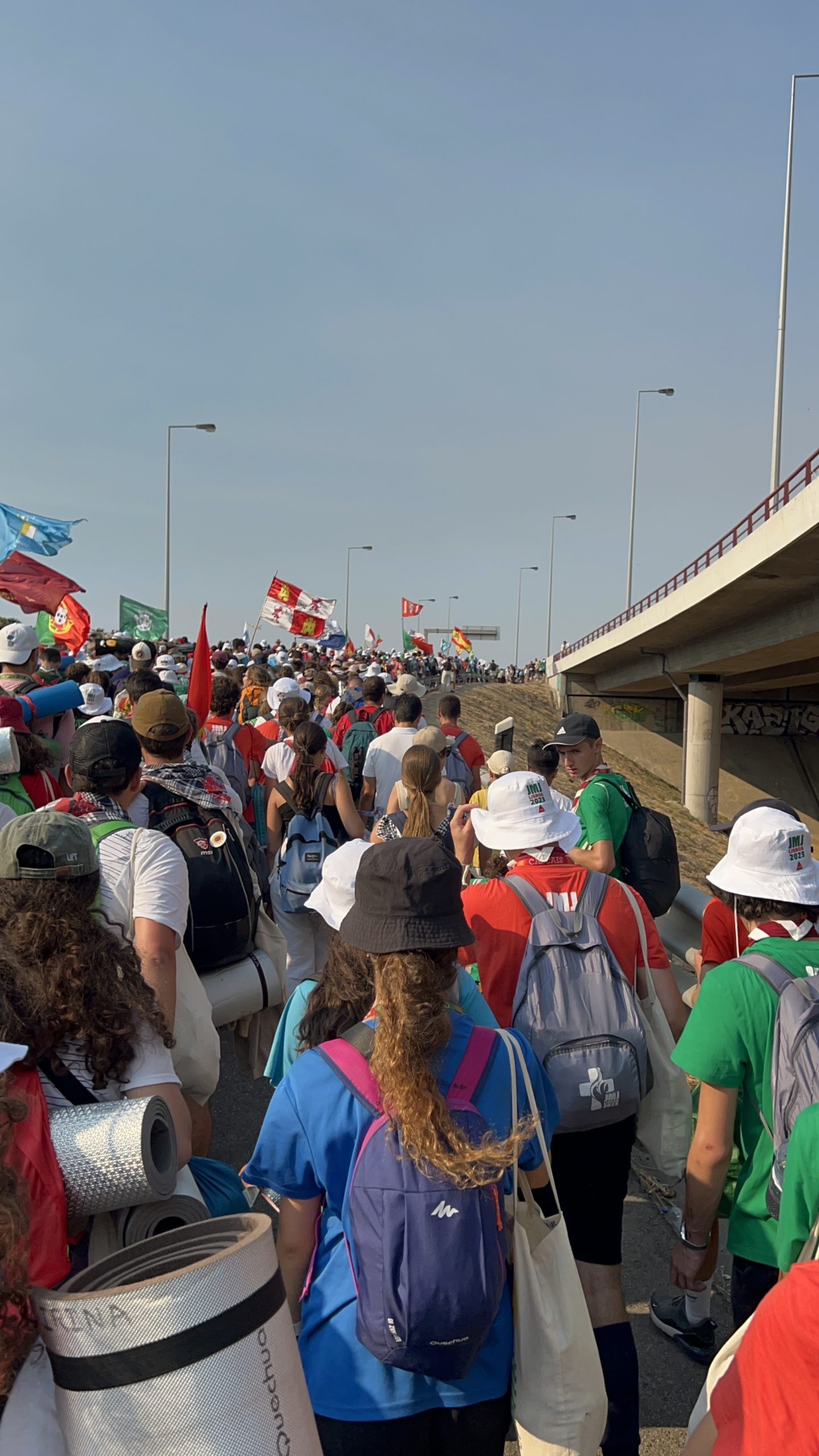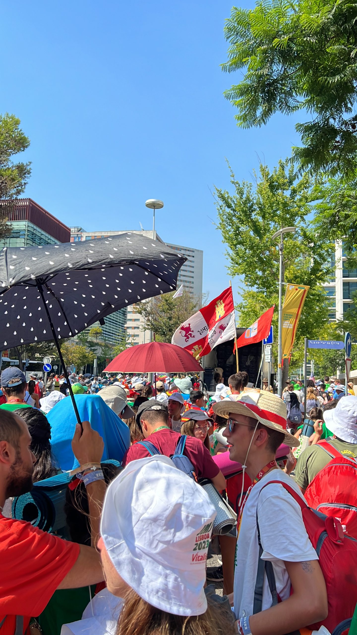 Para los jóvenes de Salamanca, la antesala del final de la Jornada Mundial de la Juventud, que tendría lugar el domingo con la misa de envío, fue en una de las zonas más humildes del parque do Tejo (Campo de Graça), en el sector C02, muy lejos del altar, a un par de kilómetro de él, o quizás más. Rodeados de tierra, y polvo, debajo de los puentes de una gran autovía, en las periferias que tanto nombra el papa, y donde deben de acudir los cristianos.