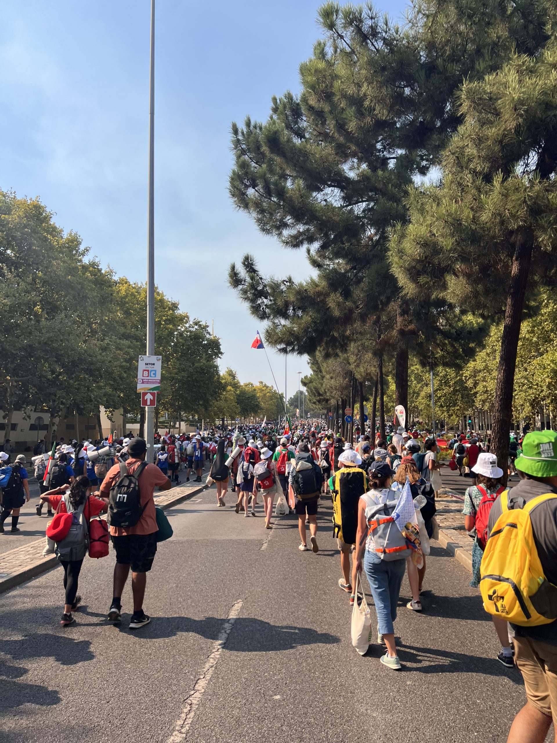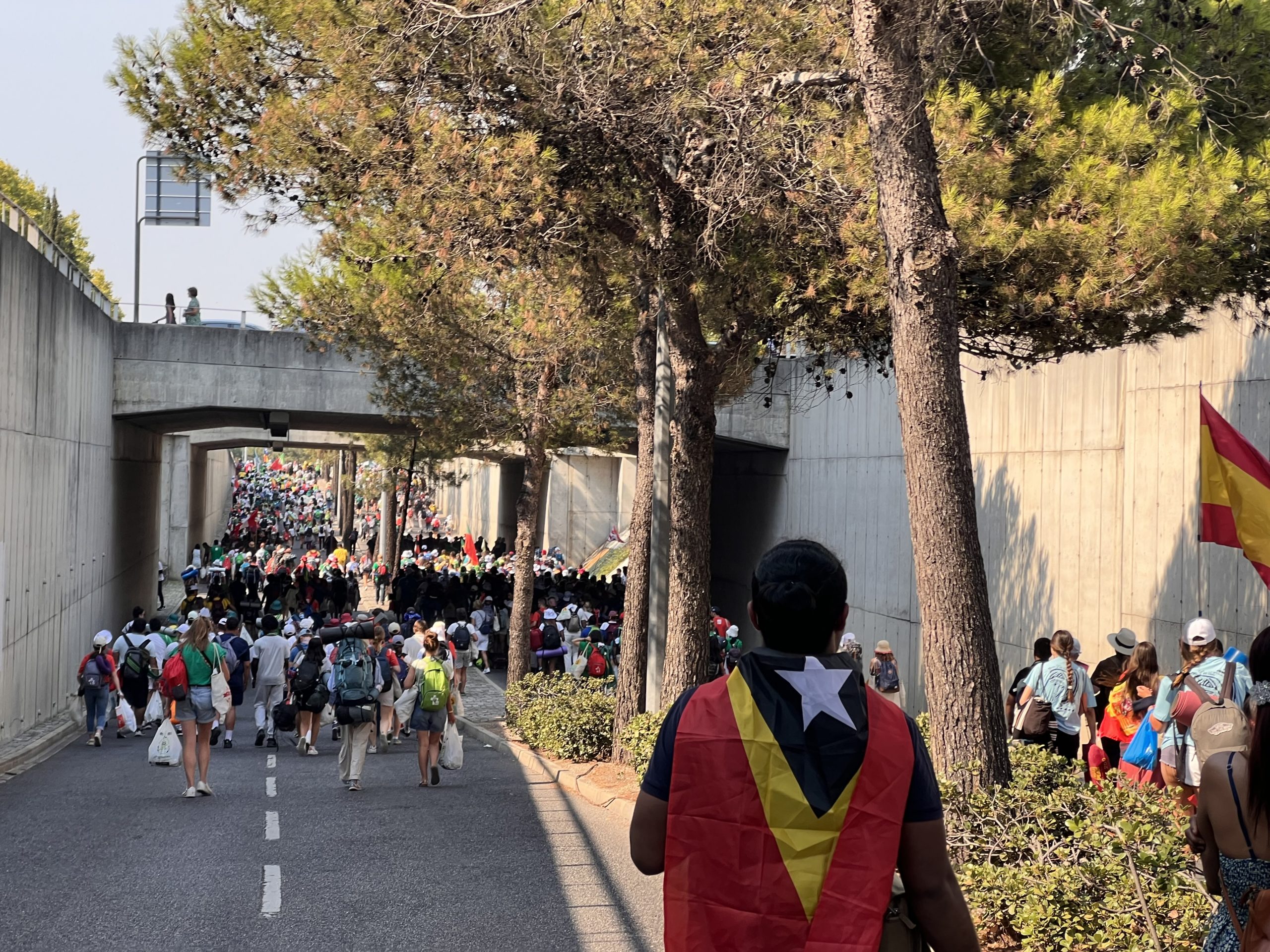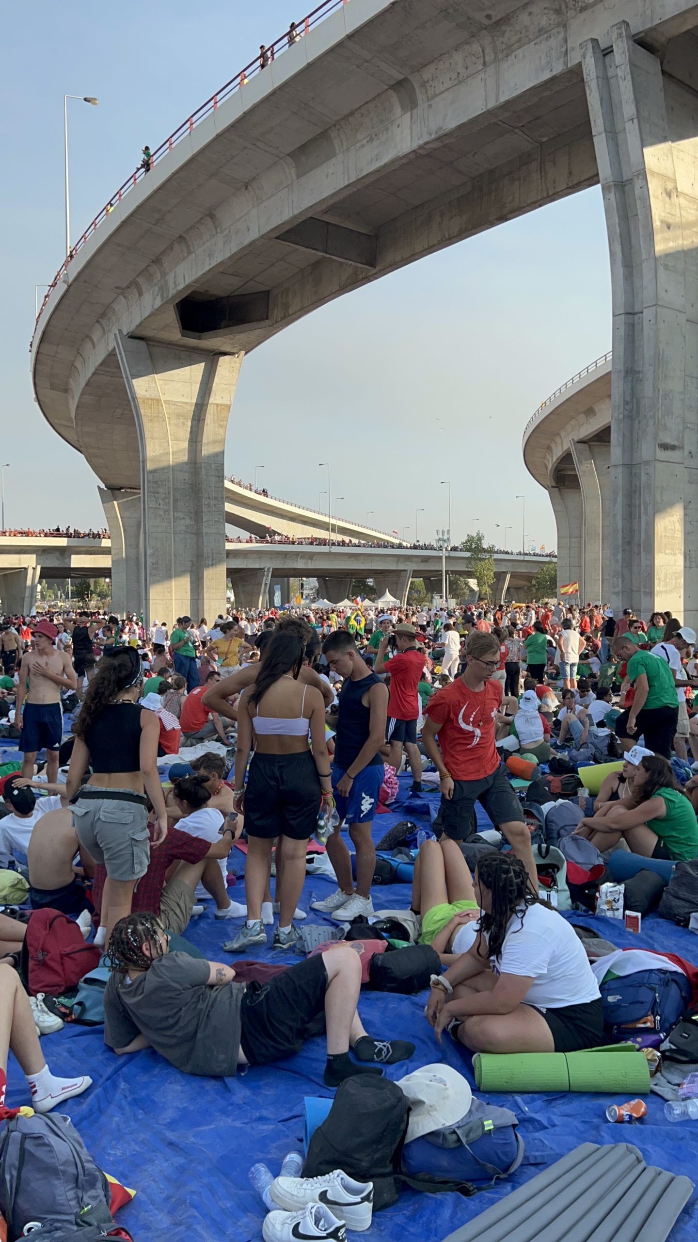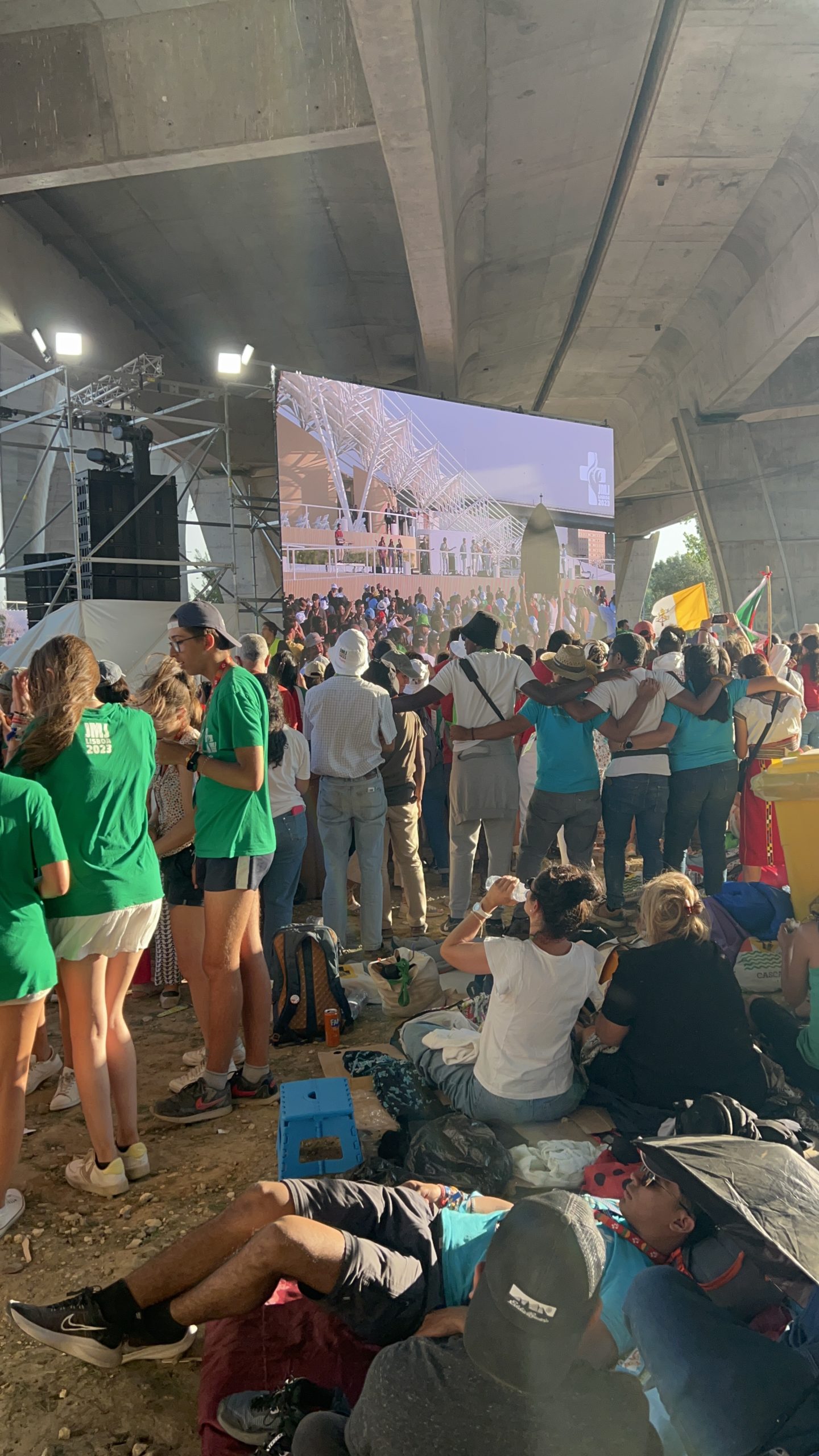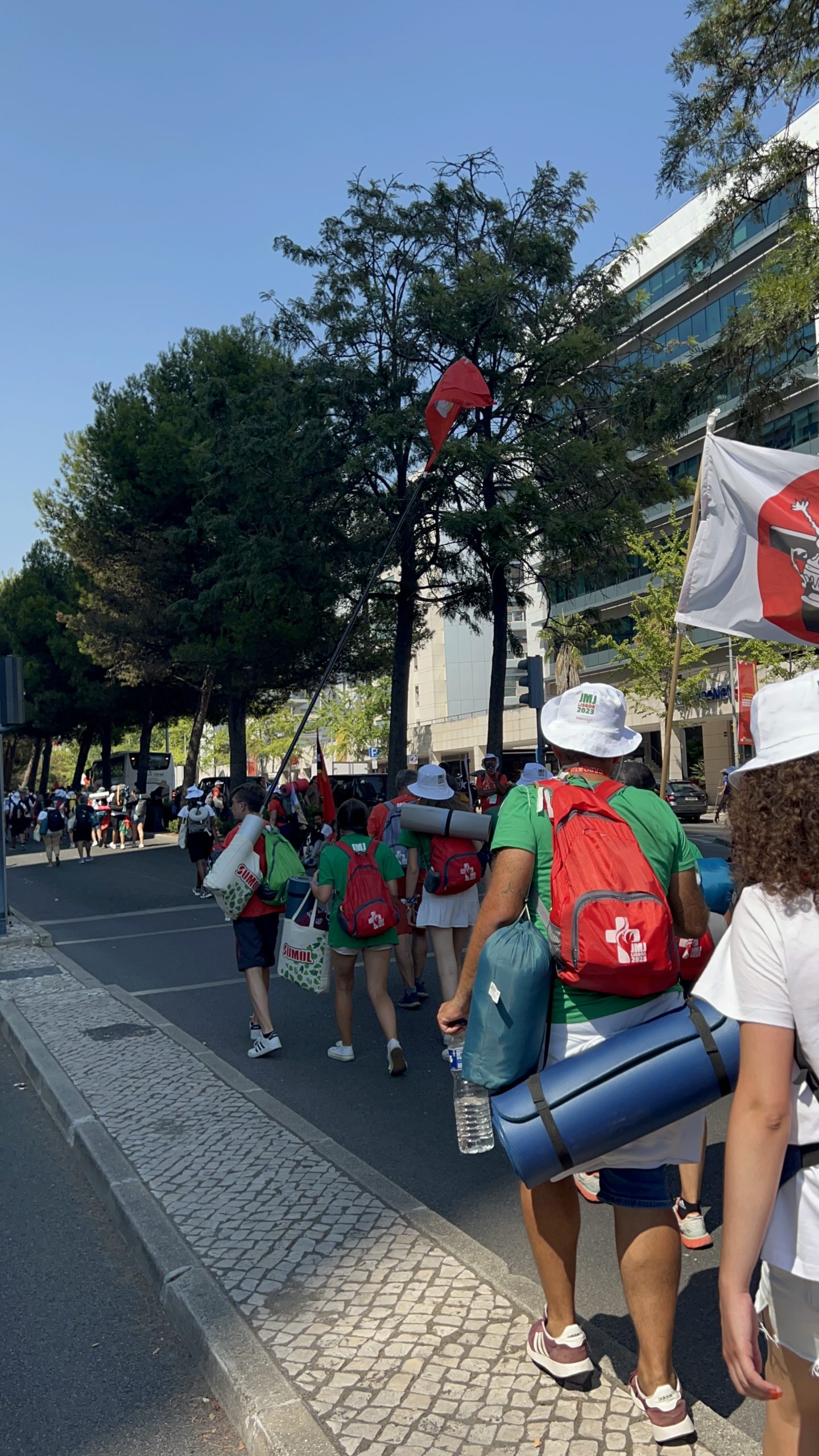 Para los jóvenes de Salamanca, la antesala del final de la Jornada Mundial de la Juventud, que tendría lugar el domingo con la misa de envío, fue en una de las zonas más humildes del parque do Tejo (Campo de Graça), en el sector C02, muy lejos del altar, a un par de kilómetro de él, o quizás más. Rodeados de tierra, y polvo, debajo de los puentes de una gran autovía, en las periferias que tanto nombra el papa, y donde deben de acudir los cristianos.
