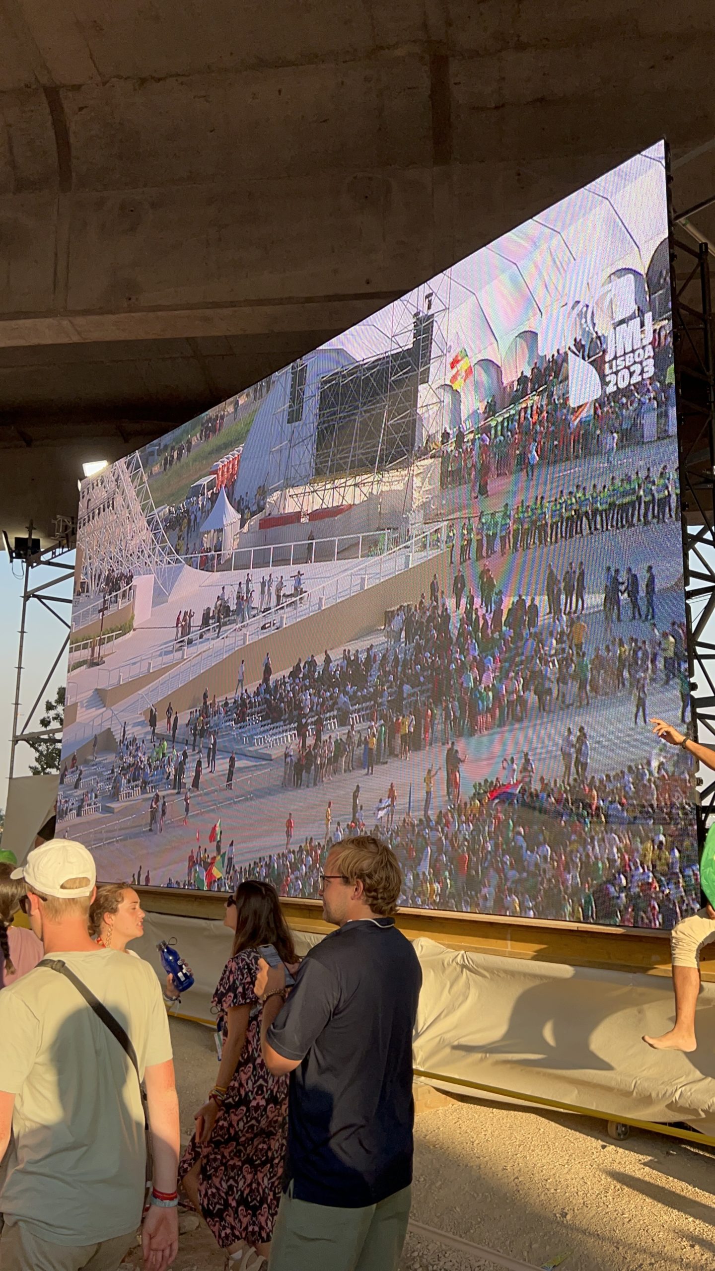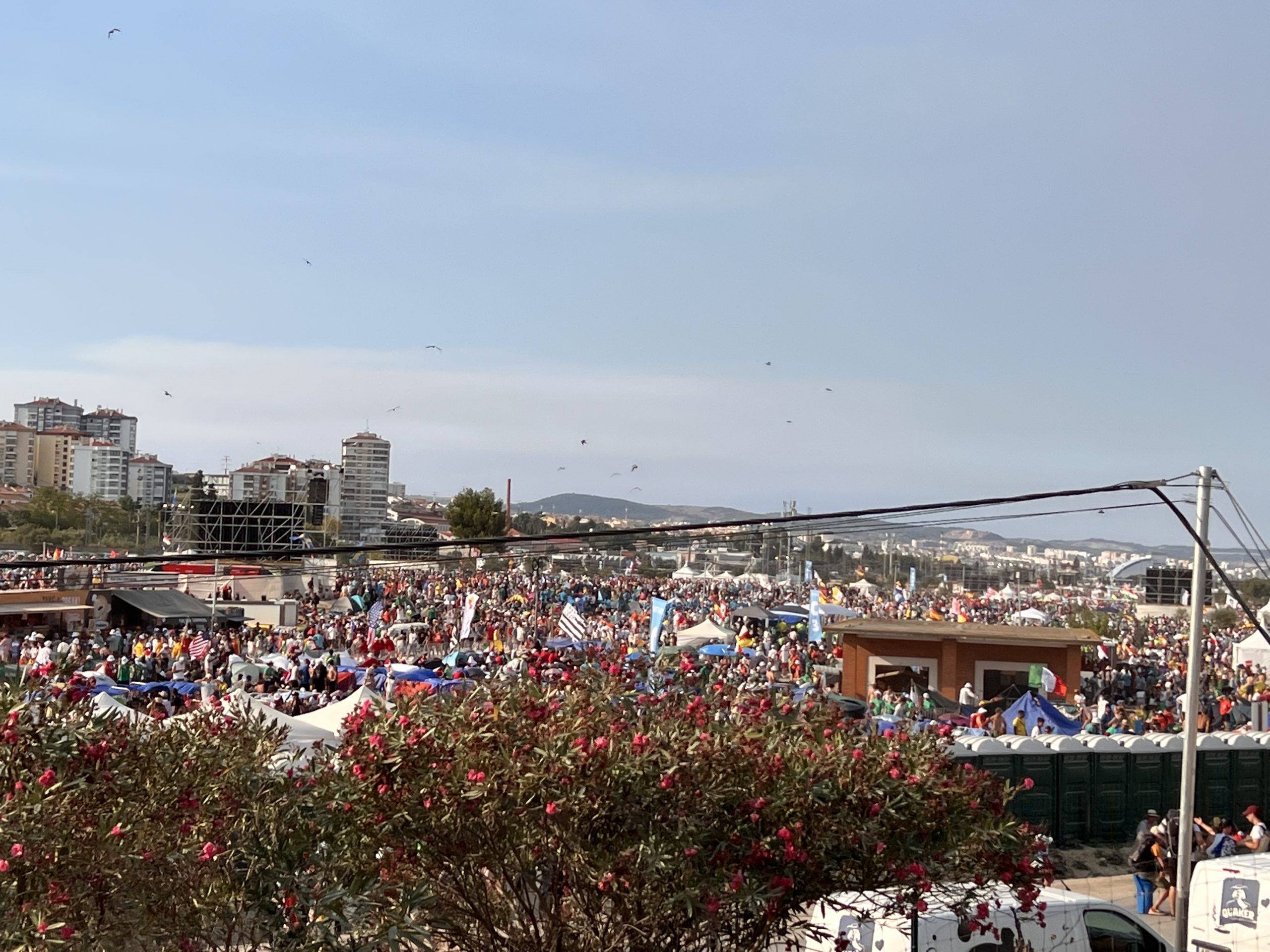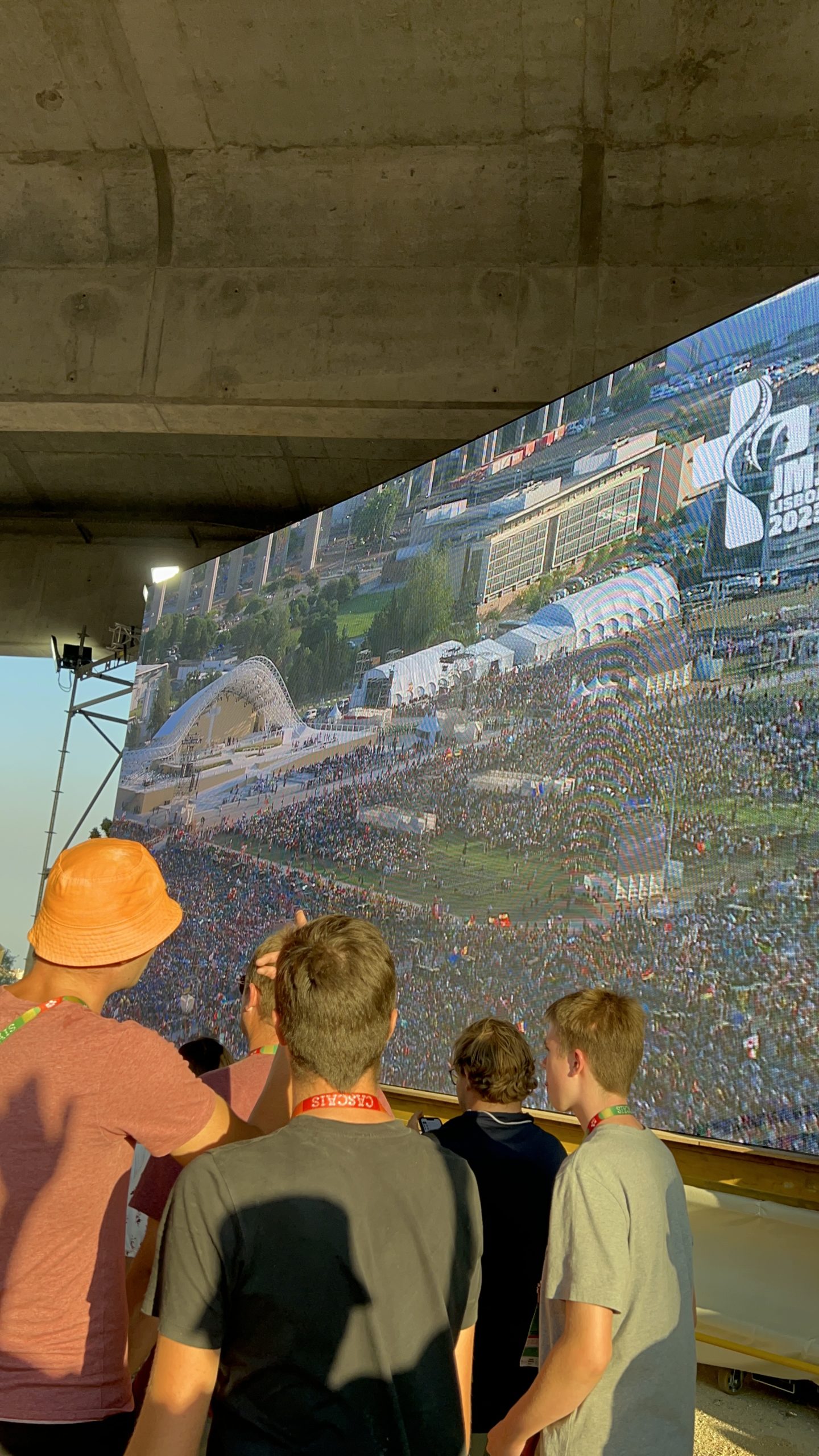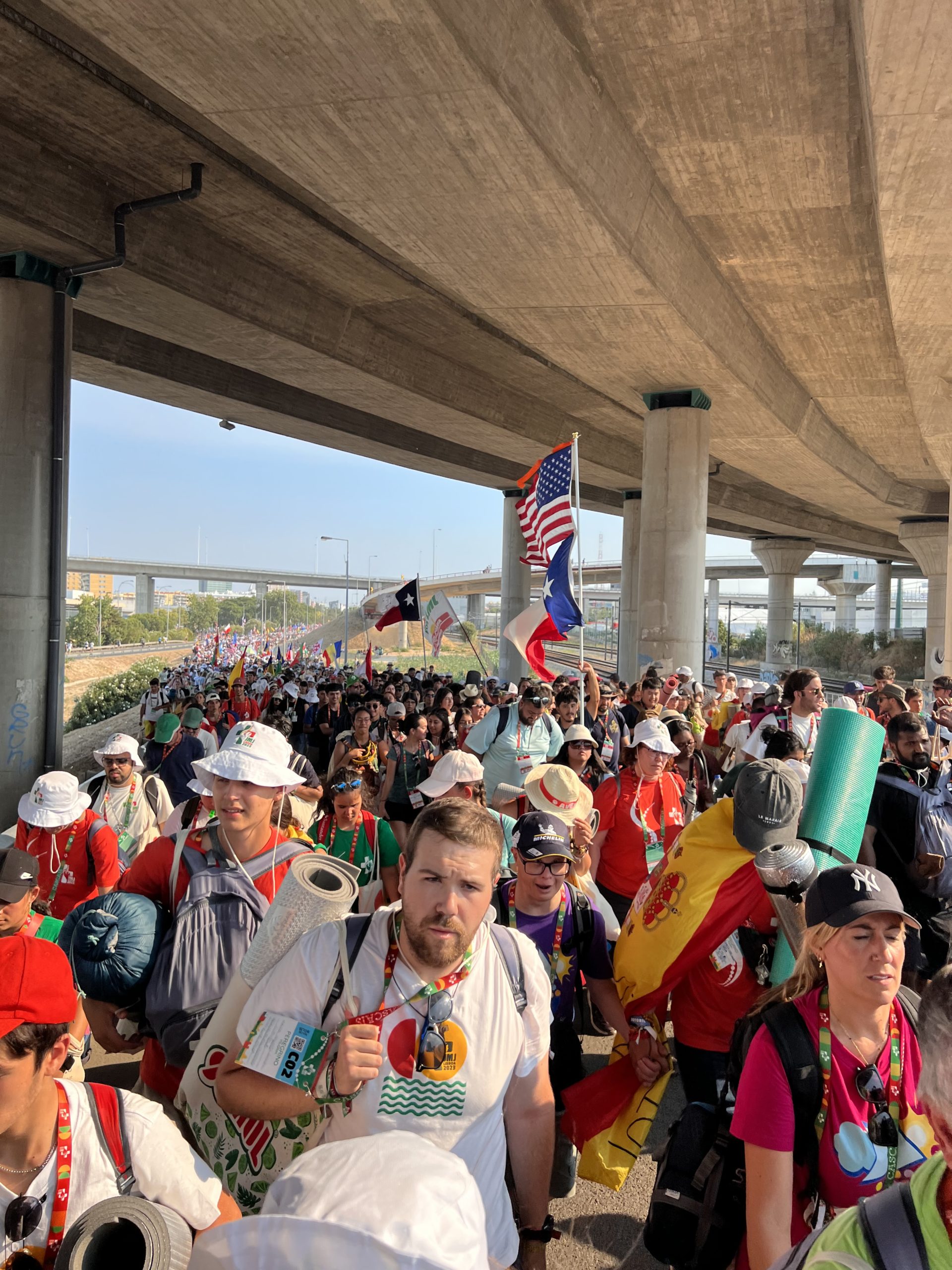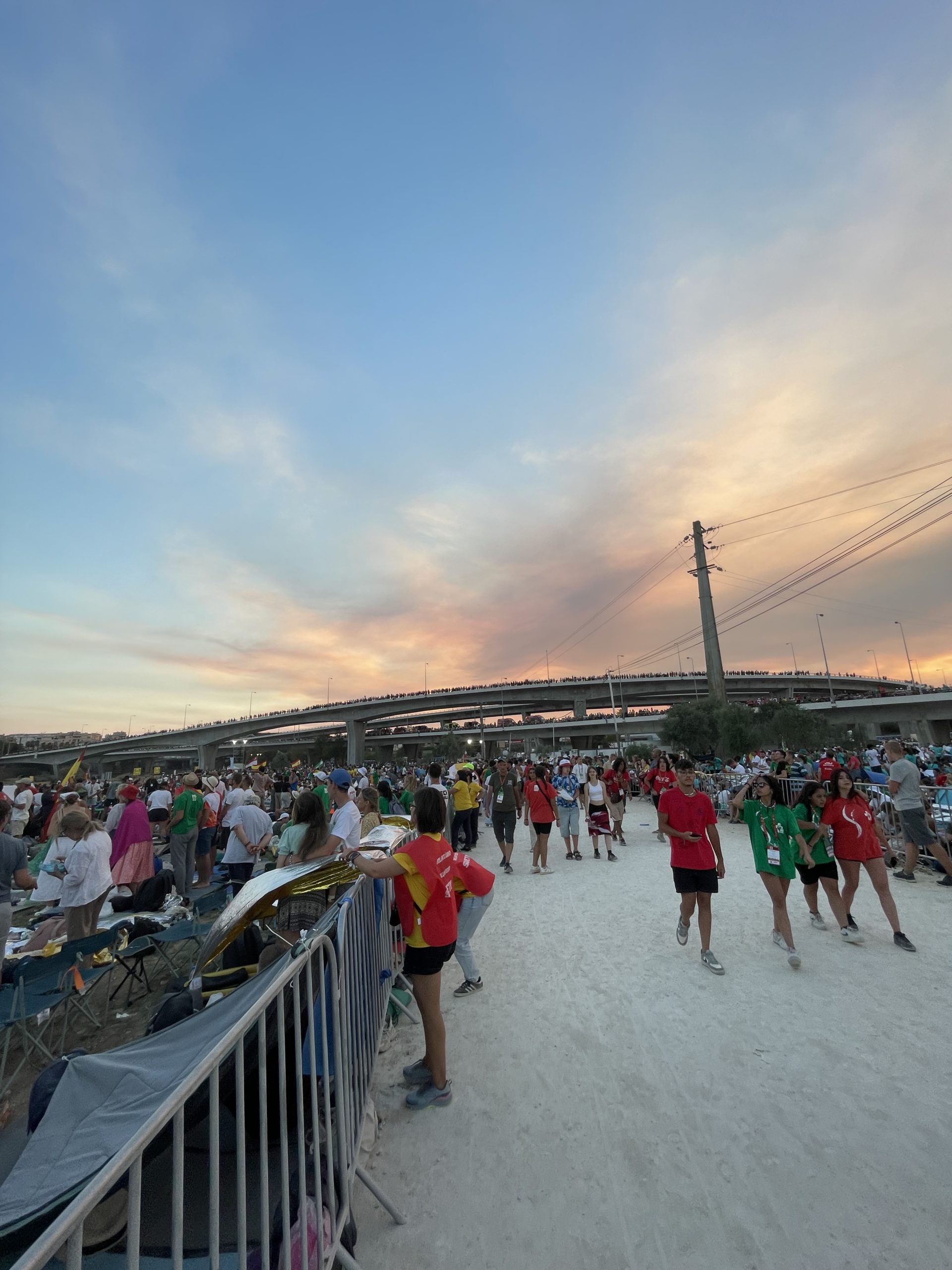 Para los jóvenes de Salamanca, la antesala del final de la Jornada Mundial de la Juventud, que tendría lugar el domingo con la misa de envío, fue en una de las zonas más humildes del parque do Tejo (Campo de Graça), en el sector C02, muy lejos del altar, a un par de kilómetro de él, o quizás más. Rodeados de tierra, y polvo, debajo de los puentes de una gran autovía, en las periferias que tanto nombra el papa, y donde deben de acudir los cristianos.