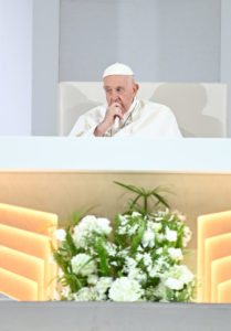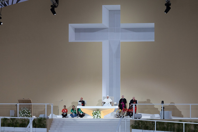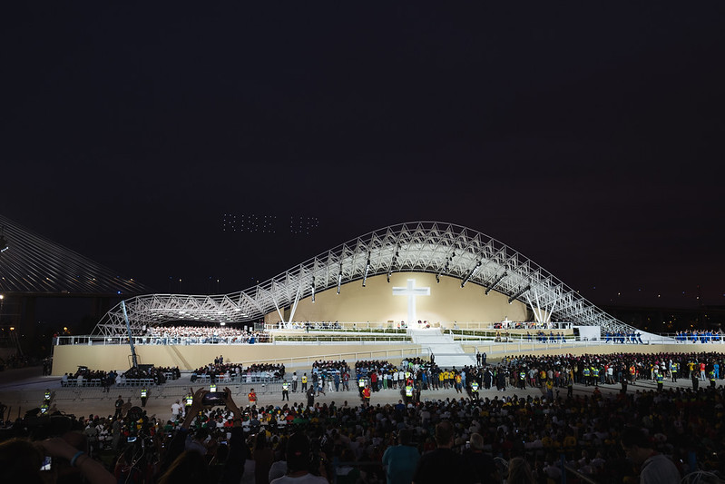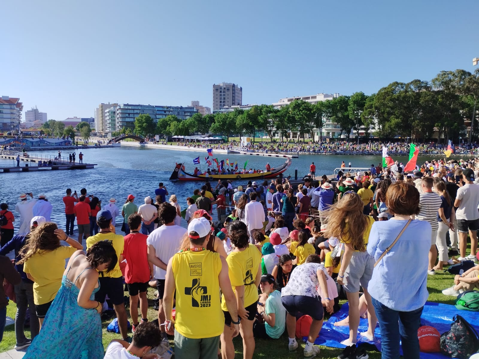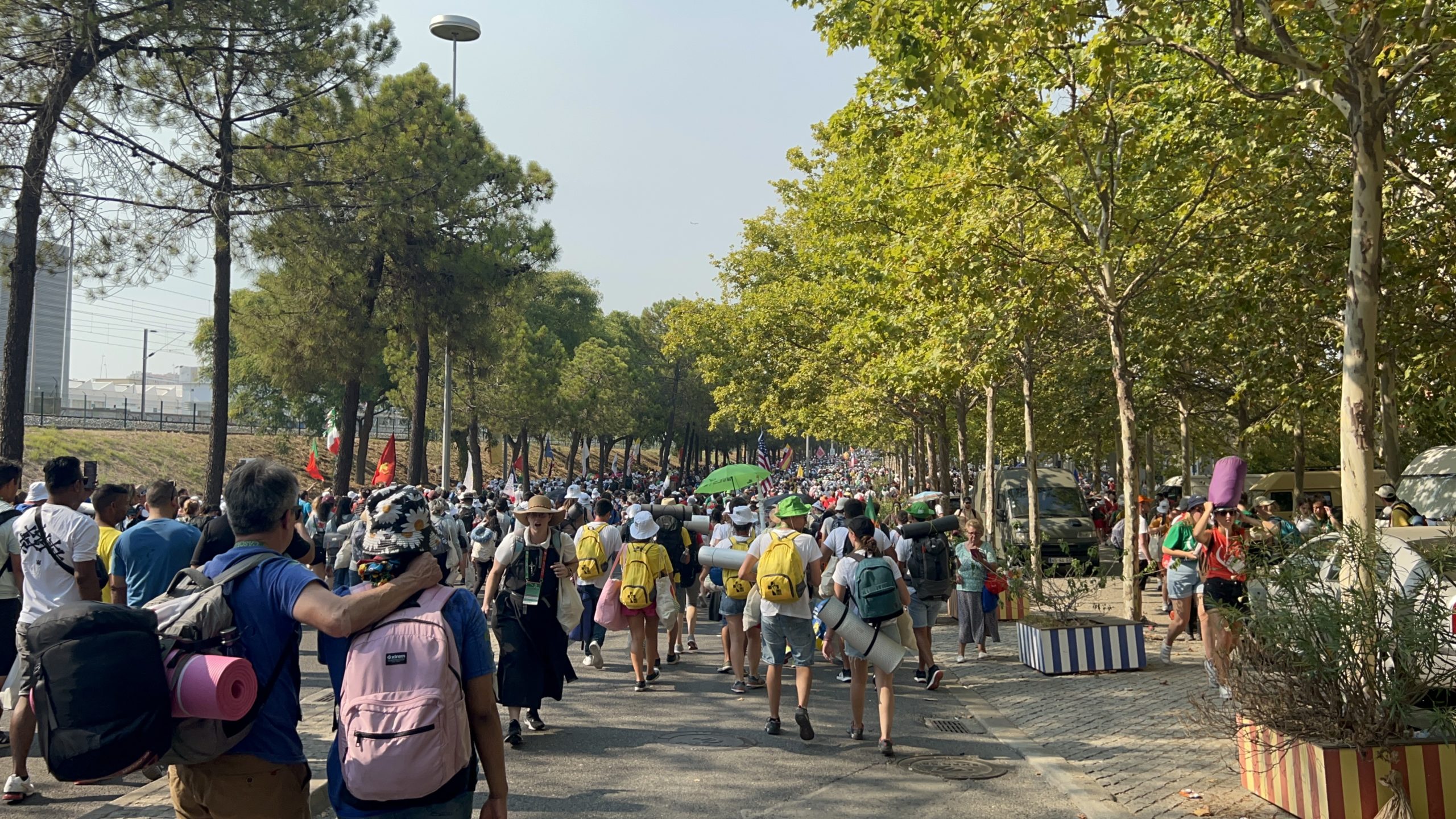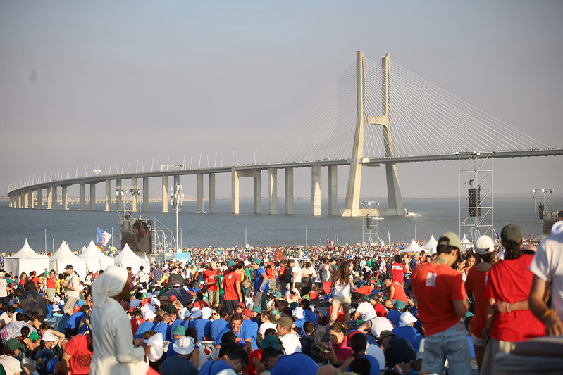 Tras escuchar varios testimonios, el papa Francisco se dirigió a los jóvenes: “Gracias por haber viajado, caminado y por estar aquí. y pienso que la virgen María tuvo que viajar parea ver a Isabel”. Y de nuevo, recordó el relato de María cuando fue a ver a su prima Isabel, lema de esta JMJ de Lisboa.