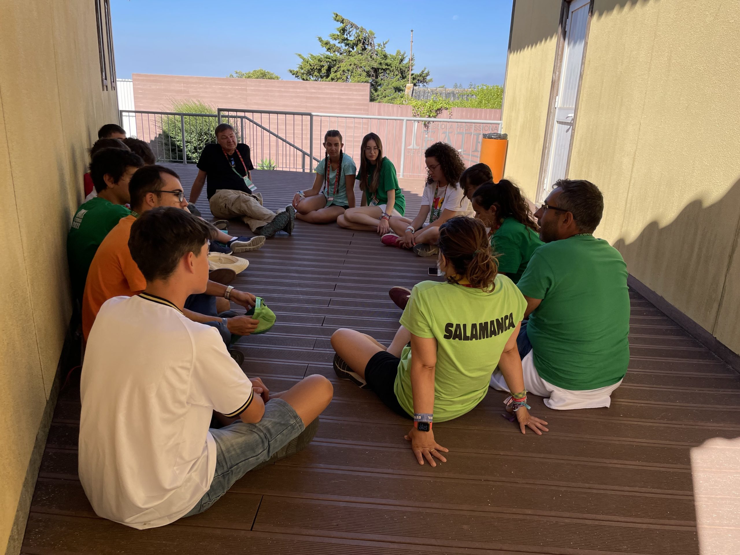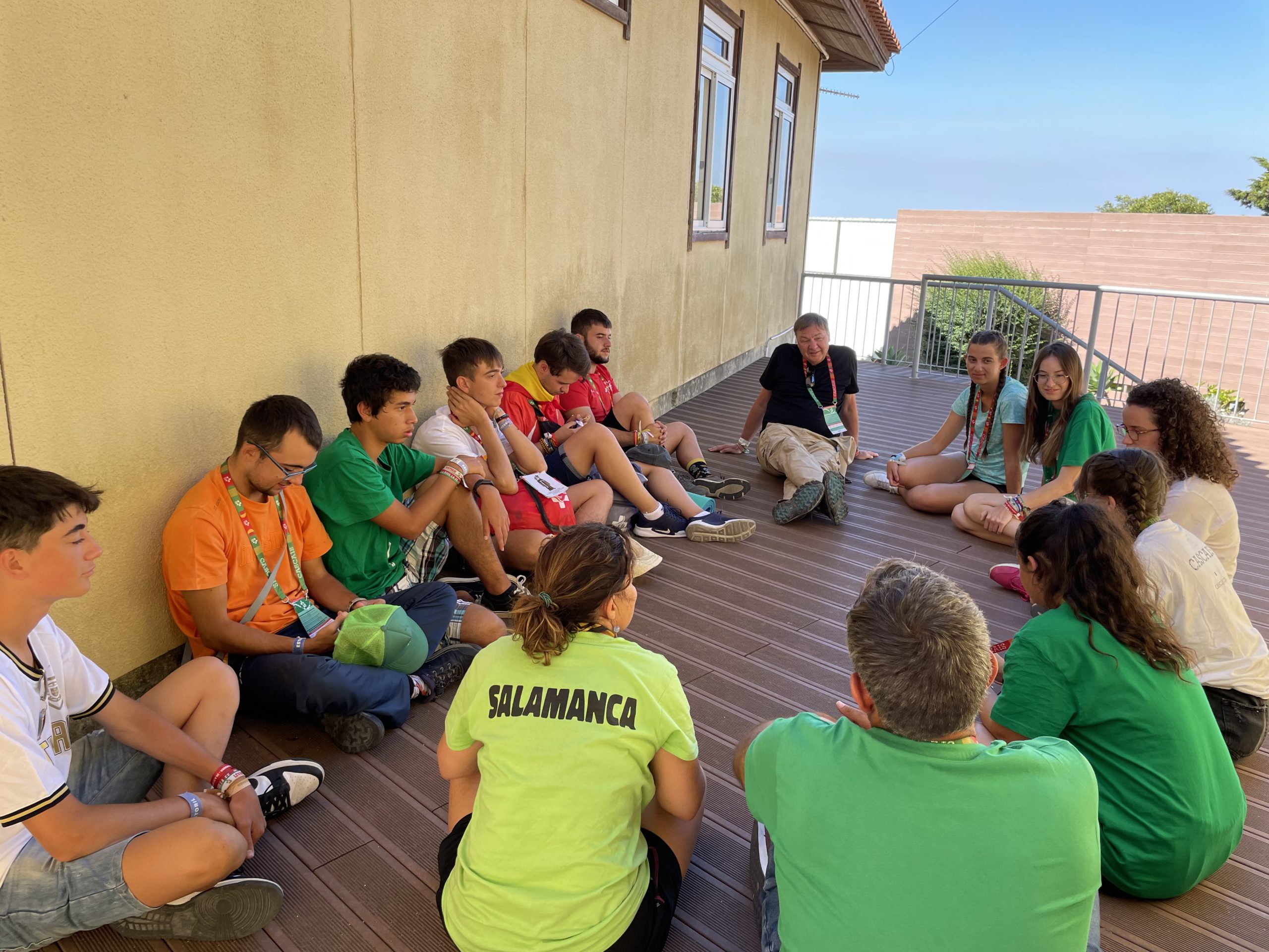 Antes de partir hacia la vigilia de Lisboa, los jóvenes salmantinos realizaron una actividad por grupos en su lugar de pernoctación en Estoril, para hacer balance de lo vivido.