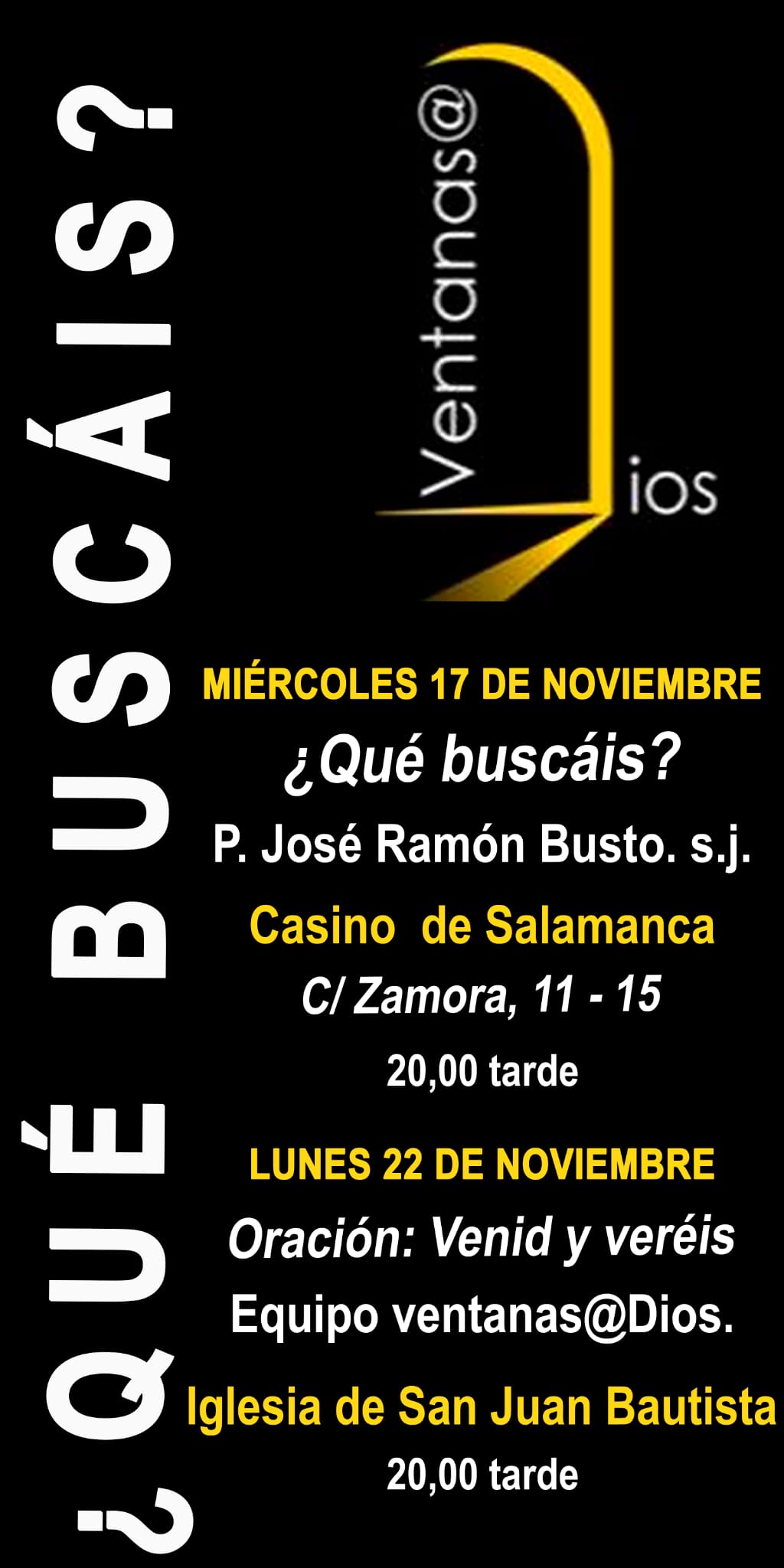 Con esta oración se inauguran las actividades de este espacio de evangelización surgido a raíz de la Asamblea diocesana. Así, el miércoles 17 de noviembre comenzará un ciclo de oración y reflexión dedicado a la pregunta formulada por Jesús a sus primeros discípulos: “¿Qué buscáis?”. El jesuita José Ramón Busto intervendrá ese día con una meditación en torno a esa pregunta que nos interroga también hoy. El acto se va celebrar en el Casino de Salamanca (c/ Zamora, 11-15), a las 20:00 horas.