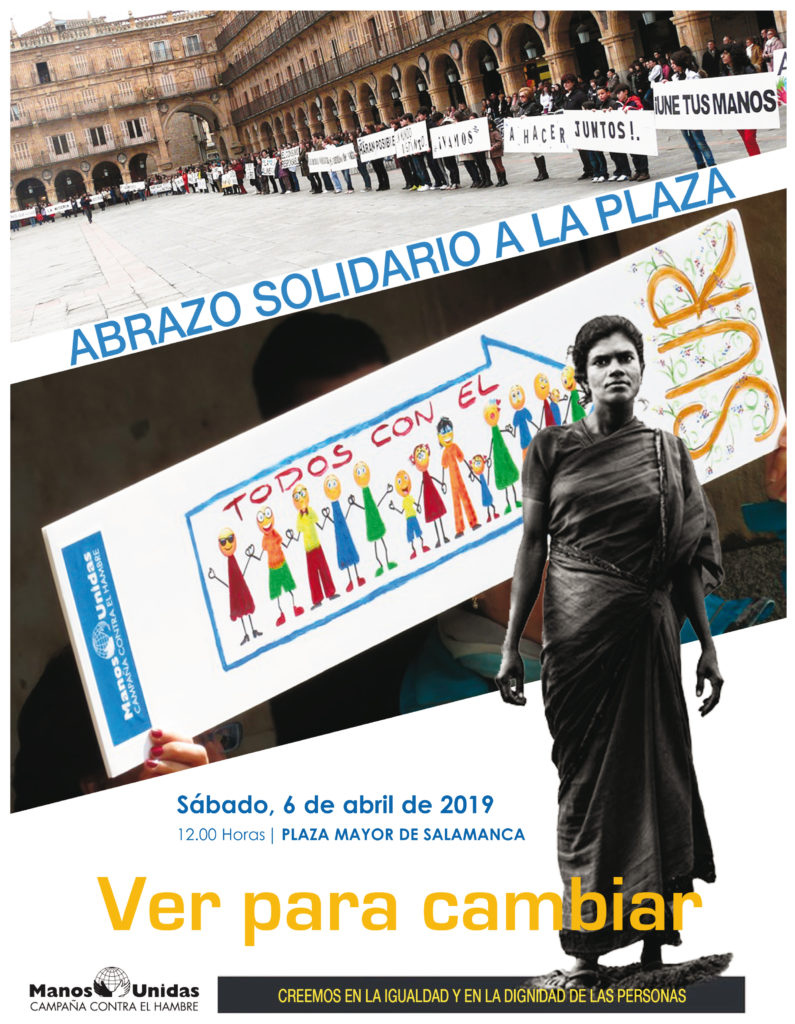 Venid todos con Manos Unidas a la Plaza Mayor de Salamanca a darnos un abrazo universal significando que vemos y lo vamos a demostrar.
