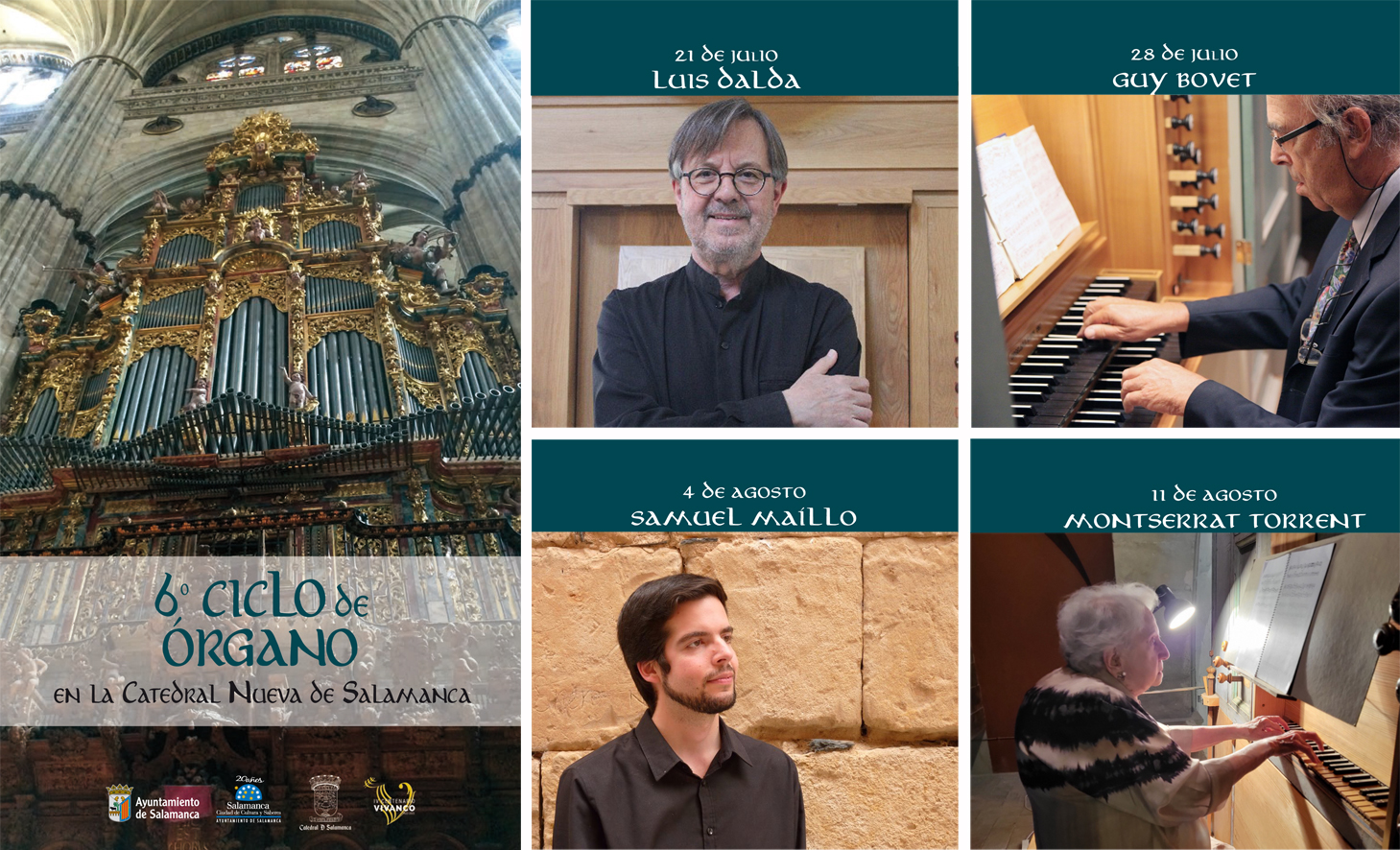 El Ayuntamiento de Salamanca, en colaboración con el Cabildo catedralicio, organiza, por sexto año consecutivo, un ciclo de órgano que contempla cuatro conciertos en la Catedral de Salamanca, los jueves 21 y 24 de julio; 4 y 11 de agosto, a las ocho de la tarde. La entrada a todos ellos es libre hasta completar el aforo.