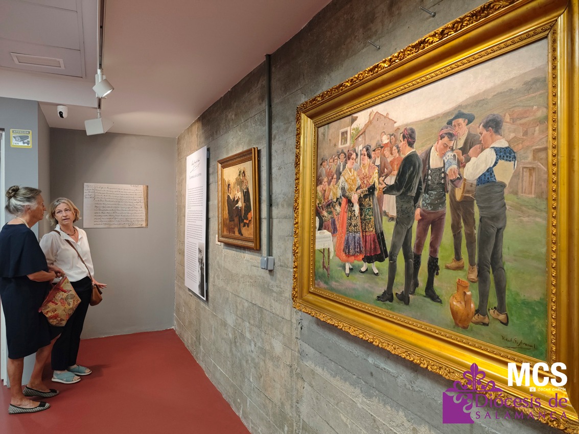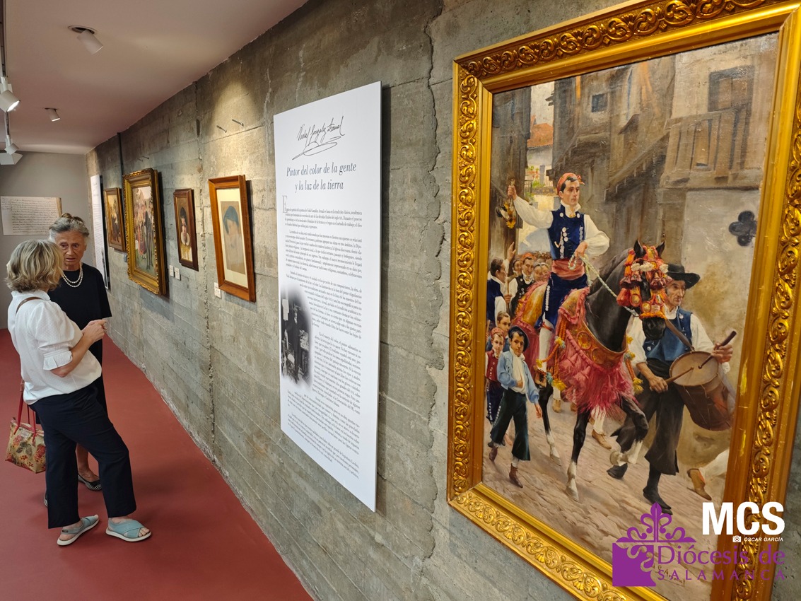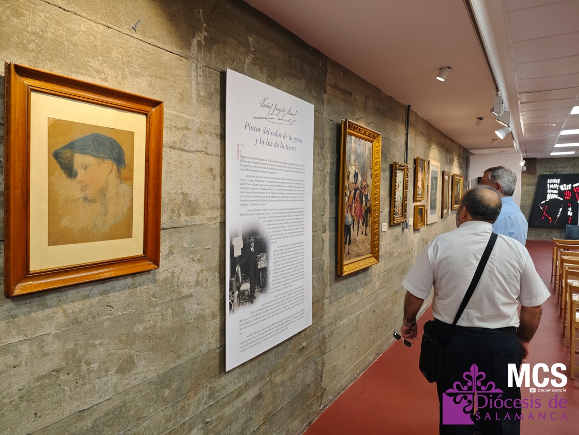 En ella, se exhiben obras procedentes tanto de los fondos de la Diócesis de Salamanca como de la colección familiar del artista en Madrid, incluyendo “bocetos pictóricos o dibujísticos” originales de algunas de sus creaciones más conocidas. La exposición está articulada cronológicamente, comenzando con su partida de bautismo, que también se expone, “aspectos de su vida, los orígenes del campo charro”, y continúa con obras religiosas, escenas y retratos sobre la gente y sus costumbres. Se incluyen también dos bocetos originales del retablo de la iglesia de San Nicolás de Bari, de su pueblo natal, Vitigudino.