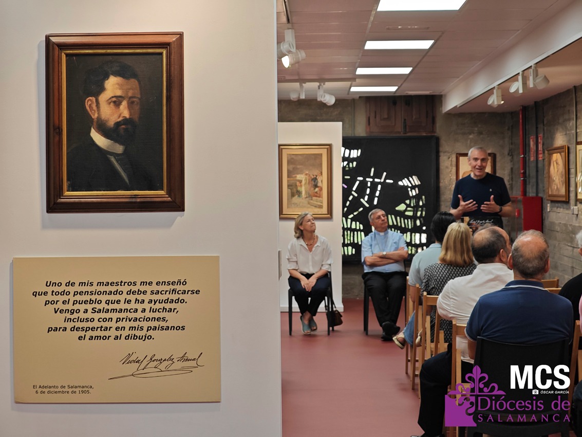 En esa misma línea, recordó cómo el artista se implicó en el proyecto de renovación social inspirado por el obispo de Salamanca, P. Tomás Jenaro de Cámara, y la encíclica Rerum Novarum del papa León XIII, que planteaba cuestiones tan actuales como “¿qué es más importante, el trabajo o el capital? ¿lo privado o el bien común?”. Para Tomás Gil, su decisión de volver a Salamanca, dejando atrás su proyección artística, fue una clara apuesta por el compromiso y por el bien de su tierra.