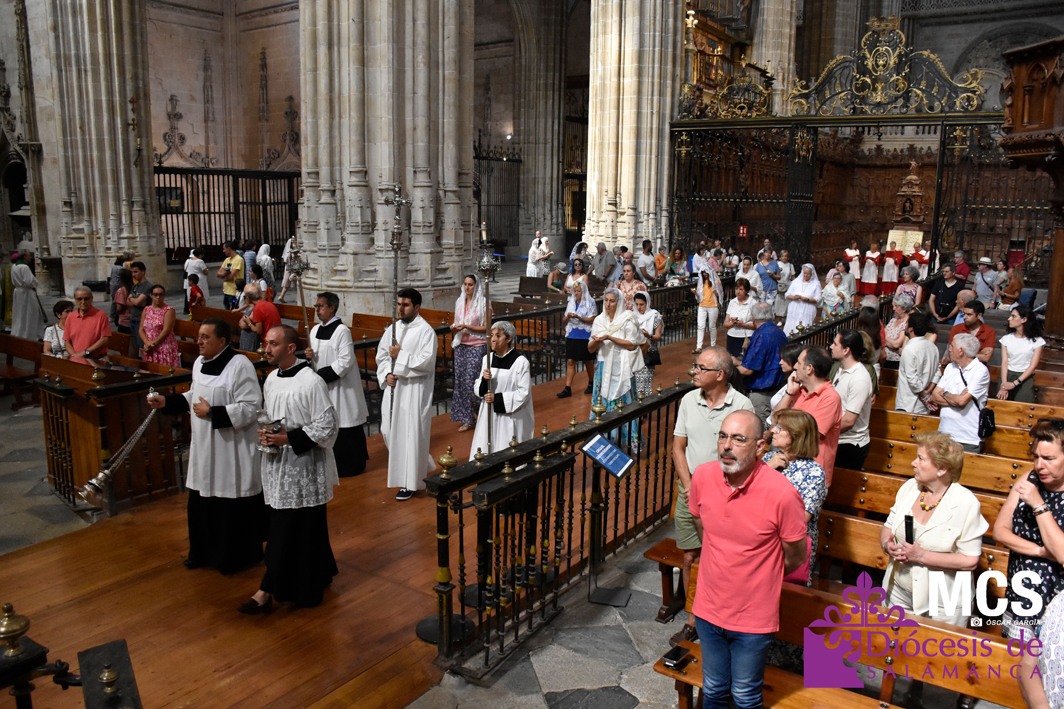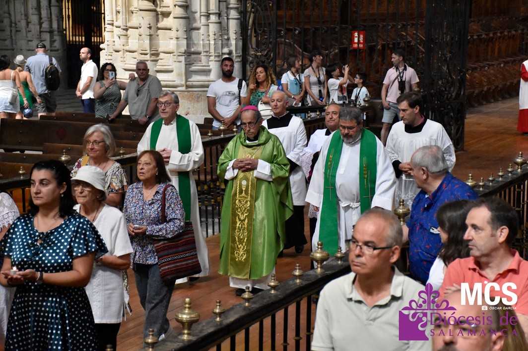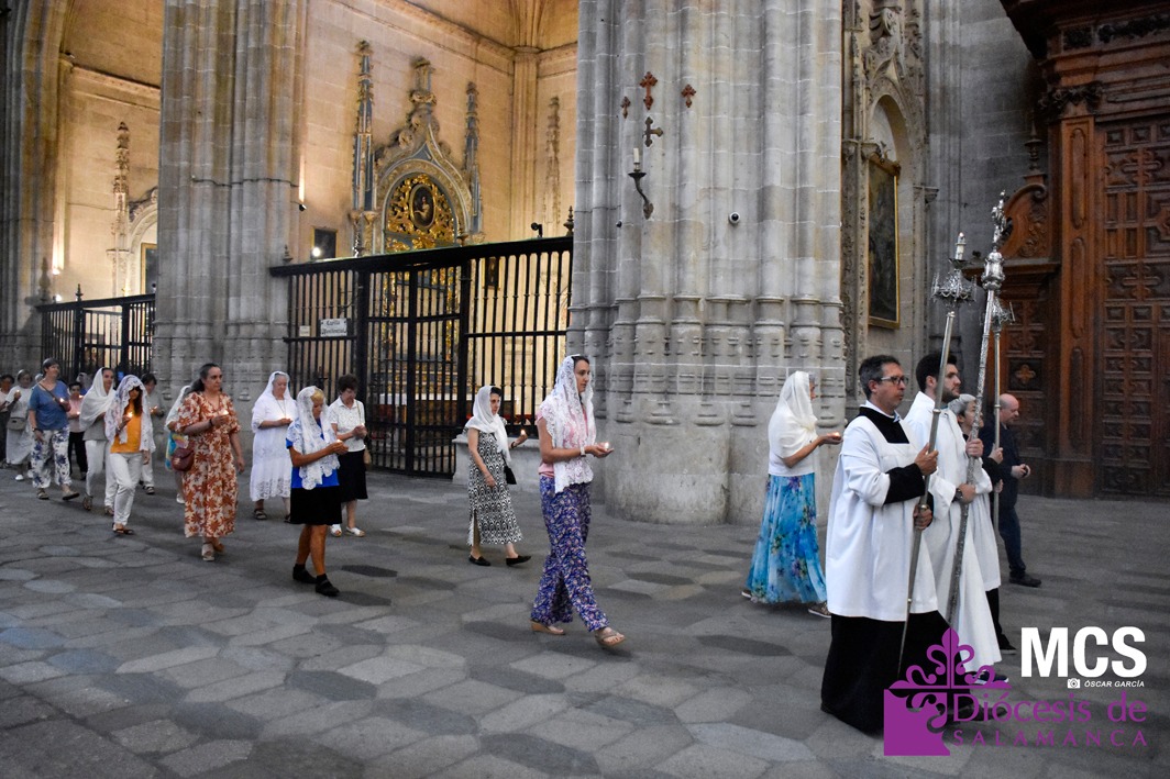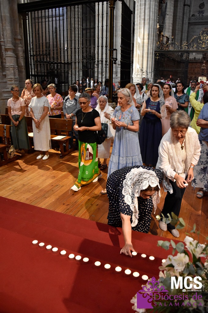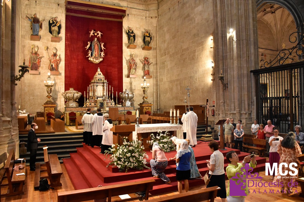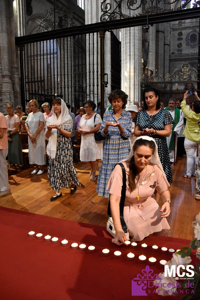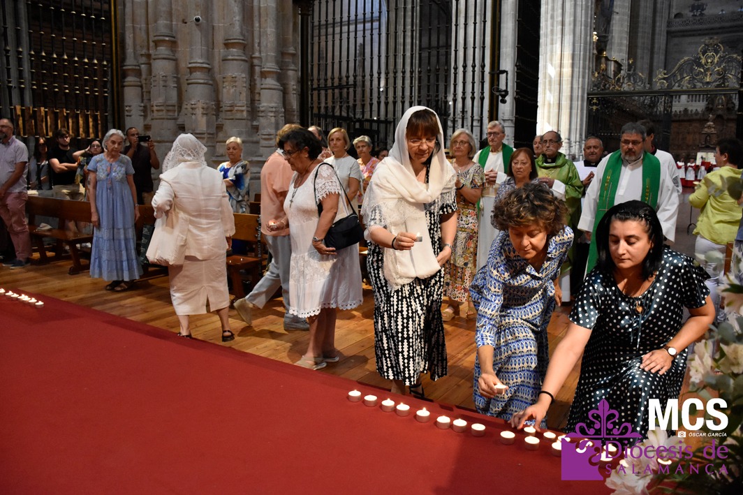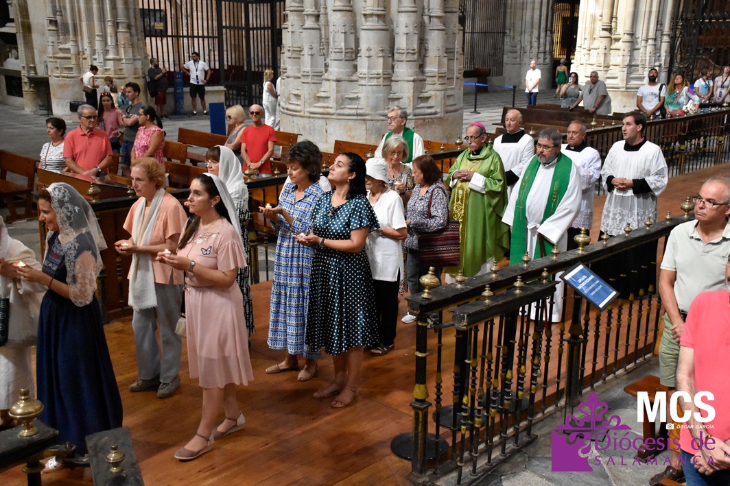 Este encuentro nacional del Ordo Virginum se clausuró este domingo, 20 de agosto, con una eucaristía en la Catedral de Salamanca, presidida por el obispo emérito de Getafe, Mons. Joaquín López de Andújar, referente del Ordo Virginum. En esa celebración, las vírgenes renovaron su propósito de consagración.